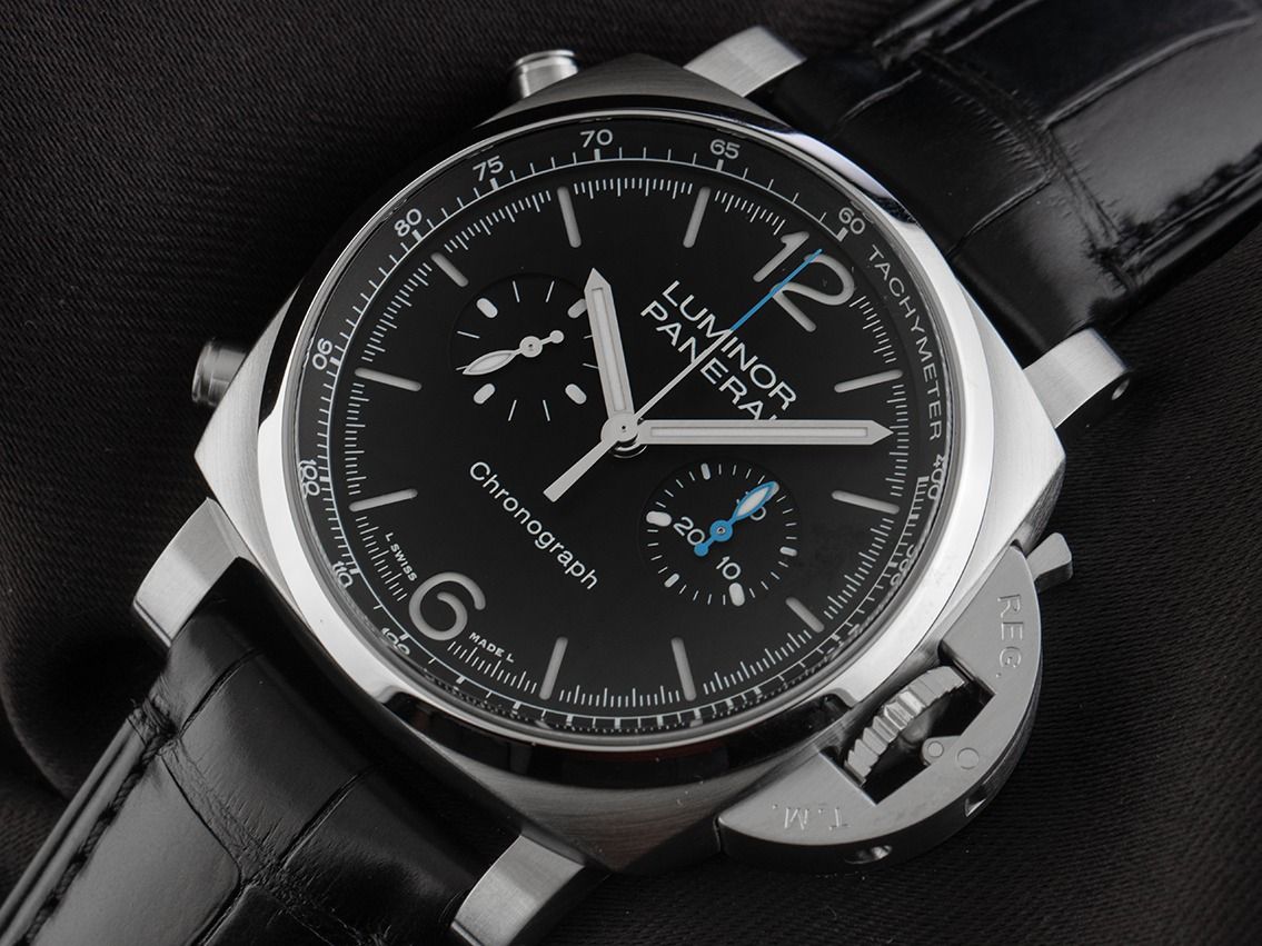 Panerai Luminor Stahl Automatik Chronograph Armband Krokoleder