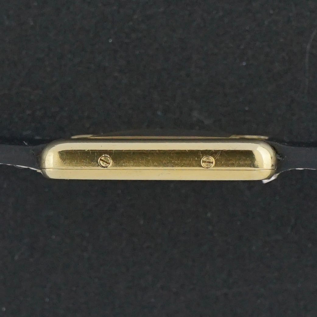 The watch is fitted with a black leather strap from Kaufmann and the original Cartier buckle, which shows light fading. Overall, this is a beautiful dress watch suitable for a ladies wrist.