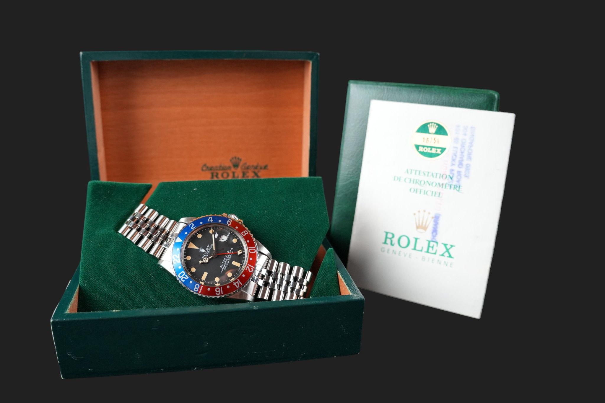 Ein wunderschönes Beispiel des GMT-Master 16750, das Originalität und Vintage-Charme perfekt kombiniert.