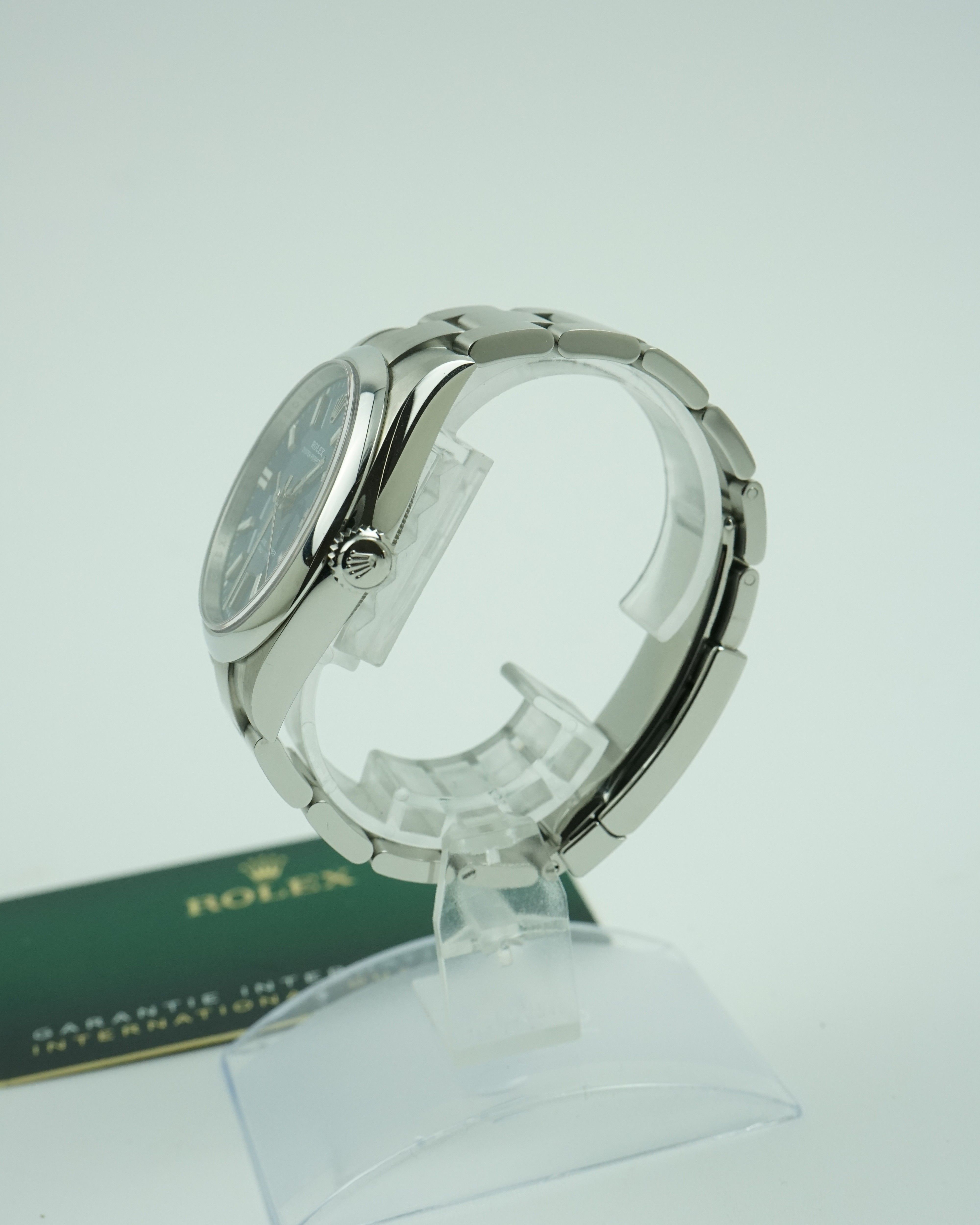 Diese moderne Ikone aus dem Hause Rolex steht für zeitloses Design, höchste Präzision und absolute Alltagstauglichkeit. Das klare blaue Zifferblatt verleiht der Uhr eine frische, zugleich edle Ausstrahlung und harmoniert perfekt mit dem robusten Oyster-Gehäuse aus Edelstahl.