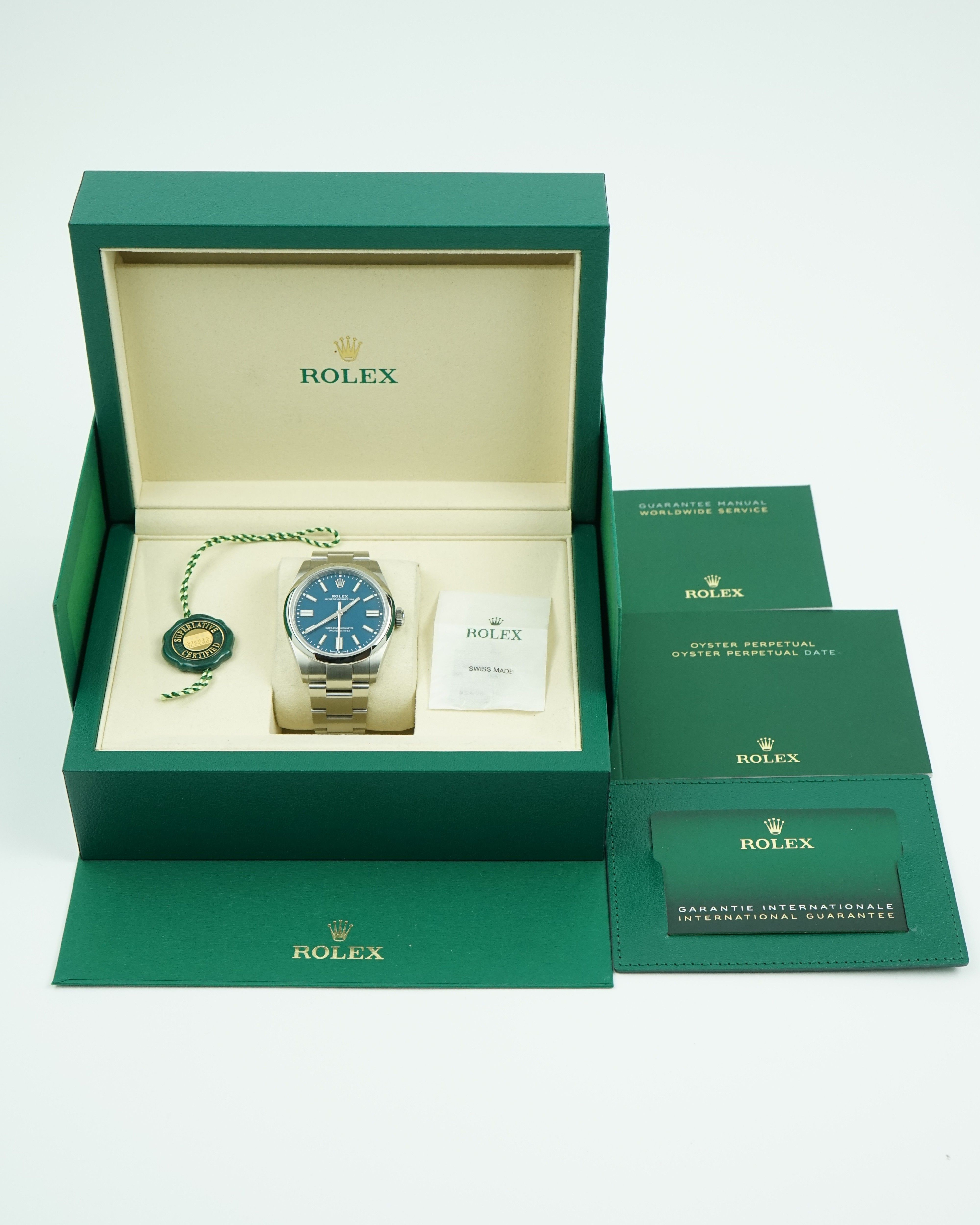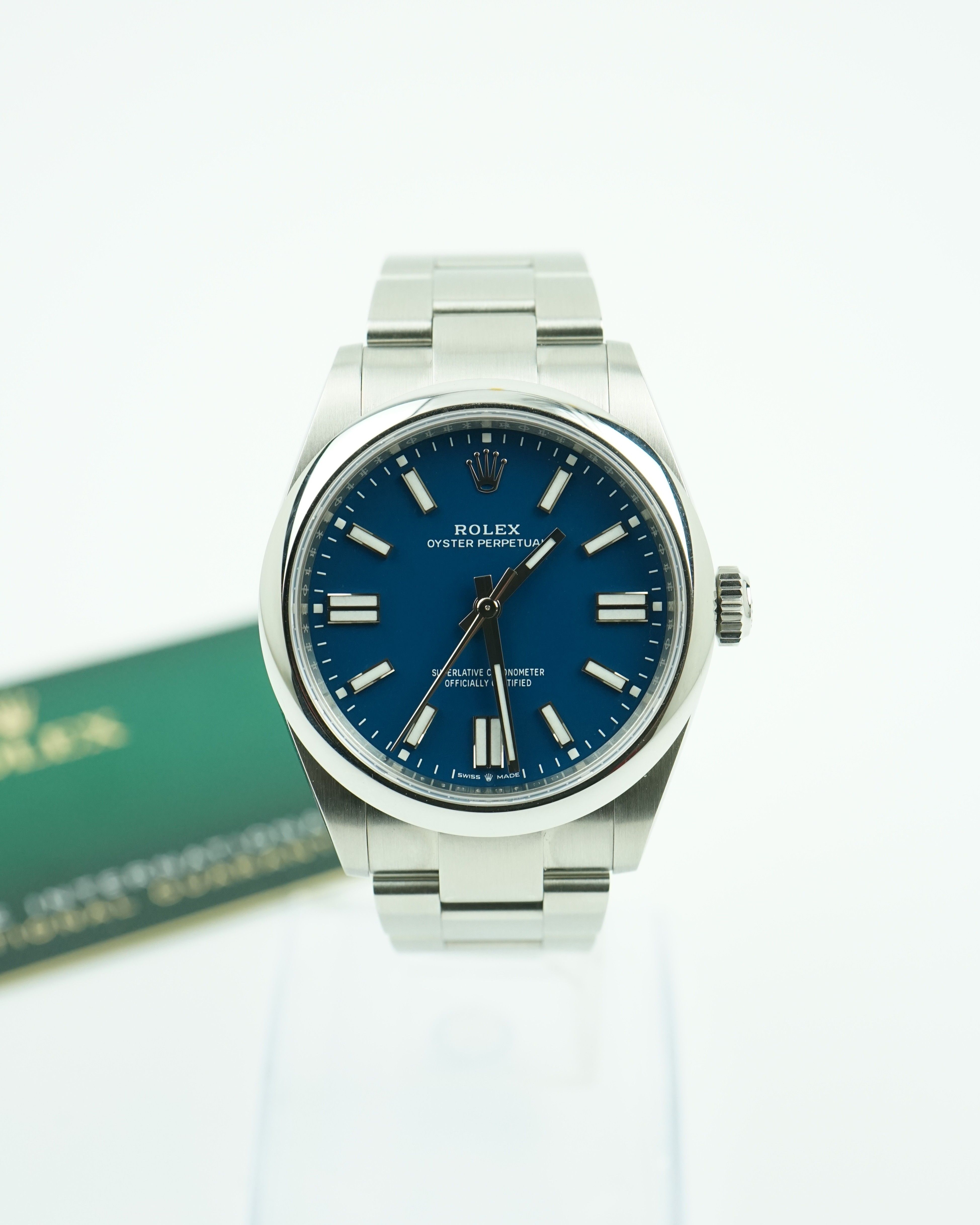 Wir von G-Watches freuen uns, euch eine sportlich-elegante Rolex Oyster Perpetual 41 Ref. 134300 mit blauem Zifferblatt präsentieren zu dürfen.