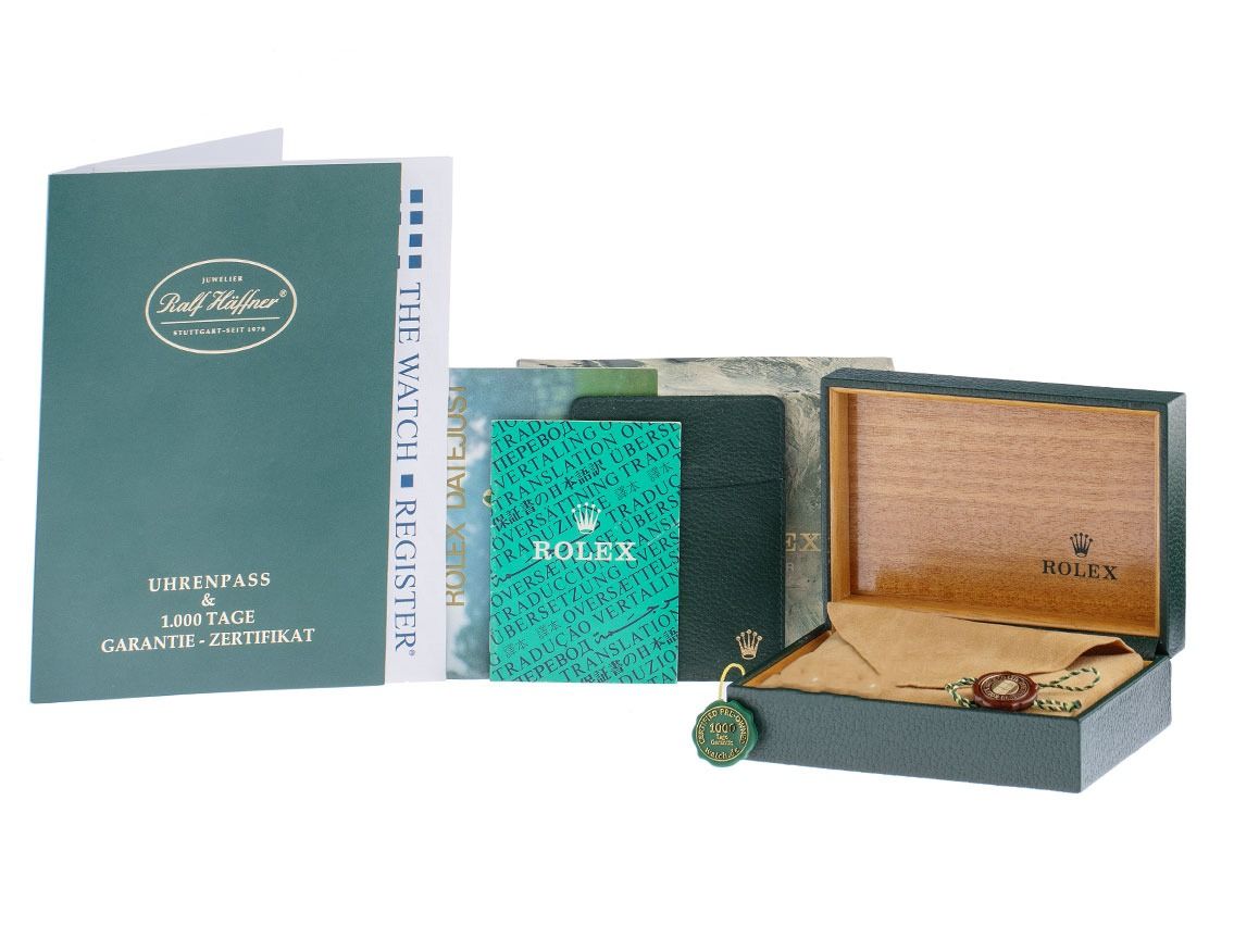 Inklusive certified pre owned Siegel / Uhrenpass mit einem Farbbild, der genauen Beschreibung sowie dem Wiederbeschaffungswert der Uhr über 10.200,-€ und 1000 Tage Garantie ab Kaufdatum.