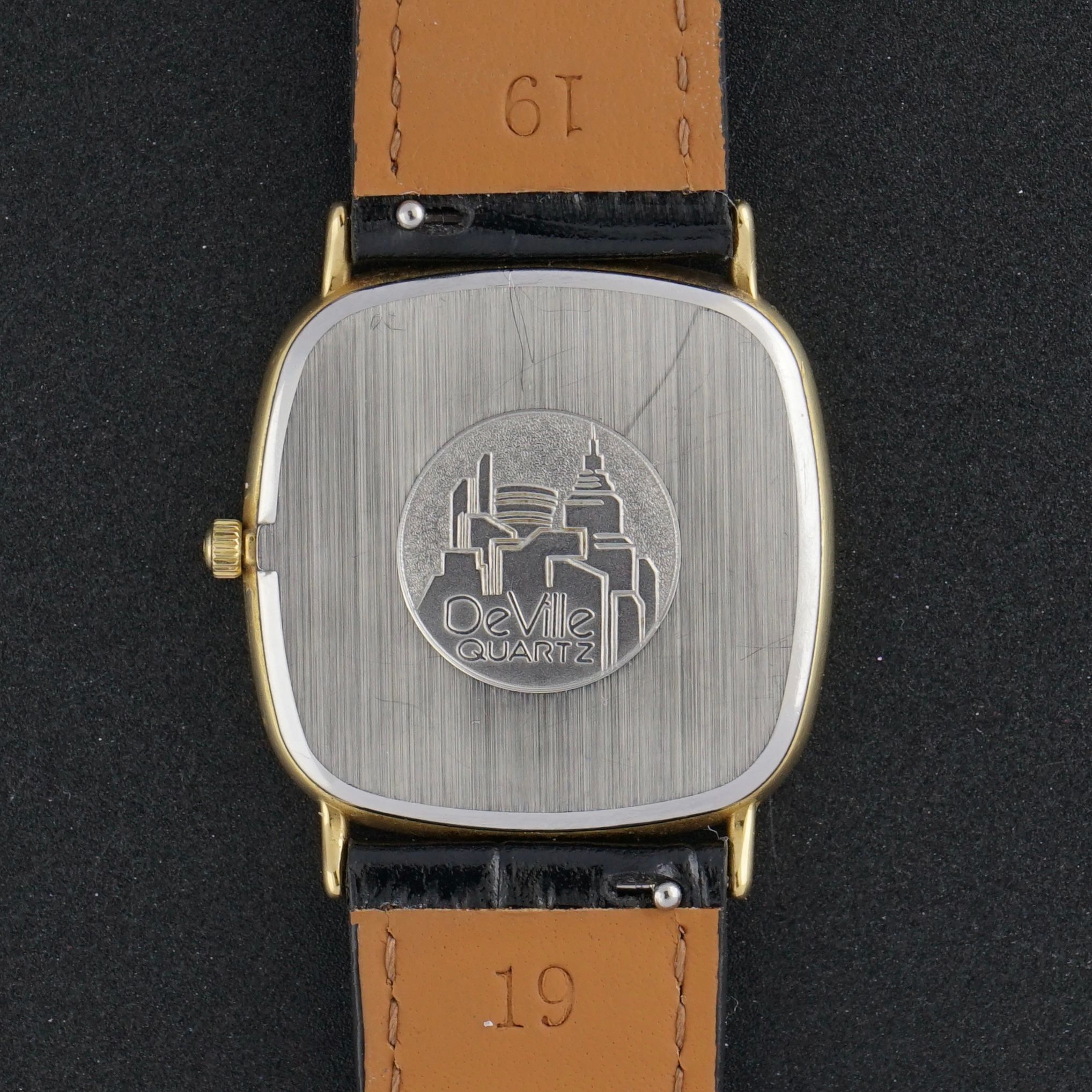 This vintage Omega De Ville, produced in 1982, features a striking black dial that gives the watch a luxurious yet elegant appearance. Combined with the gold-plated case, golden hands, and gold Omega logo, the design is perfectly balanced. We paired the watch with a black leather strap with a crocodile motif to fully complete the dress-watch aesthetic.Inside is a quartz movement that was overhauled in January 2026 and currently runs and functions excellently. Aside from the strap, the watch is entirely original and in great condition, making it an ideal choice for the vintage enthusiast. With a thickness of just 4 mm, this ultra-thin profile further enhances the subtle elegance this watch radiates.