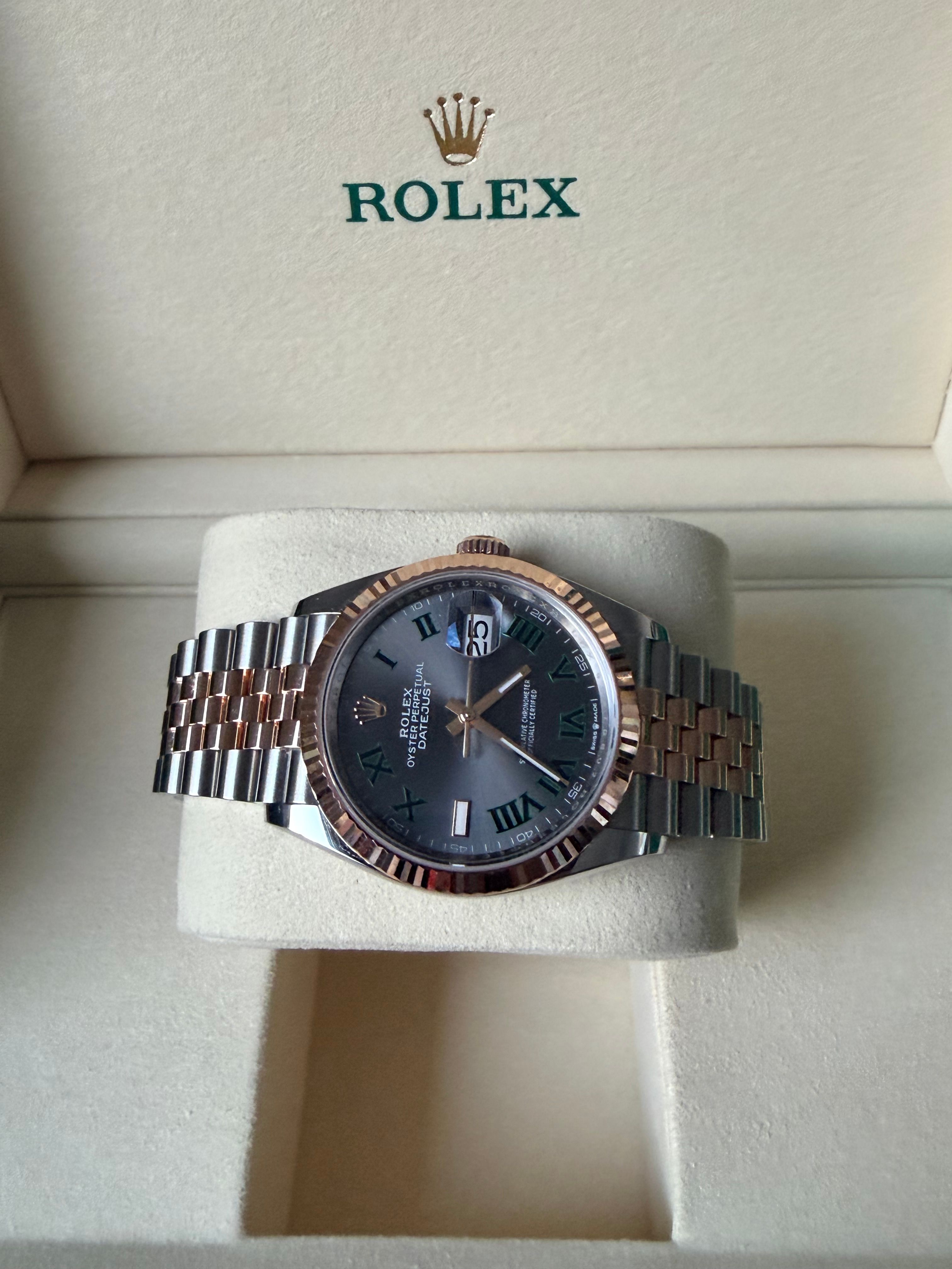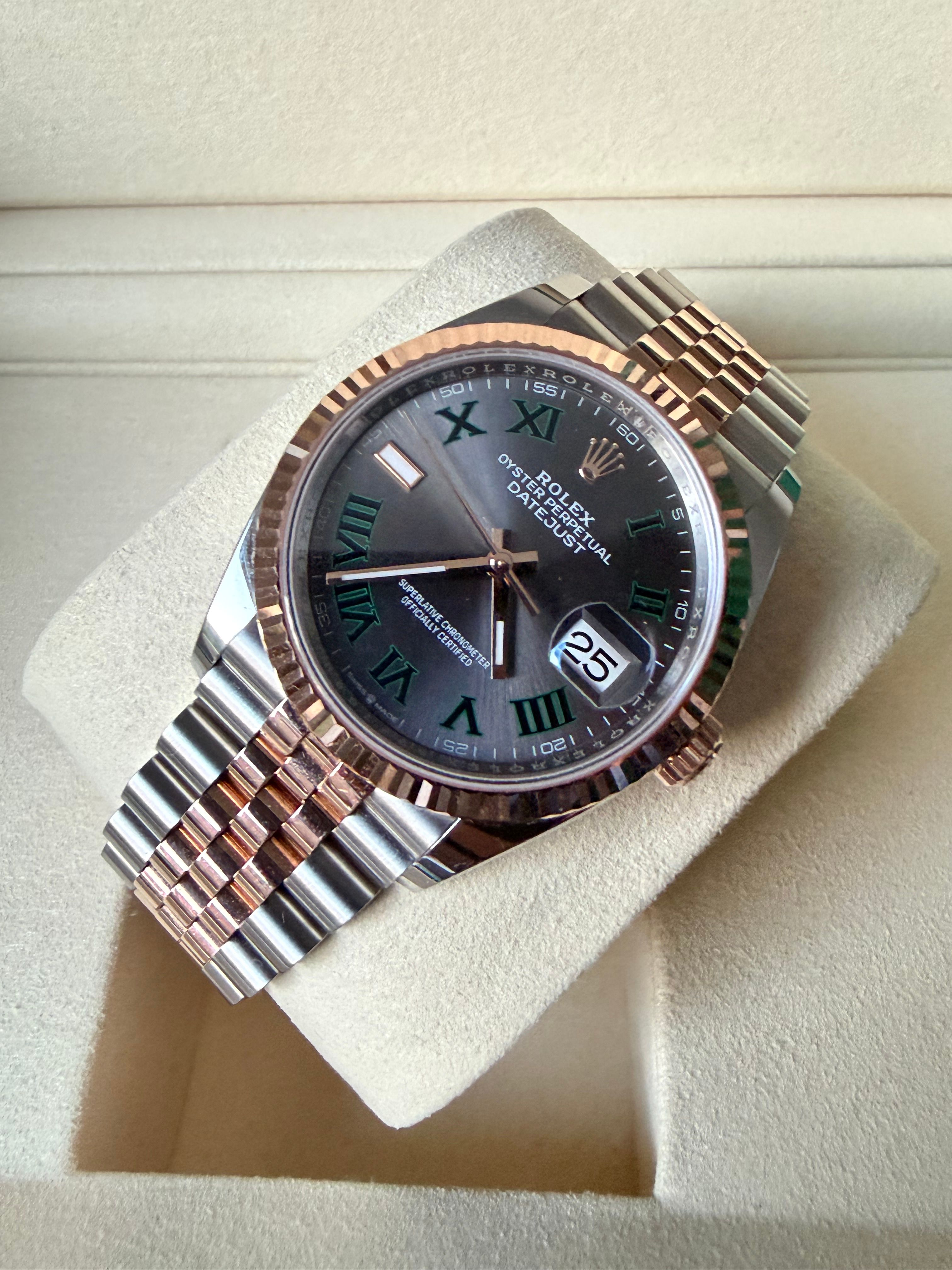 Rolex Datejust 36 Rolex 126231-0029 (Wimbledon) Datejust 36 Stainless Steel / Everose / Fluted / Slate - Roman / Jubilee