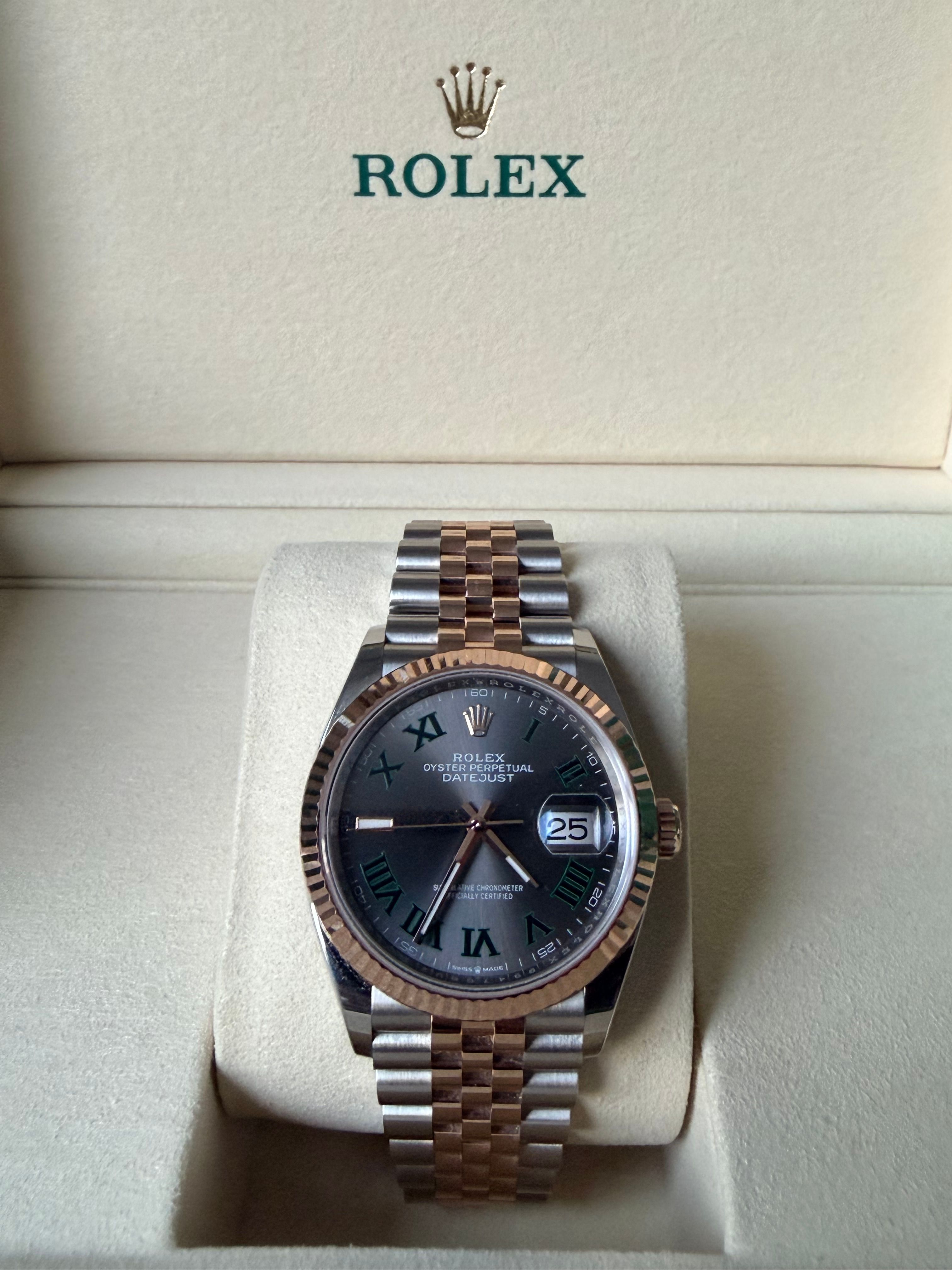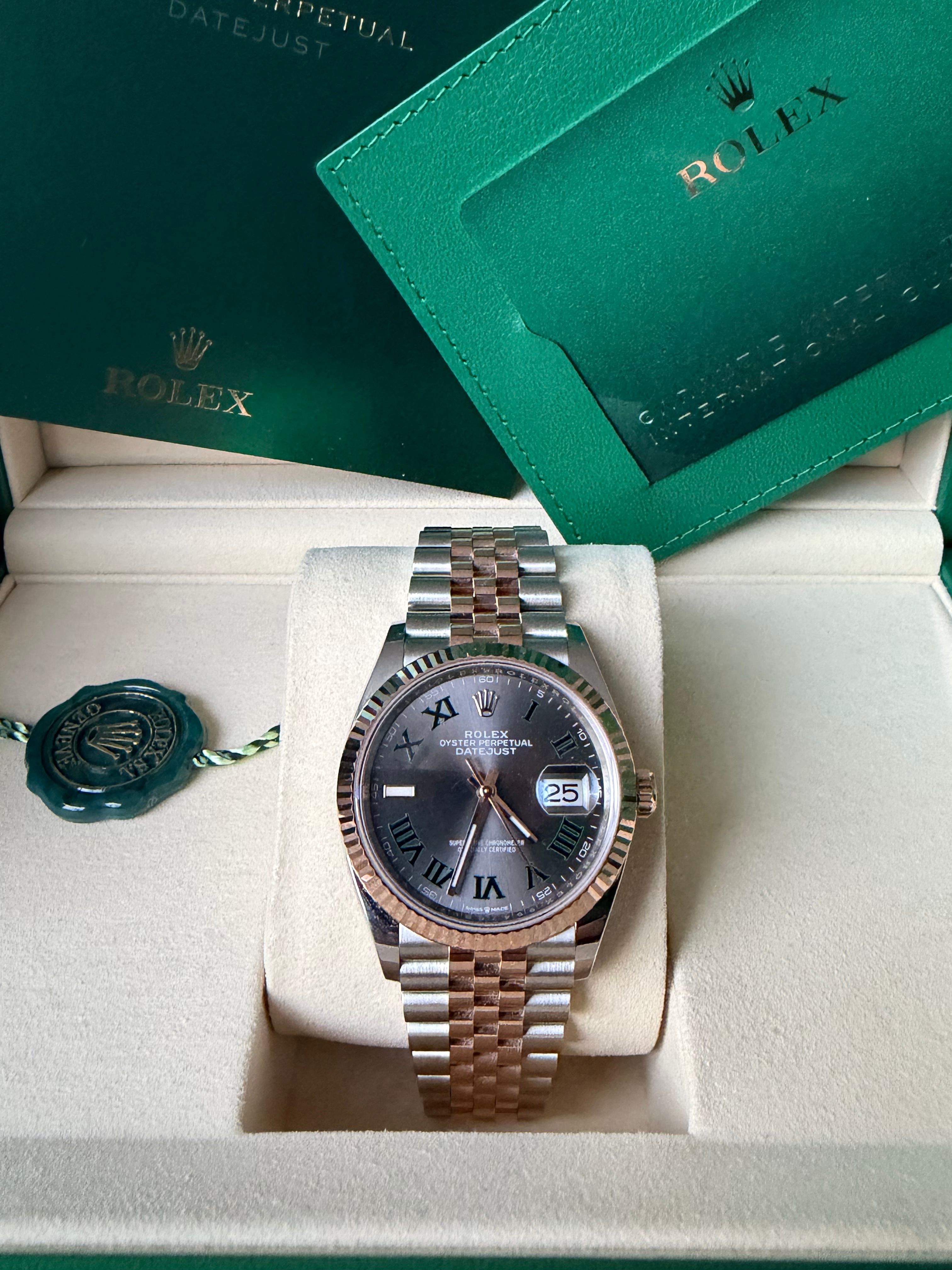 Rolex 126231-0029 (Wimbledon) Datejust 36 Stainless Steel / Everose / Fluted / Slate - Roman / Jubilee