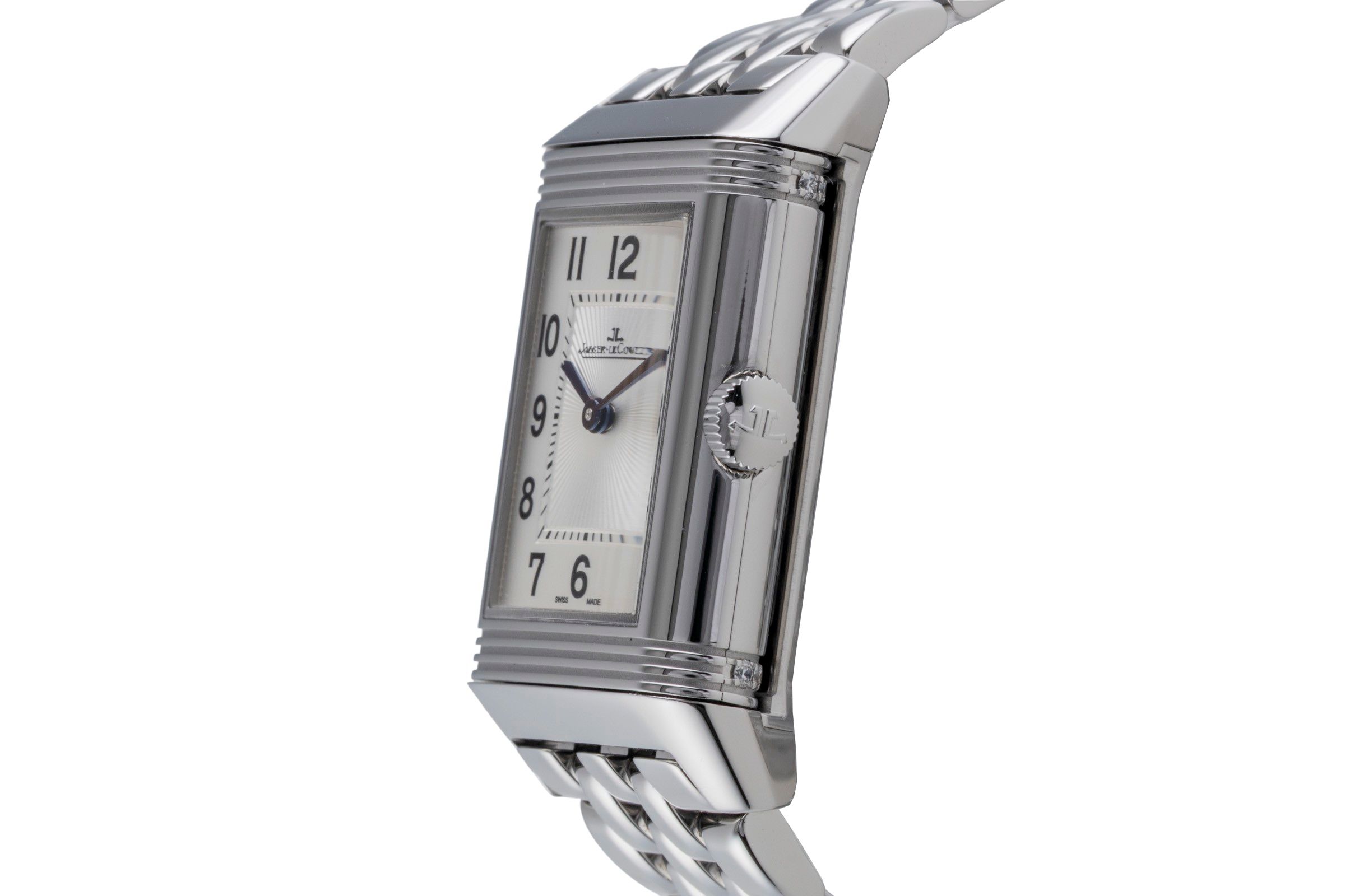 Alternative title: Jaeger-LeCoultre Q2588120 Reverso Classic Medium Duetto Stainless Steel / Silver / Bracelet; Jaeger LeCoultre Reverso Stahl Handaufzug Diamonds Ref Q2588120 212.8.D4 Papiere [2600195]