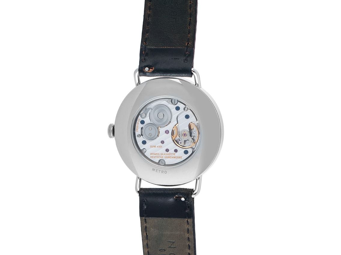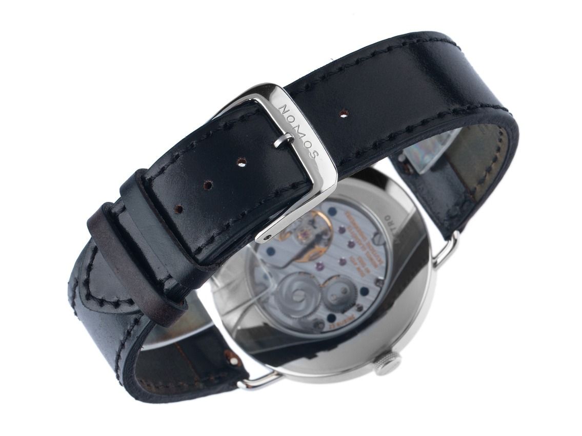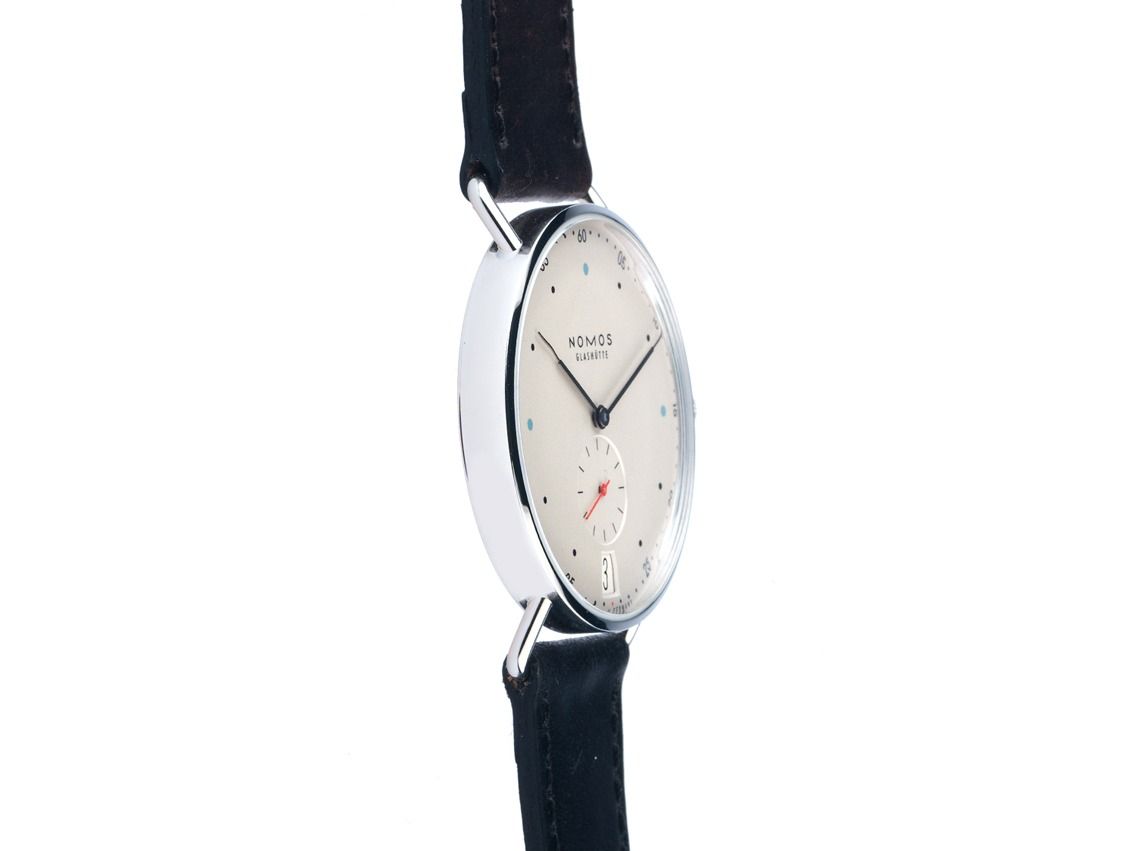 Nomos Glashütte Metro Datum Stahl Handaufzug Armband Leder