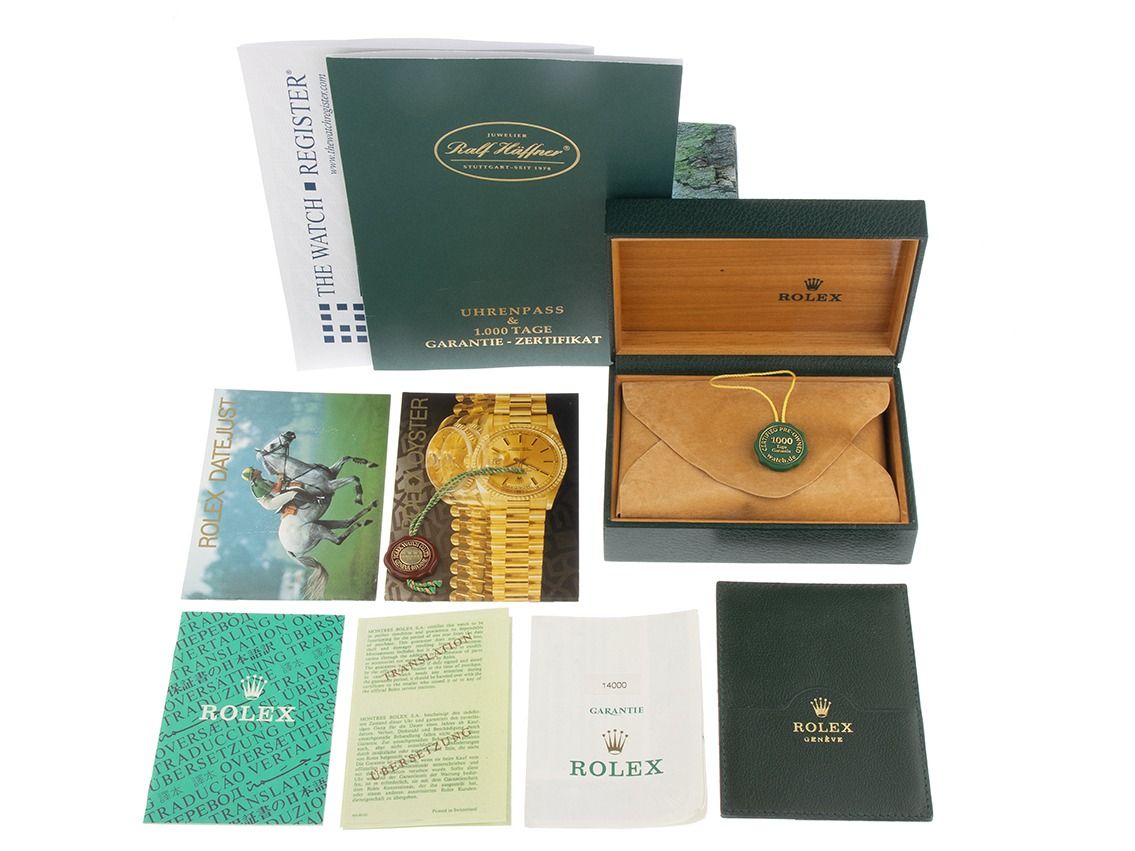 Inklusive certified pre owned Siegel / Uhrenpass mit einem Farbbild, der genauen Beschreibung sowie dem Wiederbeschaffungswert der Uhr über 8300,-€ und 1000 Tage Garantie ab Kaufdatum.