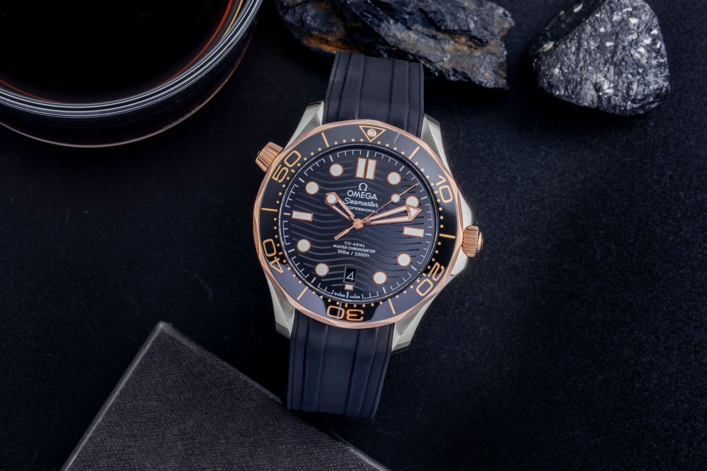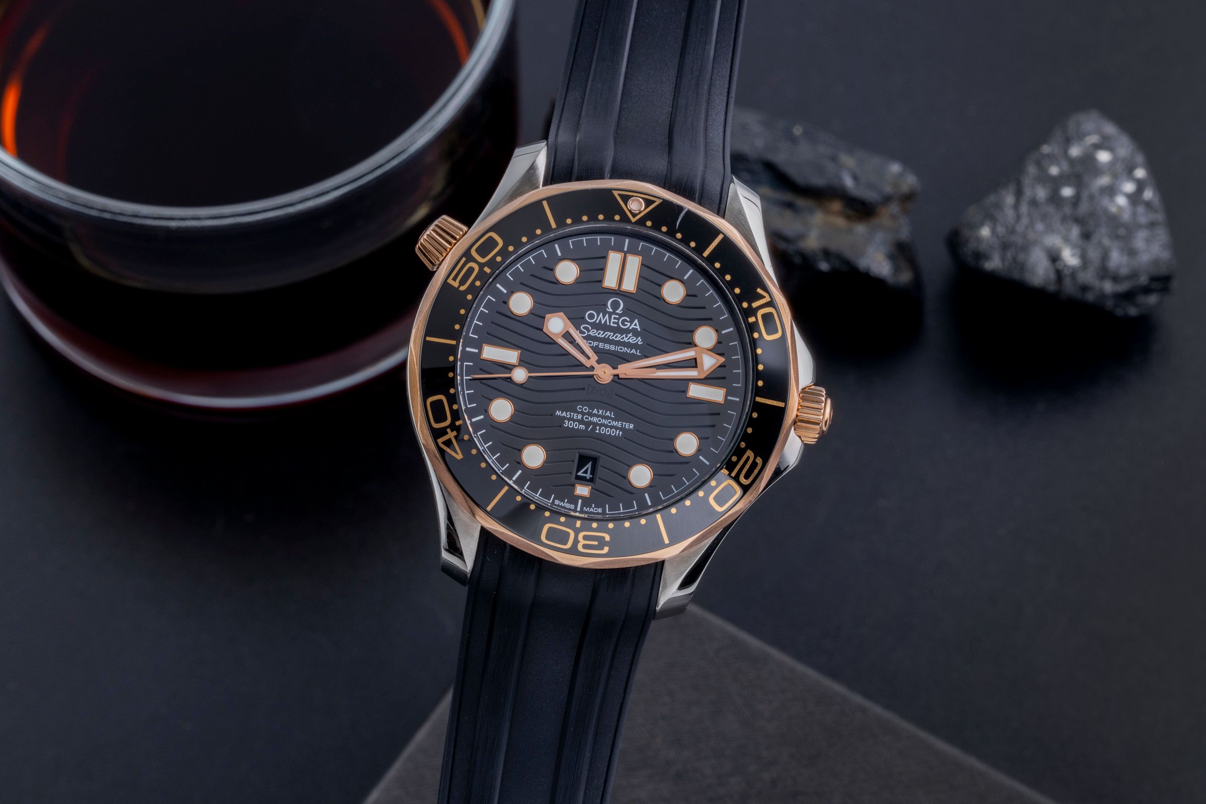 Alternative title: Omega 210.22.42.20.01.002 Seamaster Diver 300M Master Co-Axial 42 Stainless Steel / Sedna Gold / Black / Rubber; Omega Seamaster Diver 300M Stahl Gold Automatik 210.22.42.20.01.002 NP: 9100 € [2507334]