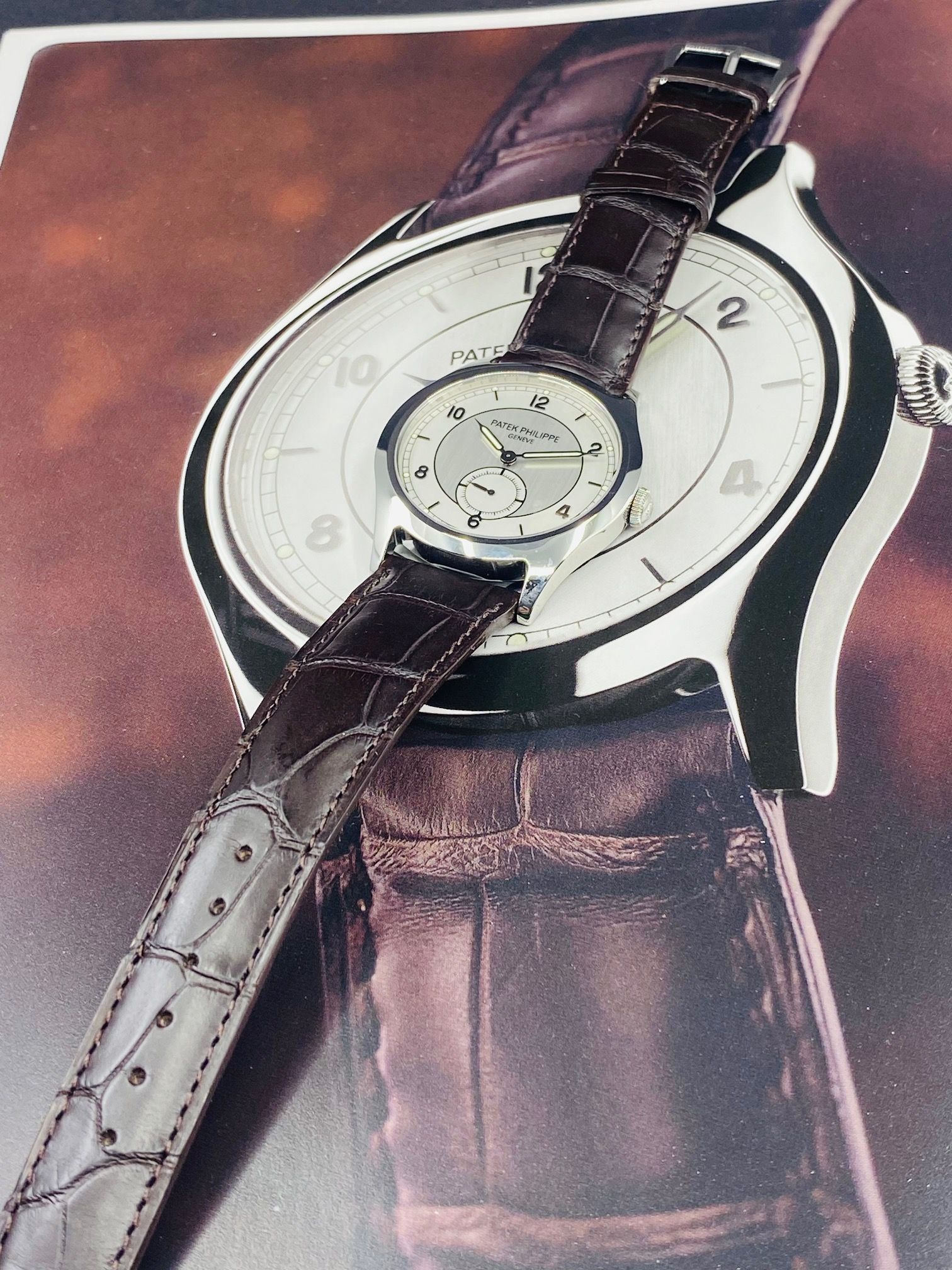 Delivered new to the first an only owner in 2007 through the Boutique in Geneva, this amazing Calatrava 5565A was never worn.Made in a limited edition of 300 pieces to celebrate the opening of the new Boutique it's hard to find.