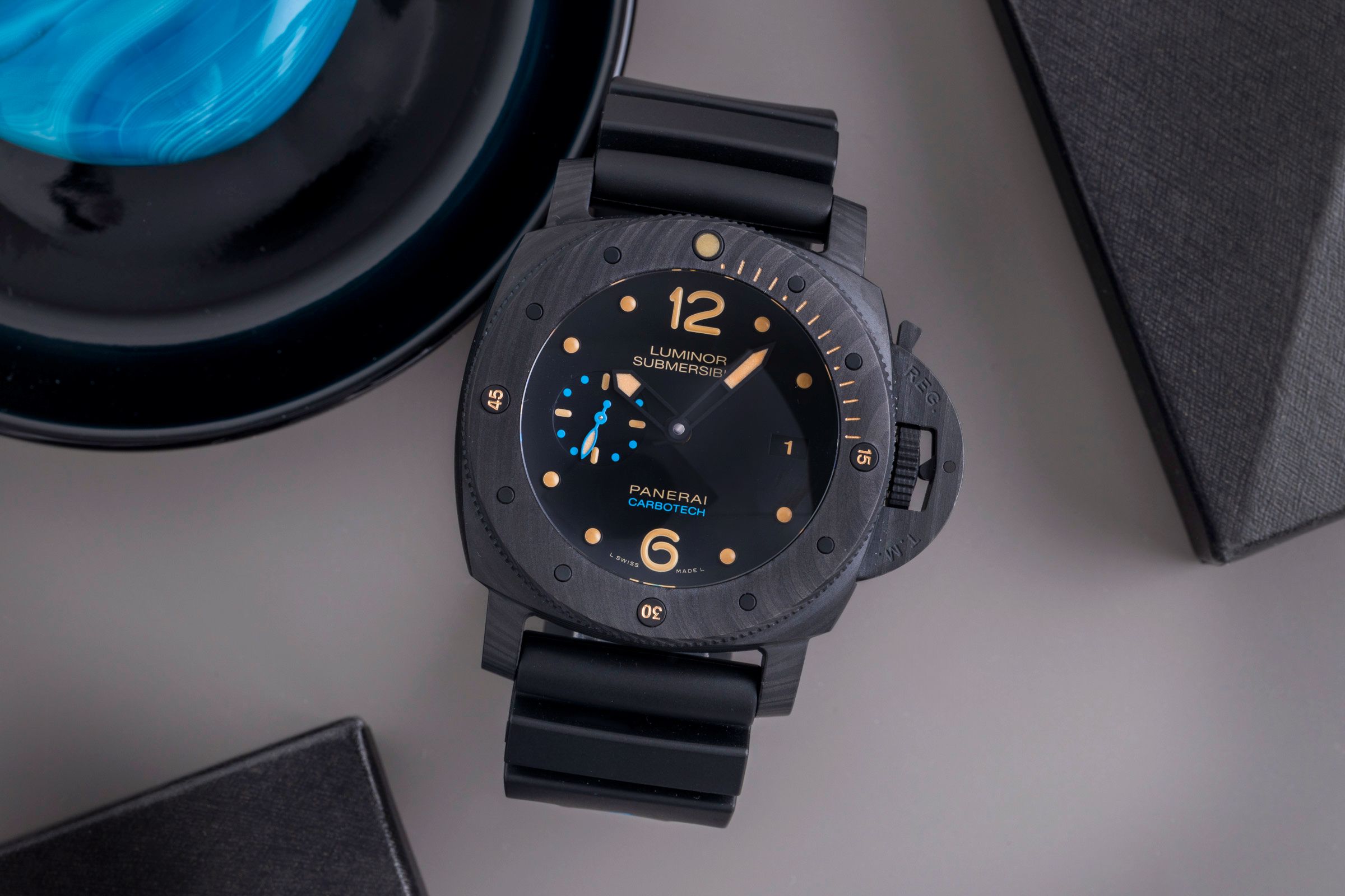 Alternative title: Panerai PAM00616 Luminor Submersible 47 3 Days Automatic Carbotech / Black; Panerai Submersible Carbon Automatik Herrenuhr Ref. PAM00616 B&P 2018 [2600313]
