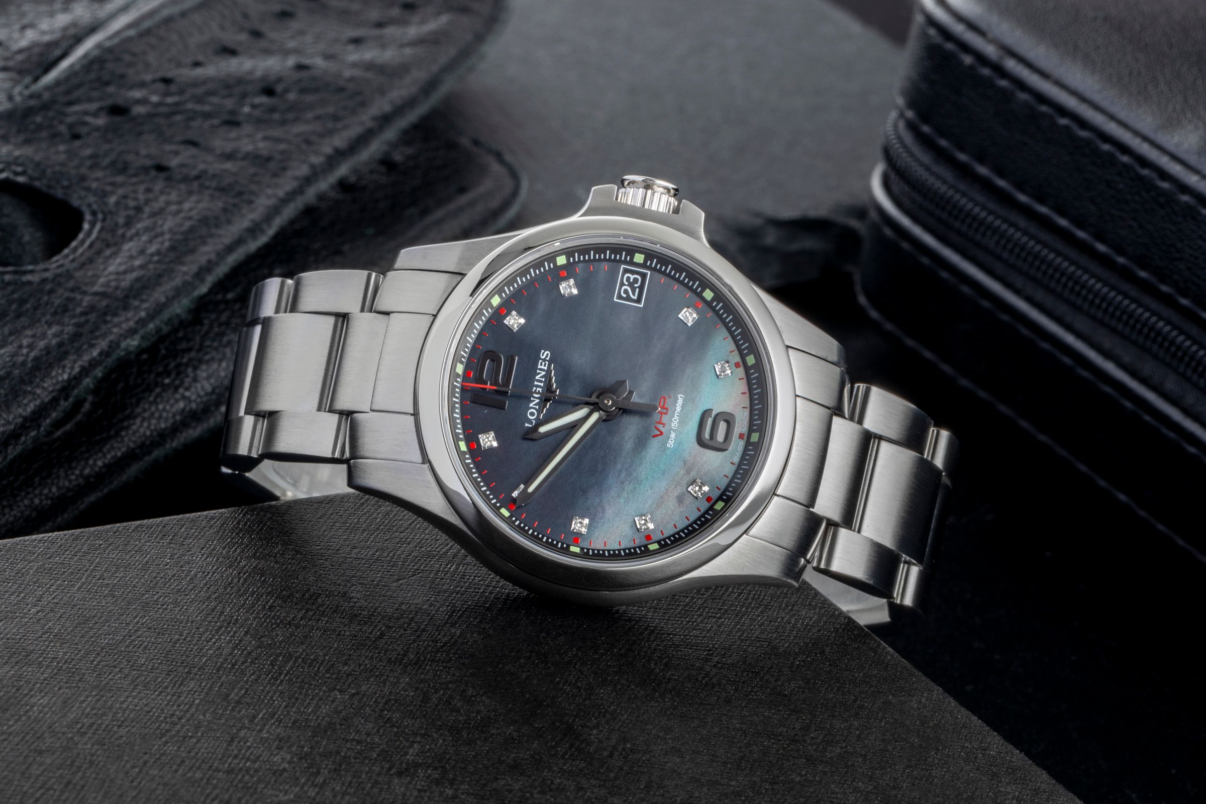 Alternative title: Longines L3.316.4.88.6 - Conquest V.H.P. Black/Steel ; Longines Conquest Stahl Quarz Damenuhr MOP Dial Diamonds Ref. L3.316.4.88.6 Box [2507316]