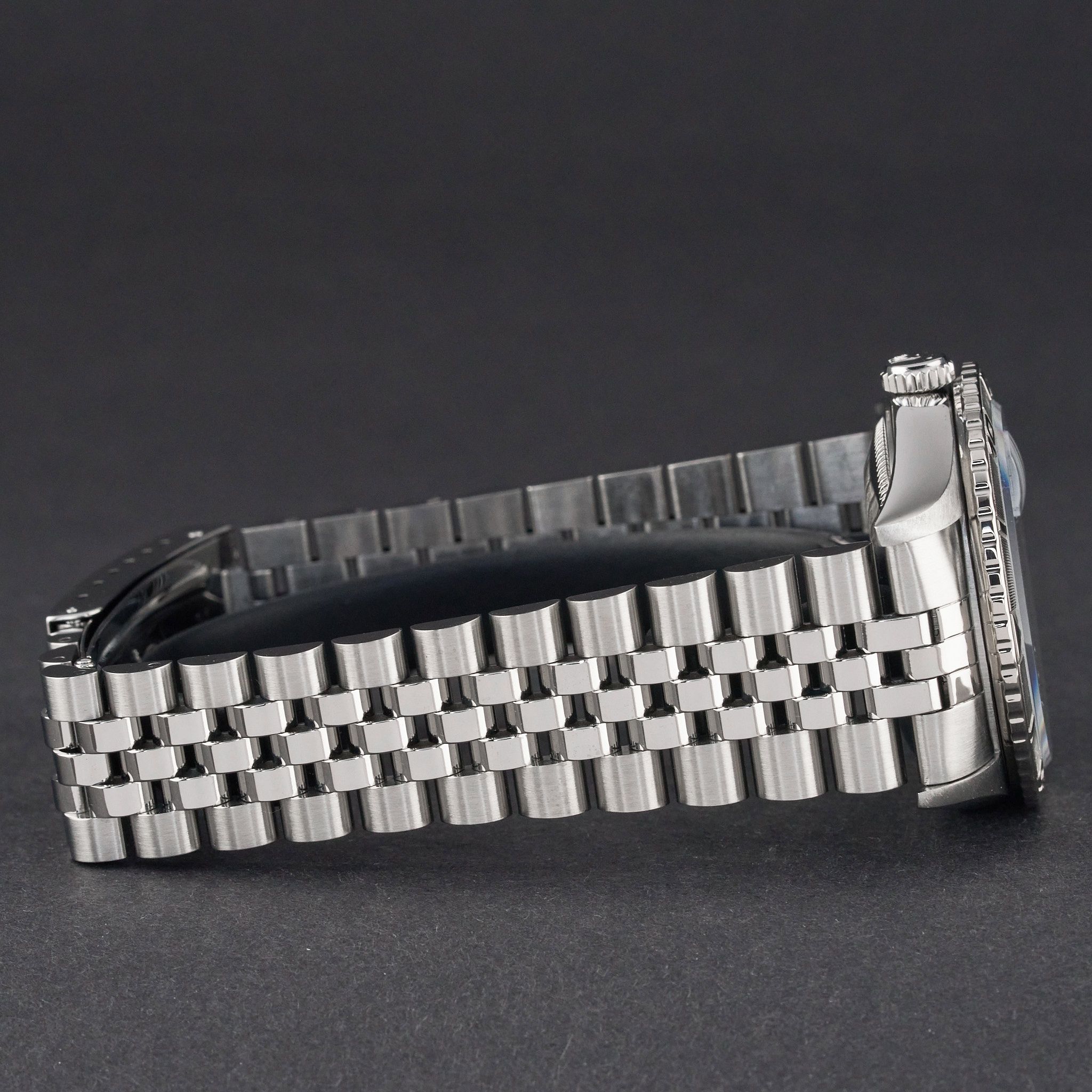 Diese Rolex Datejust Turn-O-Graph 16264 verfügt über eine blaue Zifferblatt und ist aus Edelstahl gefertigt, mit einem Produktionsjahr von 2002.