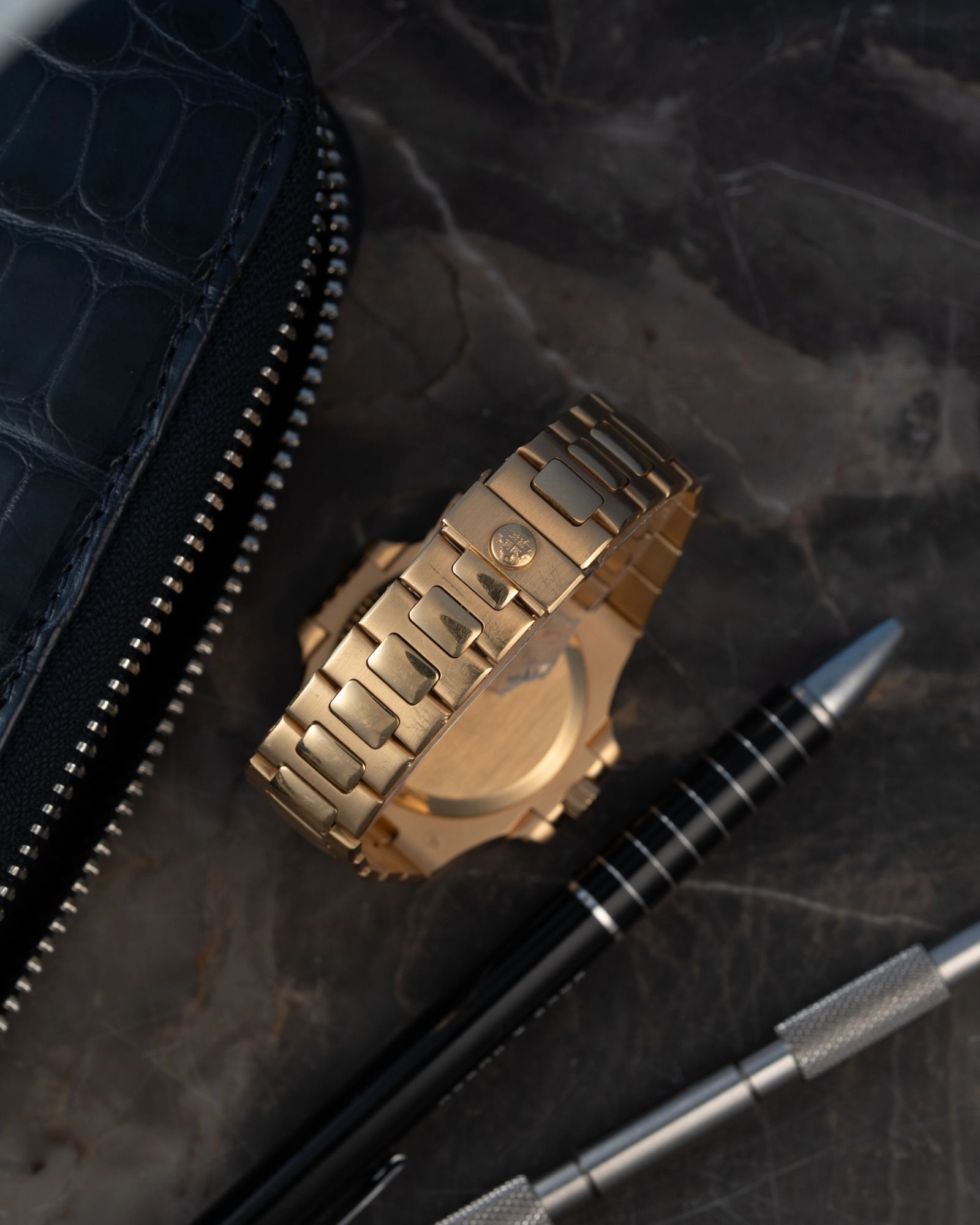 Diese gelbgoldene Patek Philippe 3800 J ist eine echte Rarität, die in den letzten Jahren sehr begehrt geworden ist. Sie hat eine subtile, aber starke Präsenz am Handgelenk.
