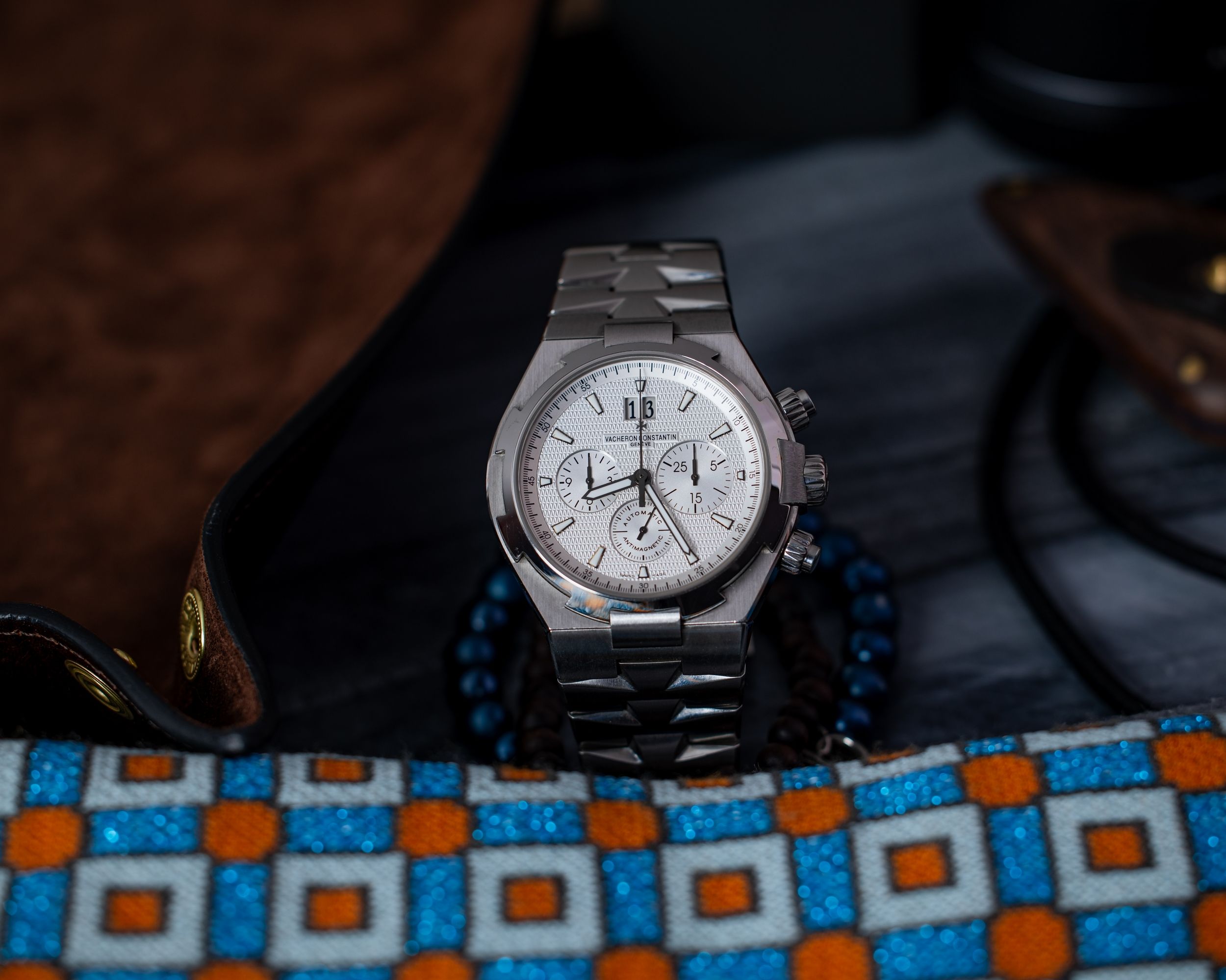 Eine hervorragende Vacheron Constantin Overseas mit der weißen — meiner Meinung nach der attraktivsten — Zifferblattkonfiguration. Ein außergewöhnlich stimmiges und markantes Design, bei dem jedes Element nahtlos in das nächste übergeht.