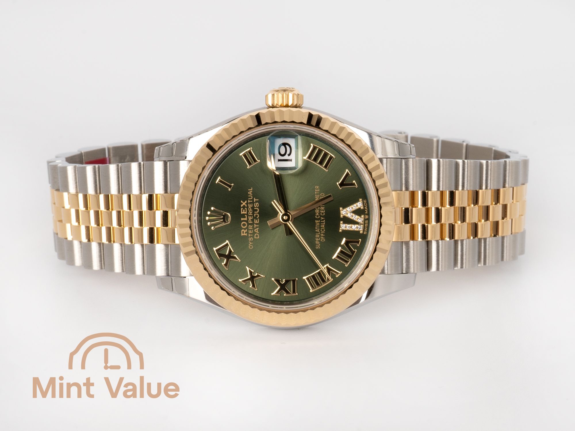 Rolex Datejust 31 Olive Green Dial with Diamond-Set VI — Ref. 278273A refined statement of modern elegance. The Datejust 31 Ref. 278273