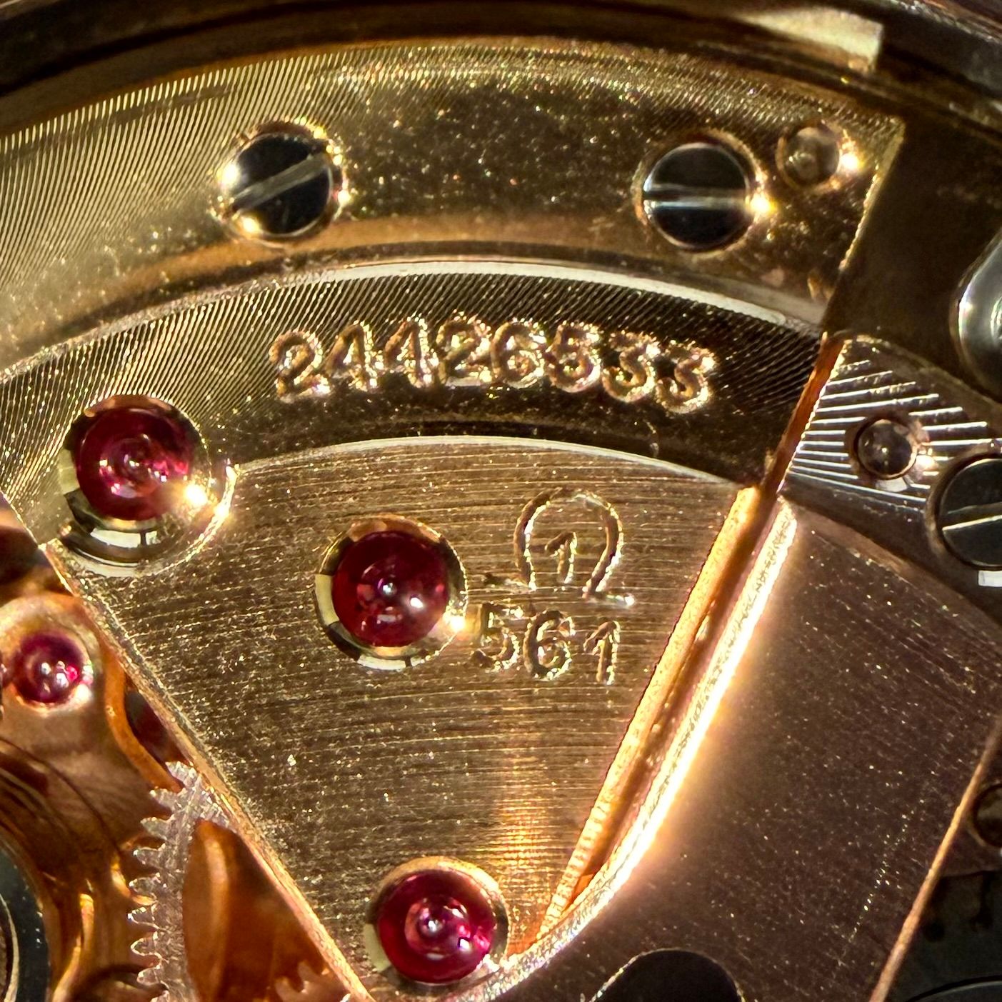 Im Inneren der Uhr befindet sich das Omega Kaliber 561 Automatik-Chronometerwerk. Dieses Werk wurde im Januar 2026 vollständig gewartet und läuft und funktioniert derzeit ausgezeichnet, sogar innerhalb der Chronometer-Standards.