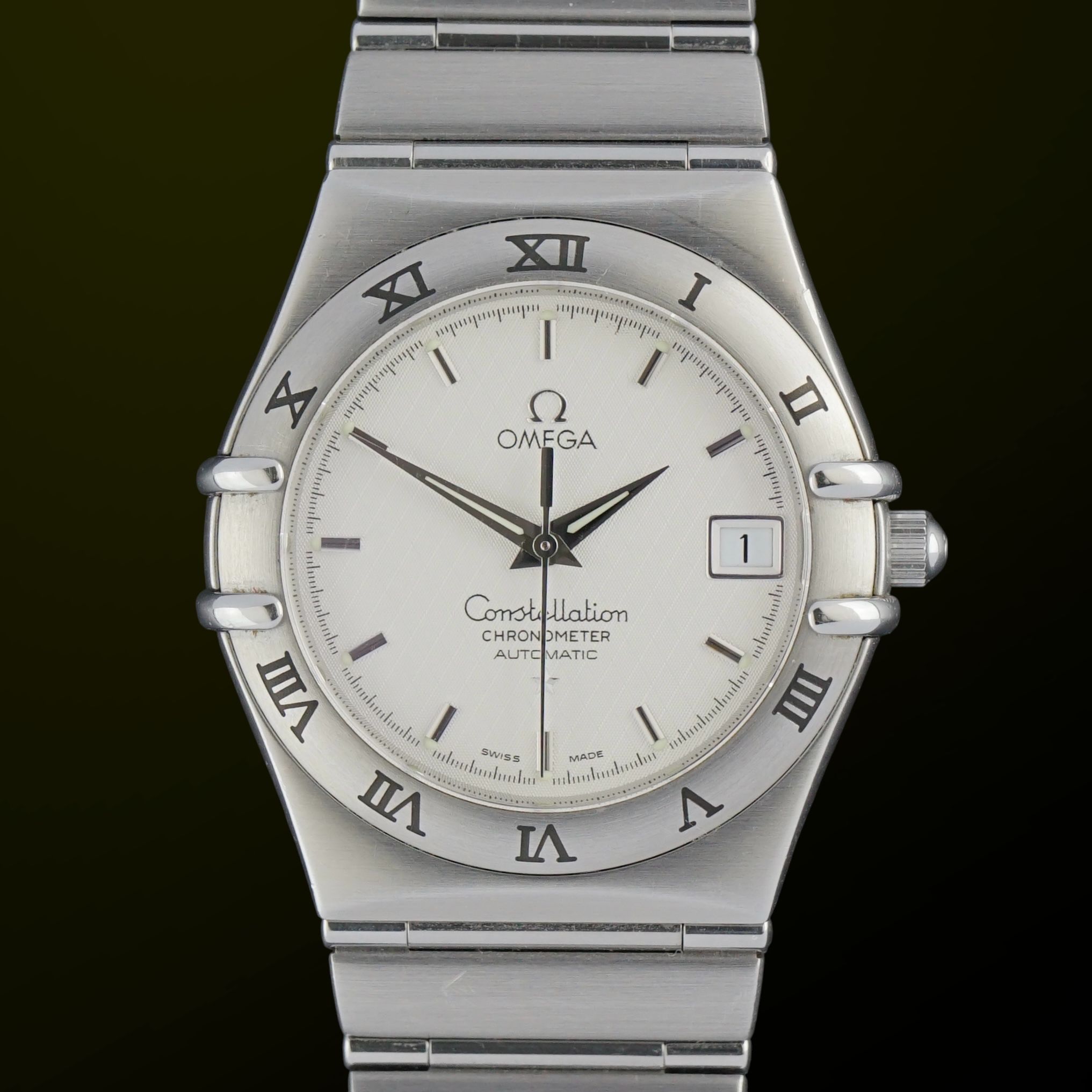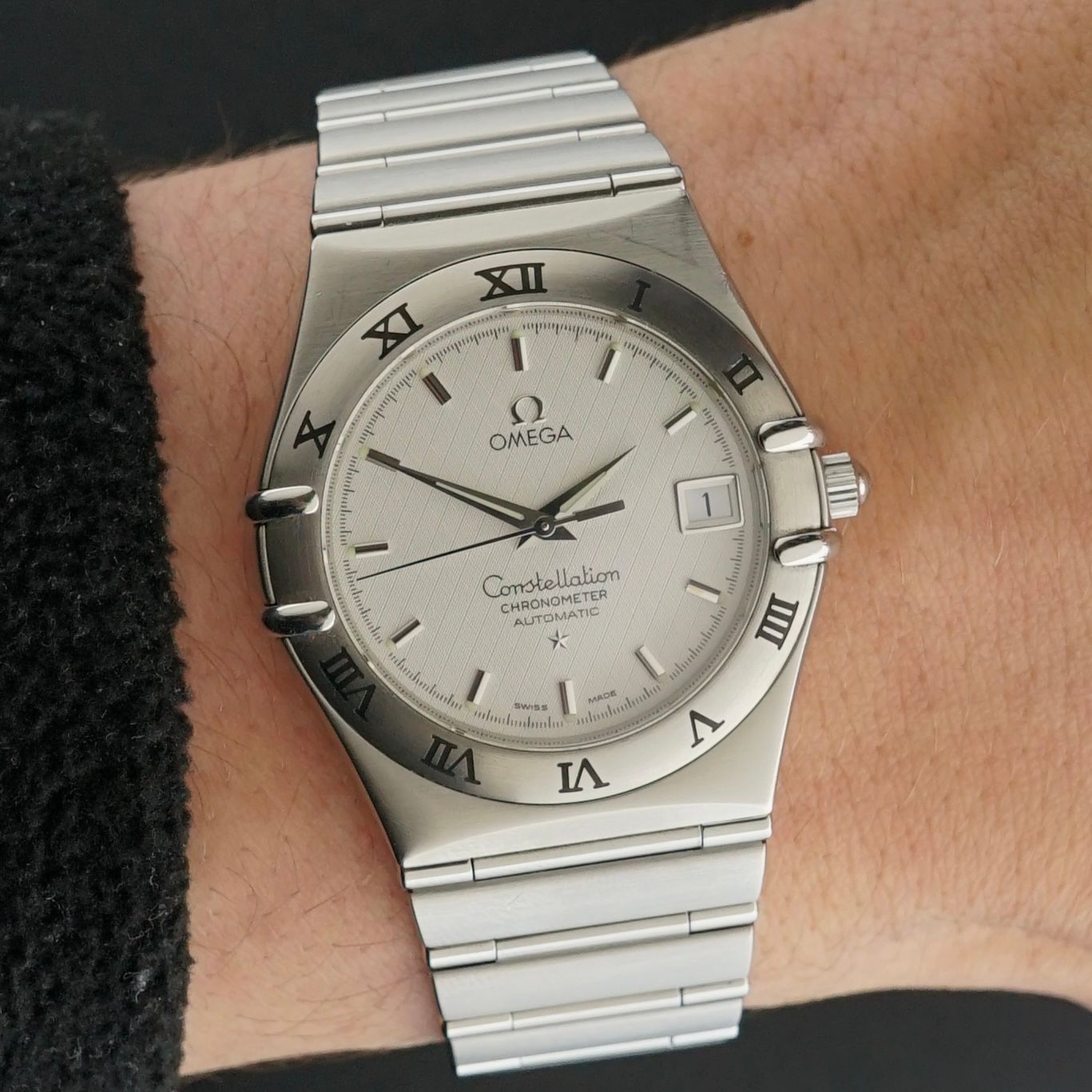 This Omega Constellation Chronometer Automatic was produced in 2007. It features a stainless steel case with a 35 millimeter case width. The bezel is fitted with Roman numerals, of which the lacquer remains fully intact. The dial has a beautiful patterned finish and is in perfect condition.The watch is fitted with a stainless steel bracelet that comfortably fits wrists from 15 up to 20 centimeters, making it suitable for a wide range of wrist sizes. Inside is the Omega caliber 1120 automatic movement, which was serviced in January 2026 and currently runs and functions great.