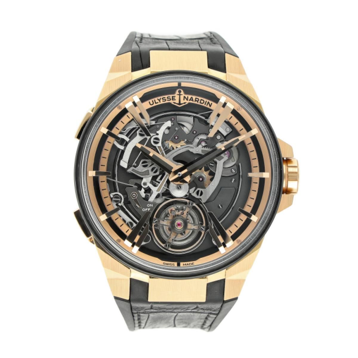Ulysse Nardin Hourstriker aus 2023 mit einem 45 mm Gehäuse aus Roségold und einer Faltschließe. Diese Ulysse Nardin Herrenuhr ist in sehr gutem Zustand.