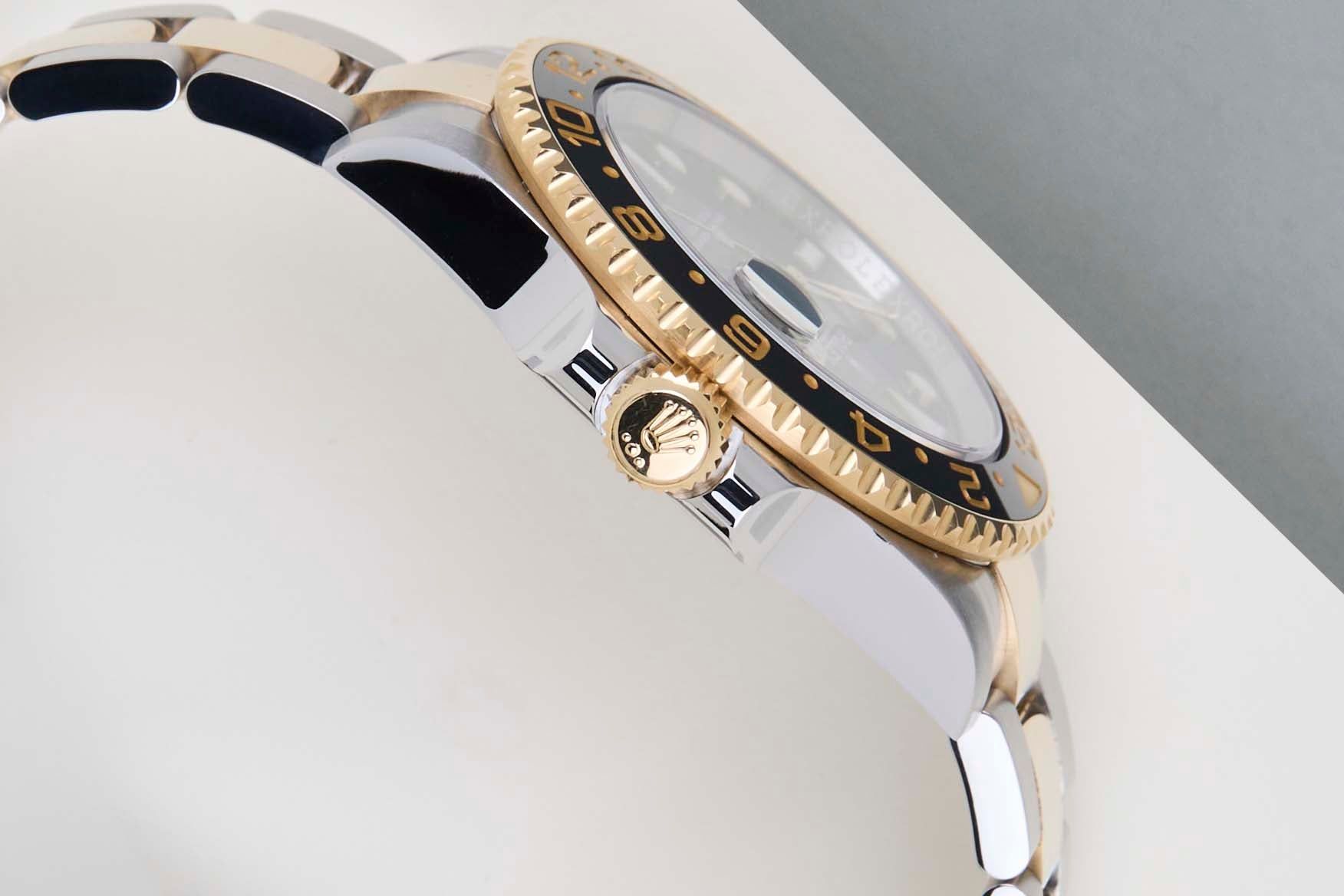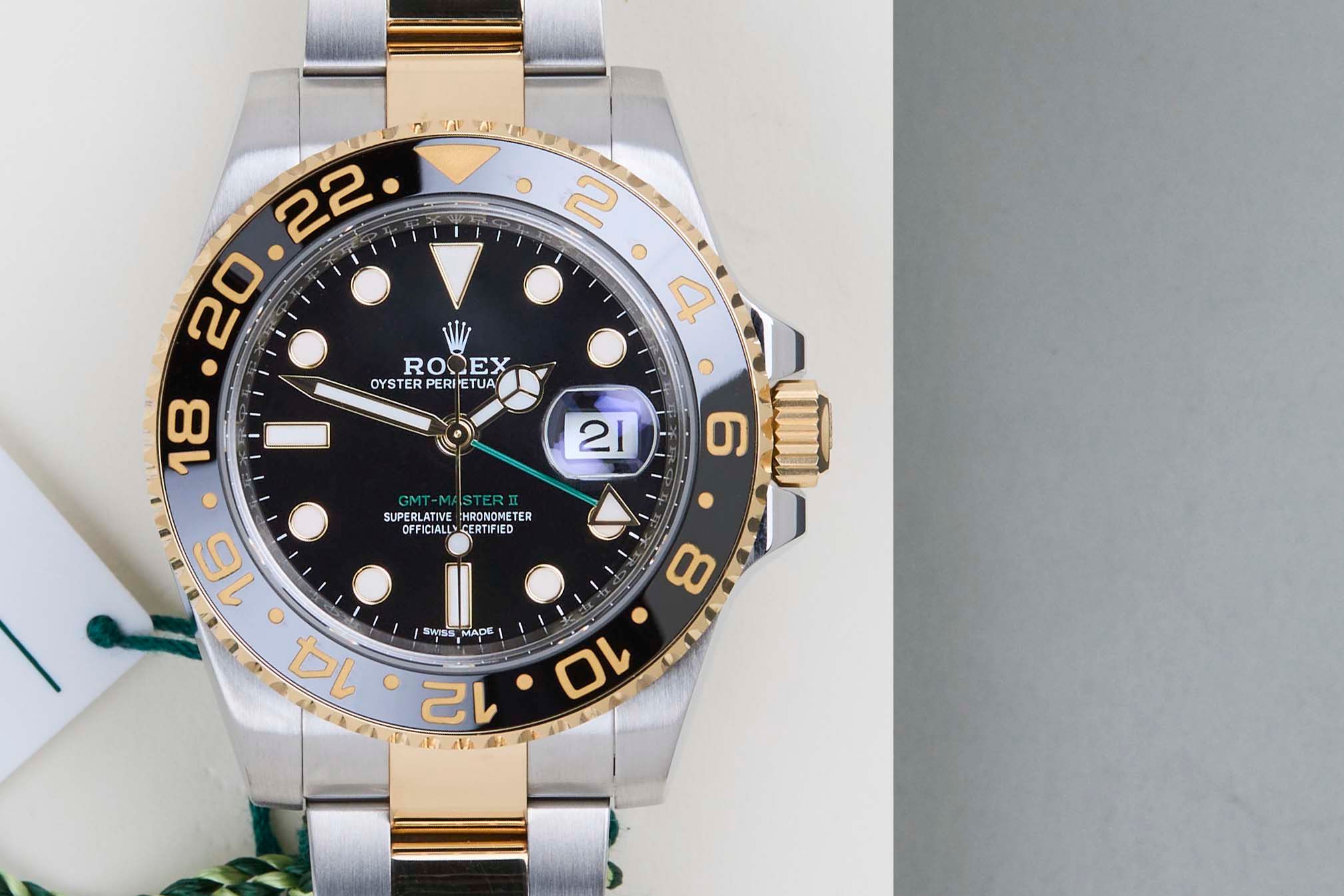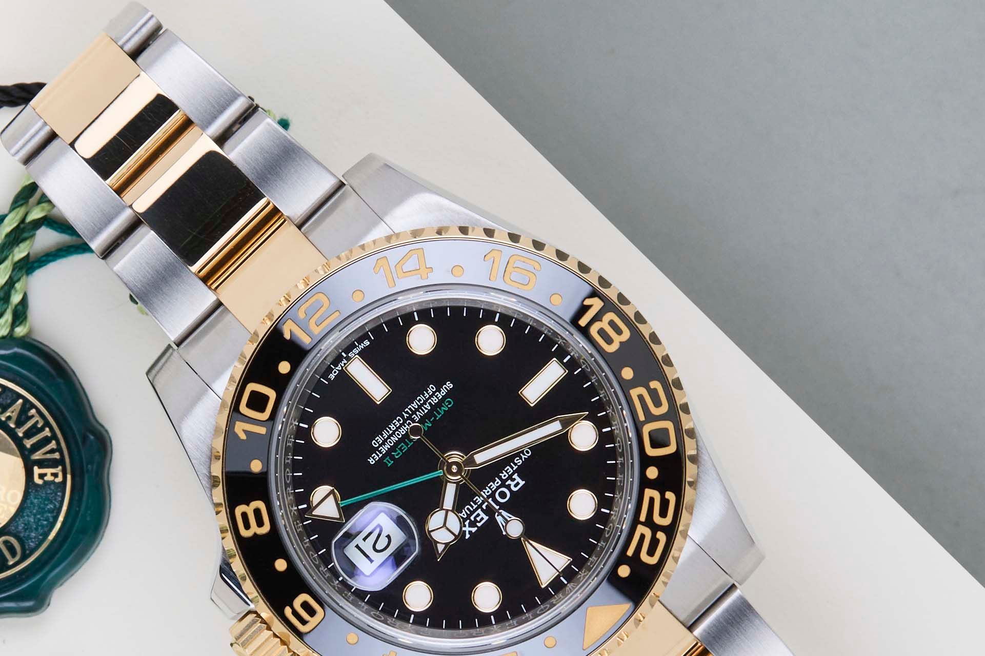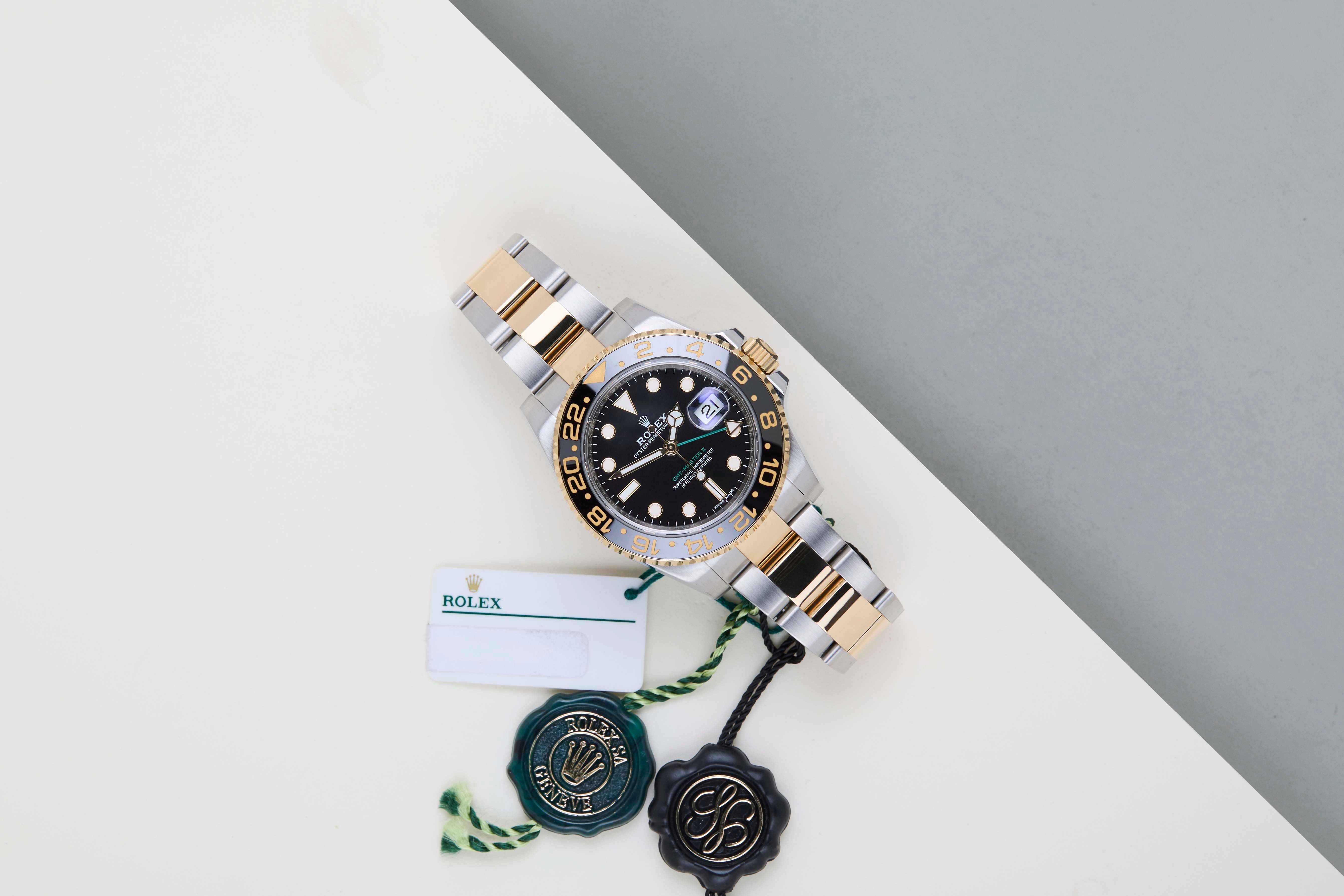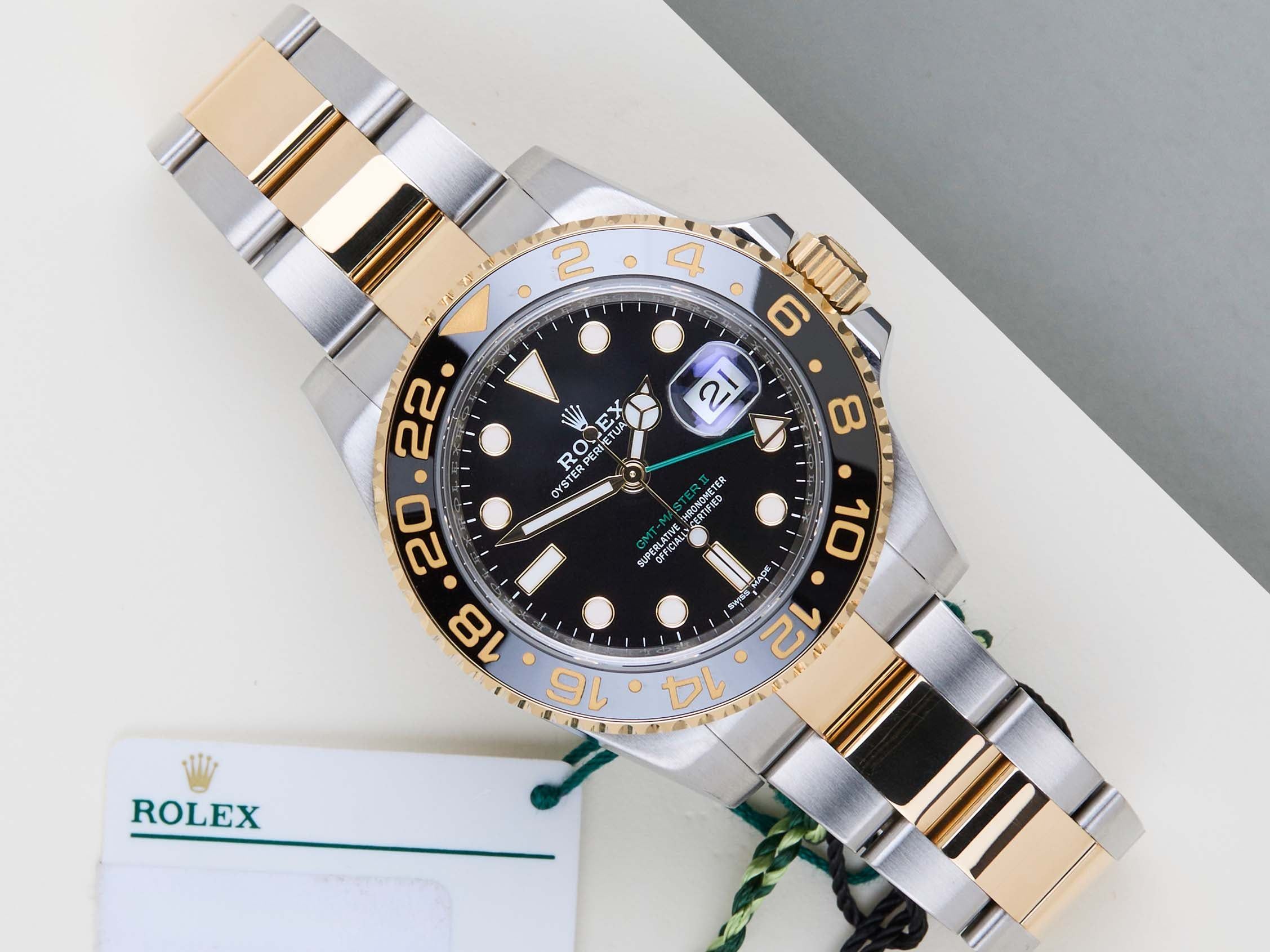 Full Set | European Warranty Card (LC170 - Italy) | Including Rolex White tagThe Rolex GMT was originally designed in collaboration with Pan American Airways and issued to their crews on long-haul flights. The dual time zone can track local and home time, which is a useful tool for pilots and those who are travelling a lot across different time zones.The reference 116713LN is the first generation of the GMT-Master II with a Ceramic Bezel. The material to make this bezel is called 'Cerachrom', which was developed completely in-house by Rolex to be highly scratch-resistant.This GMT is equipped with Black Bezel, which can be derived from the reference 116713LN, Lunette Noir.This GMT-Master is made of stainless steel & Yellow Gold and is fitted with an Oyster Bracelet, which is equipped with the Easylink. This extension, allows the wearer to either extend or shorten the bracelet by 5 millimetres, improving the wearability and usability of the watch.This Rolex GMT-Master II is in a Mint condition and comes with the original Rolex Warranty Card and Box. Furthermore, the watch has been serviced by our watchmaker, and therefore it comes with one year of warranty.