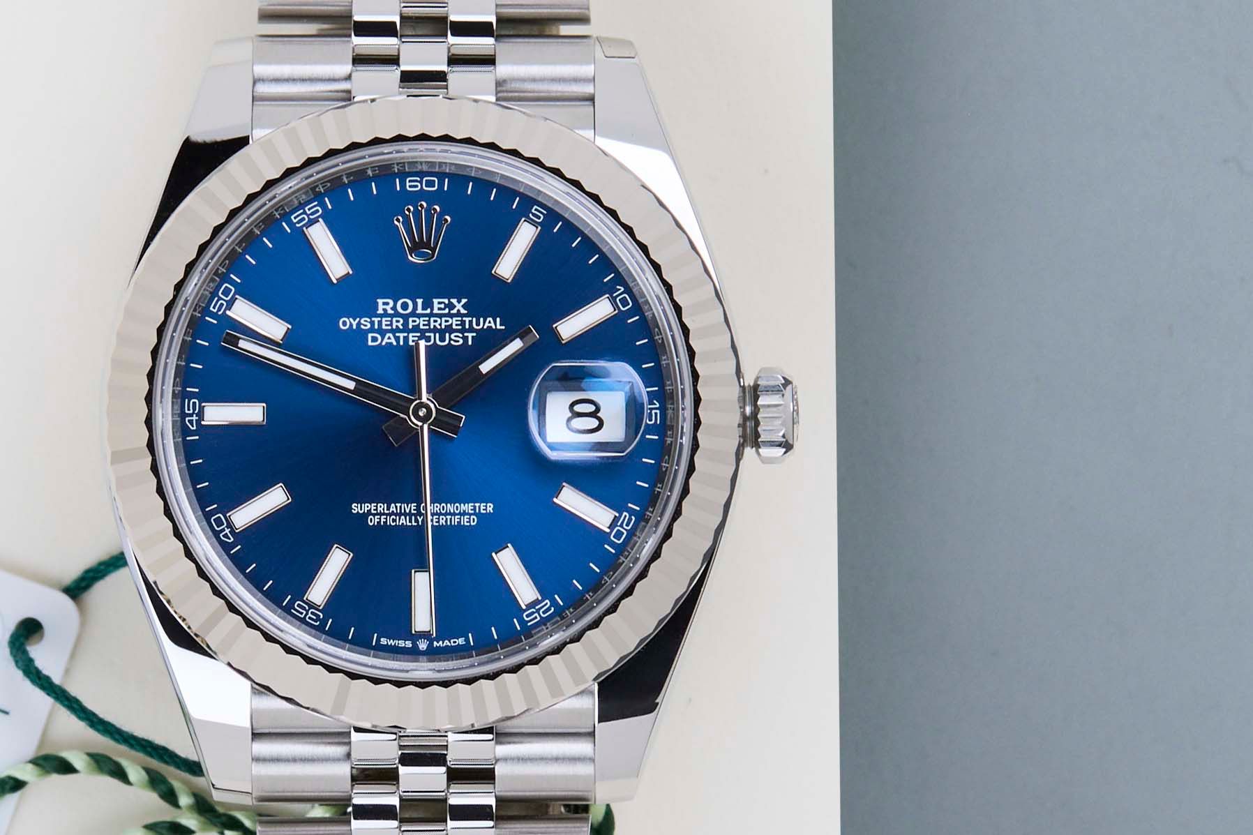 New & Unworn | Full Set | International Rolex Warranty Until December 2030 | Including Rolex White TagRolex introduced the original Datejust in 1945 to celebrate the company's 40th anniversary. Due to the various case sizes and materials, the Datejust has been ingrained in Rolex's history and remains incredibly popular for 75 years.This Rolex Datejust 41 'Blue Dial - Jubilee' was sold for the first time in December 2025.This Datejust is made of a combination of 18k White Gold and stainless steel and is fitted with a Jubilee bracelet, which is equipped with the Easylink. This extension, allows the wearer to either extend or shorten the bracelet by 5 millimeters, improving the wearability and usability of the watch.This Rolex Datejust 41 is New & Unworn and comes with the original Rolex Warranty Card and box. Furthermore, the watch still has International Rolex Warranty until December 2030.