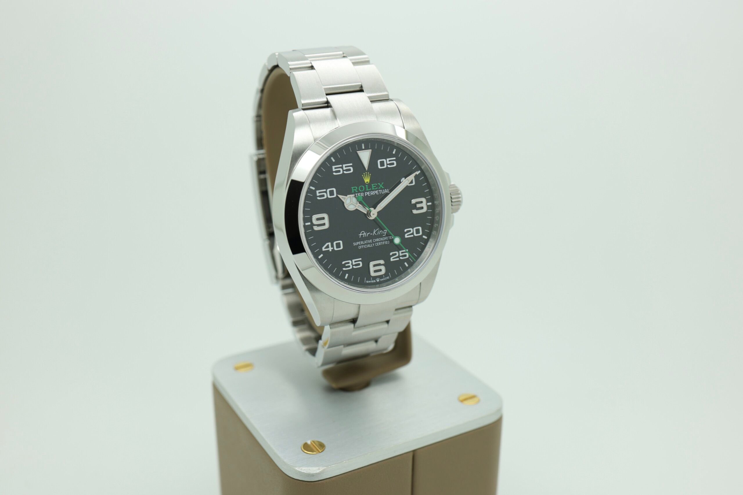 💡 Interessante Tatsache: Der Name Air-King geht auf die 1940er Jahre zurück und wurde geschaffen, um RAF-Piloten des Zweiten Weltkriegs zu ehren – damit ist es einer der am längsten ununterbrochen verwendeten Modellnamen von Rolex.