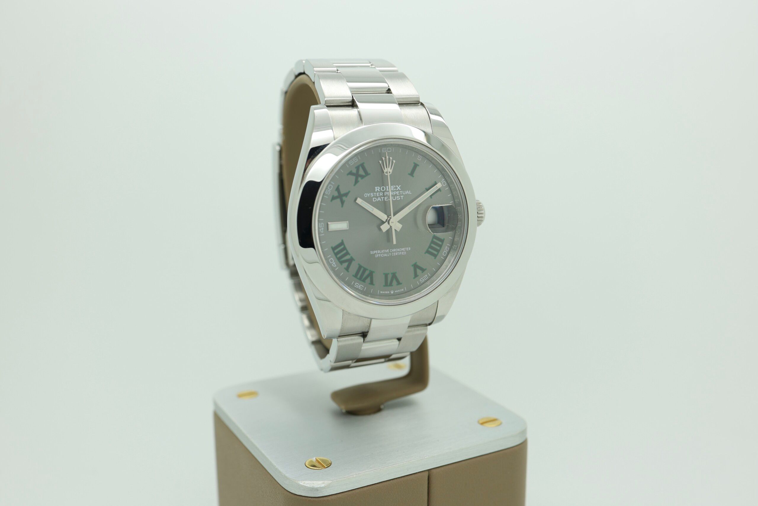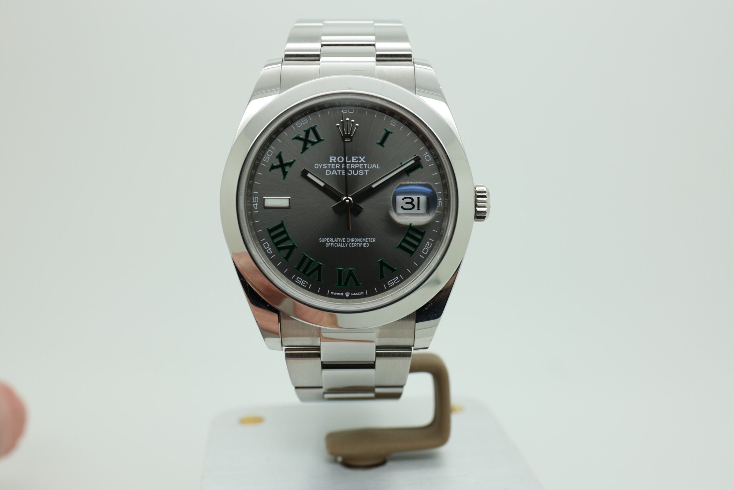 💡 Interessante Tatsache: Das „Wimbledon“ Zifferblatt wurde ursprünglich geschaffen, um die langjährige Partnerschaft von Rolex mit den Wimbledon-Tennismeisterschaften zu feiern – es ist das einzige Datejust-Zifferblatt mit einem charakteristischen grünen Akzent im Katalog von Rolex. 🎾