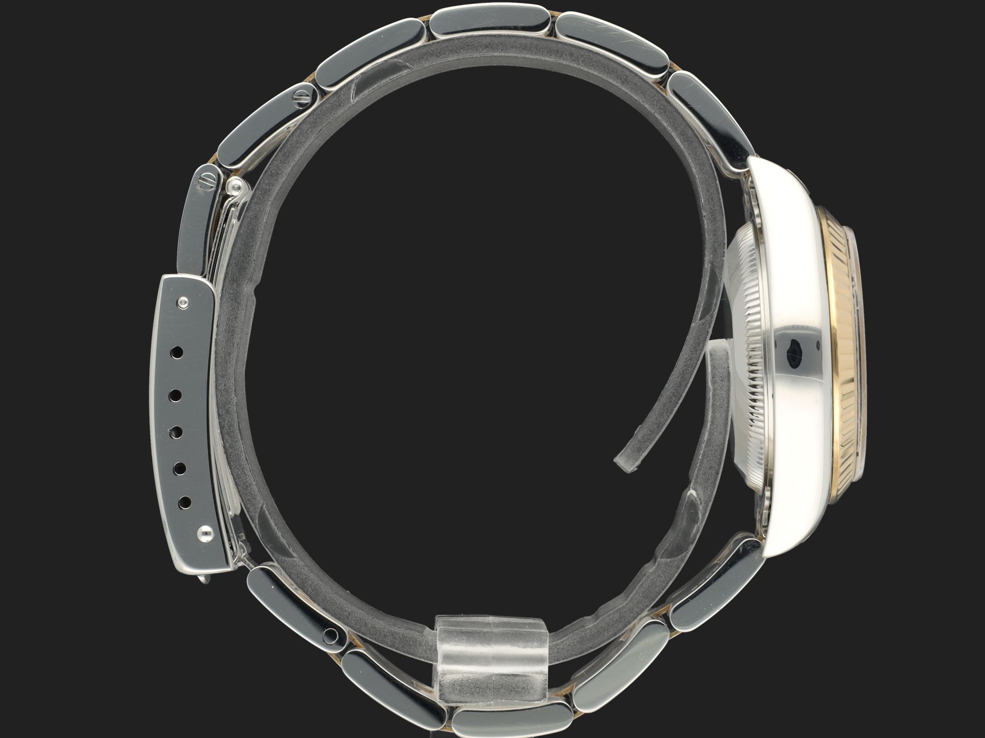 - Leichte Gebrauchsspuren wie feine Kratzer oder kleine Oberflächenkratzer. Gehäuse, Lünette und Armband behalten ihre scharfen Kanten und die ursprüngliche Form. Kann professionell poliert worden sein, ohne die originalen Konturen zu verändern. Mechanisch voll funktionsfähig.