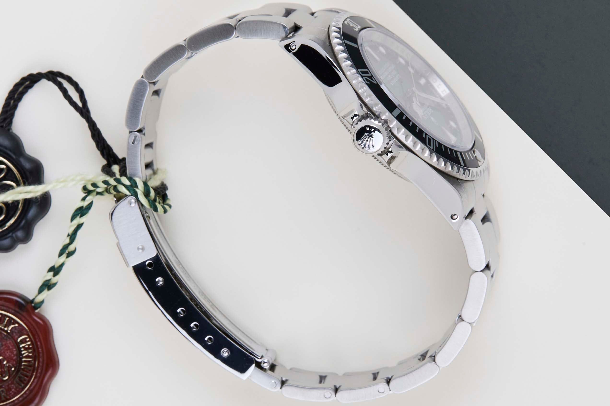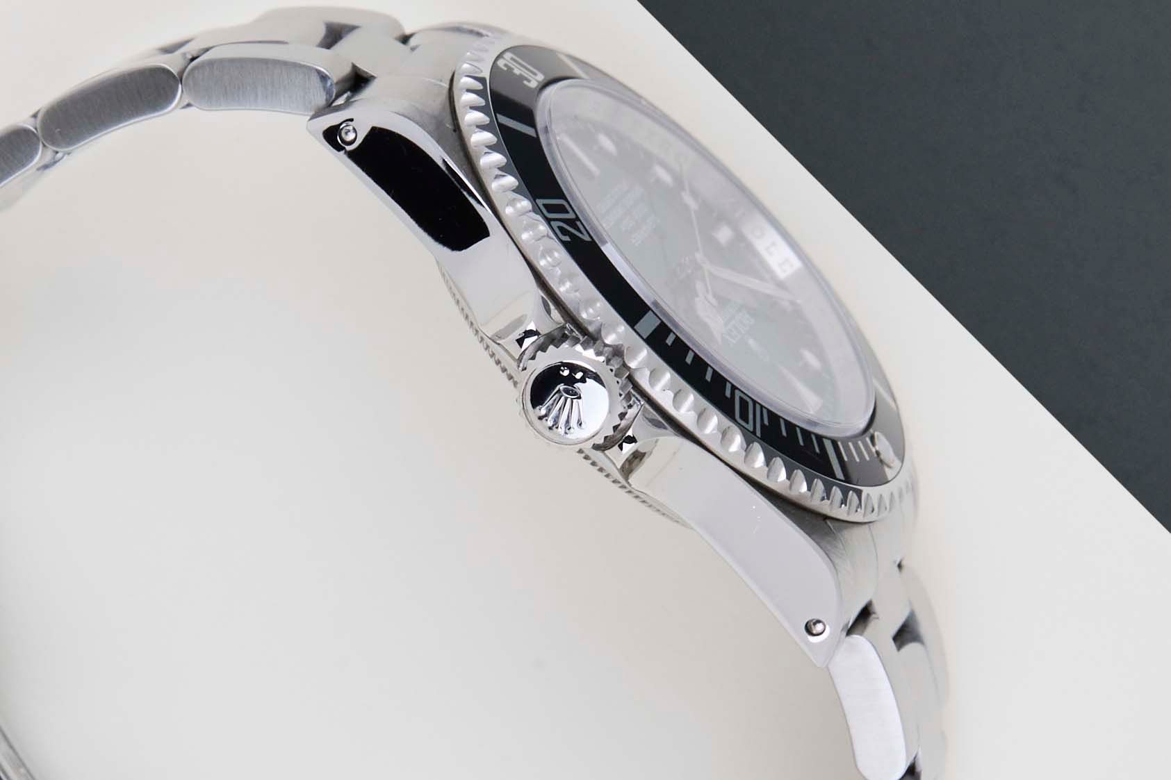 Vollständiges Set | Rehaut-Ring Die Rolex Submariner wurde 1953 von Rolex eingeführt. Sie ist bekannt für ihre Langlebigkeit, Zuverlässigkeit und Präzision und hat sich zu einem der ikonischsten und erkennbarsten Uhrenmodelle der Welt entwickelt. Diese Rolex Submariner 'No Date' wurde erstmals im April 2008 verkauft. Die Uhr besteht vollständig aus Edelstahl. Rolex verwendet 904L in seinen Stahluhren, das ist eine extrem widerstandsfähige und hochpolierbare Superlegierung. Diese Generation der Submariner ist mit einem Chromalight-Zifferblatt ausgestattet, das durch das blaue Leuchten erkennbar ist. Diese Submariner No Date kommt mit einem schwarzen Zifferblatt und einer Lünette. Diese Rolex Submariner No Date ist in neuwertigem Zustand und kommt als vollständiges Set mit der originalen Rolex-Garantiekarte und der Originalverpackung. Darüber hinaus wurde die Uhr von unserem Uhrmacher gewartet und kommt daher mit einem Jahr Steiner-Garantie.