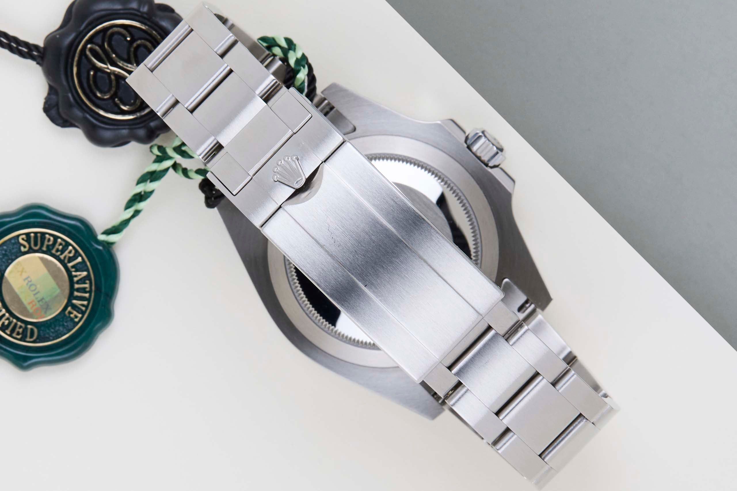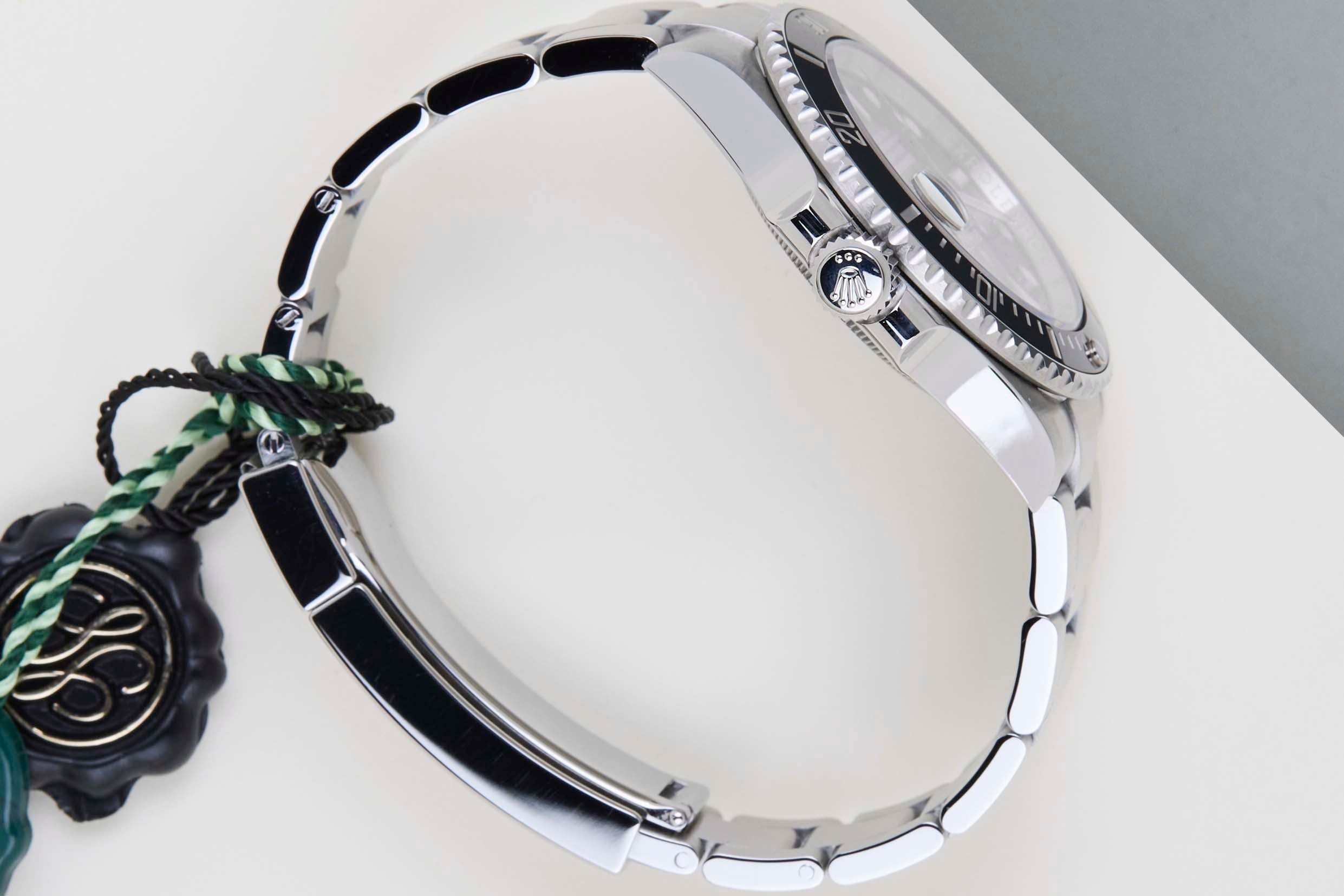 Diese Rolex Submariner Date ist in neuwertigem Zustand und wird mit der originalen Rolex-Garantiekarte und der Box geliefert. Darüber hinaus wird die Uhr mit einer einjährigen Steiner-Garantie geliefert.