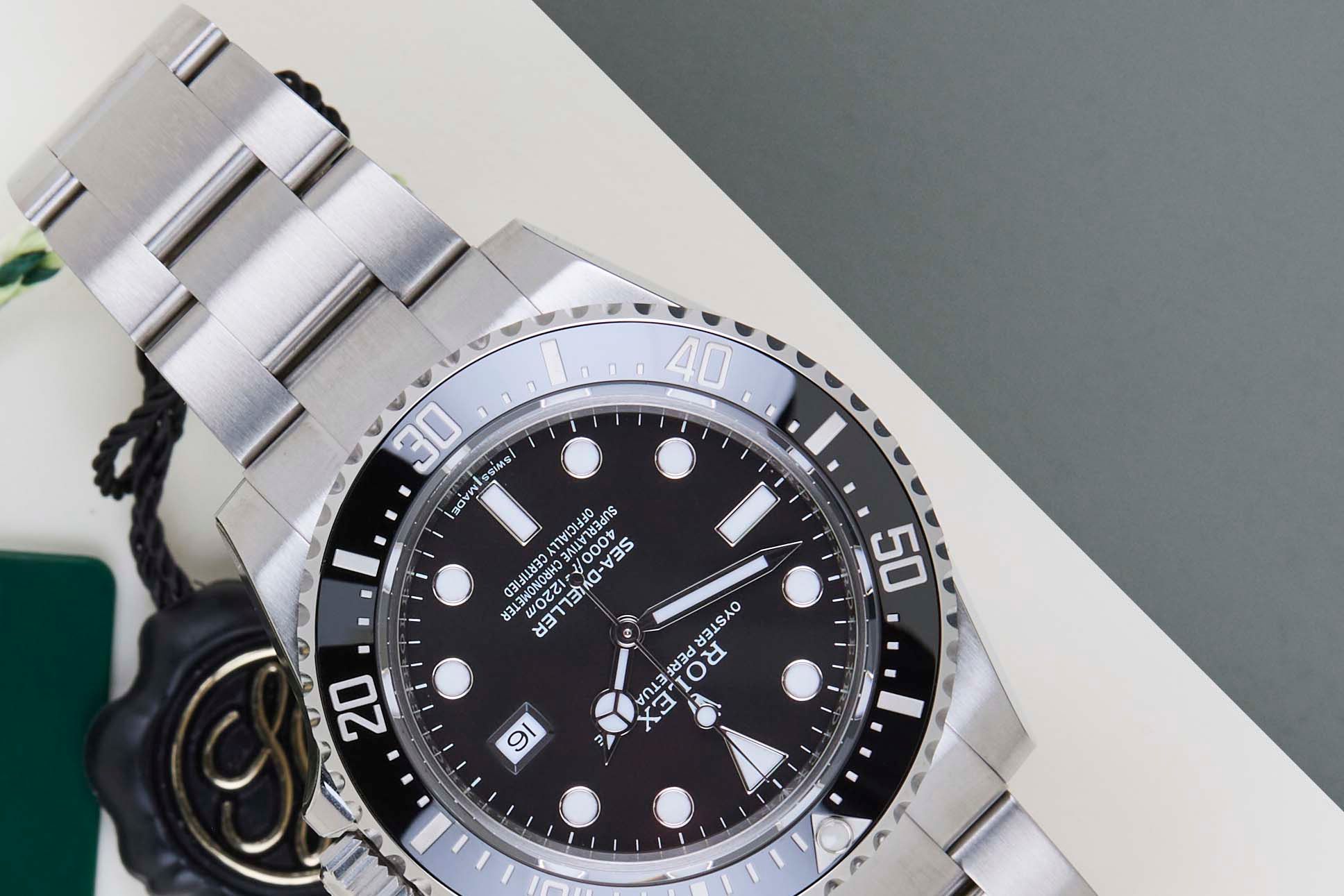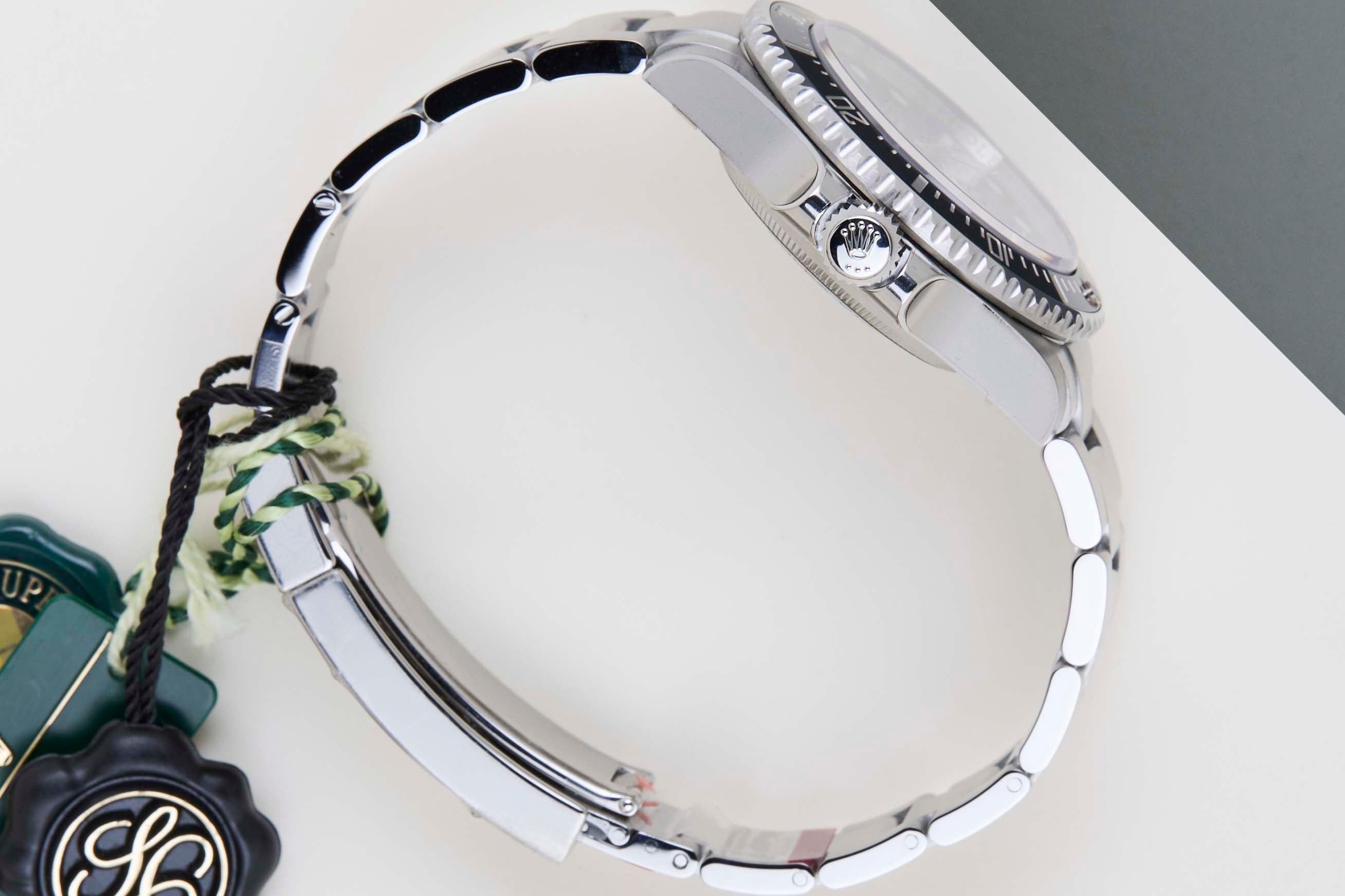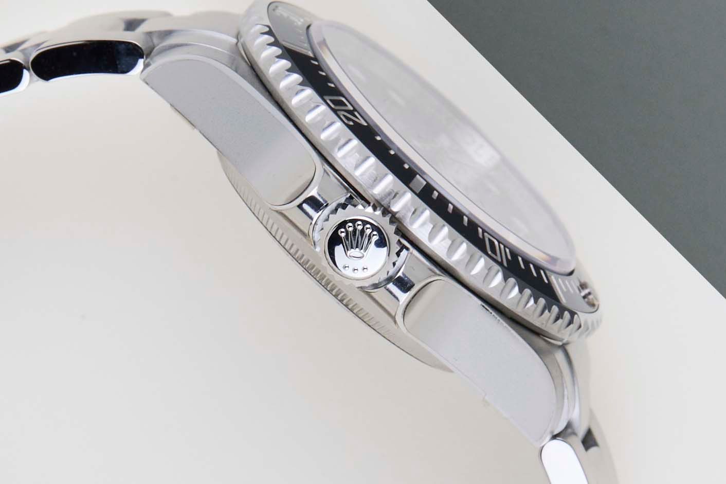 New & Unworn | New Old Stock | Full Set | Partly Stickered In 2008, Rolex shelved the Sea-Dweller model in favor of a new and much larger Deepsea Sea-Dweller (DSSD) watch. Nevertheless, after six years, the Swiss watchmaking giant decided to bring it back, and at Baselworld in 2014 the Sea-Dweller 4000 ref. 116600 made its debut. Rolex has been discontinued the 116600 in 2017.The rotatable bezel is one of the key functionalities of the Sea Dweller. The luminescent capsule on the zero marker makes sure that a diver is always able to accurately monitor diving time, no matter how dark the environment.The 40mm Sea-Dweller is equipped with a helium escape valve allowing for a water-resistance of 4,000ft or 1,220m. This Sea Dweller features a ceramic bezel, which is nearly scratch-proof.This Sea Dweller comes with a Black dial and bezel and the famous Rolex Oyster bracelet. The watch is fully made out of stainless steel. Rolex uses 904L in its steel watches, which is an extremely resistant and highly polishable superalloy.This specific Rolex Sea Dweller is originally delivered in July 2017 and is in New & Unworn condition and comes as a full-set including the original Rolex papers and box. Furthermore, the watch has been checked by our watchmakers, and therefore it comes with One Year of Steiner Warranty.