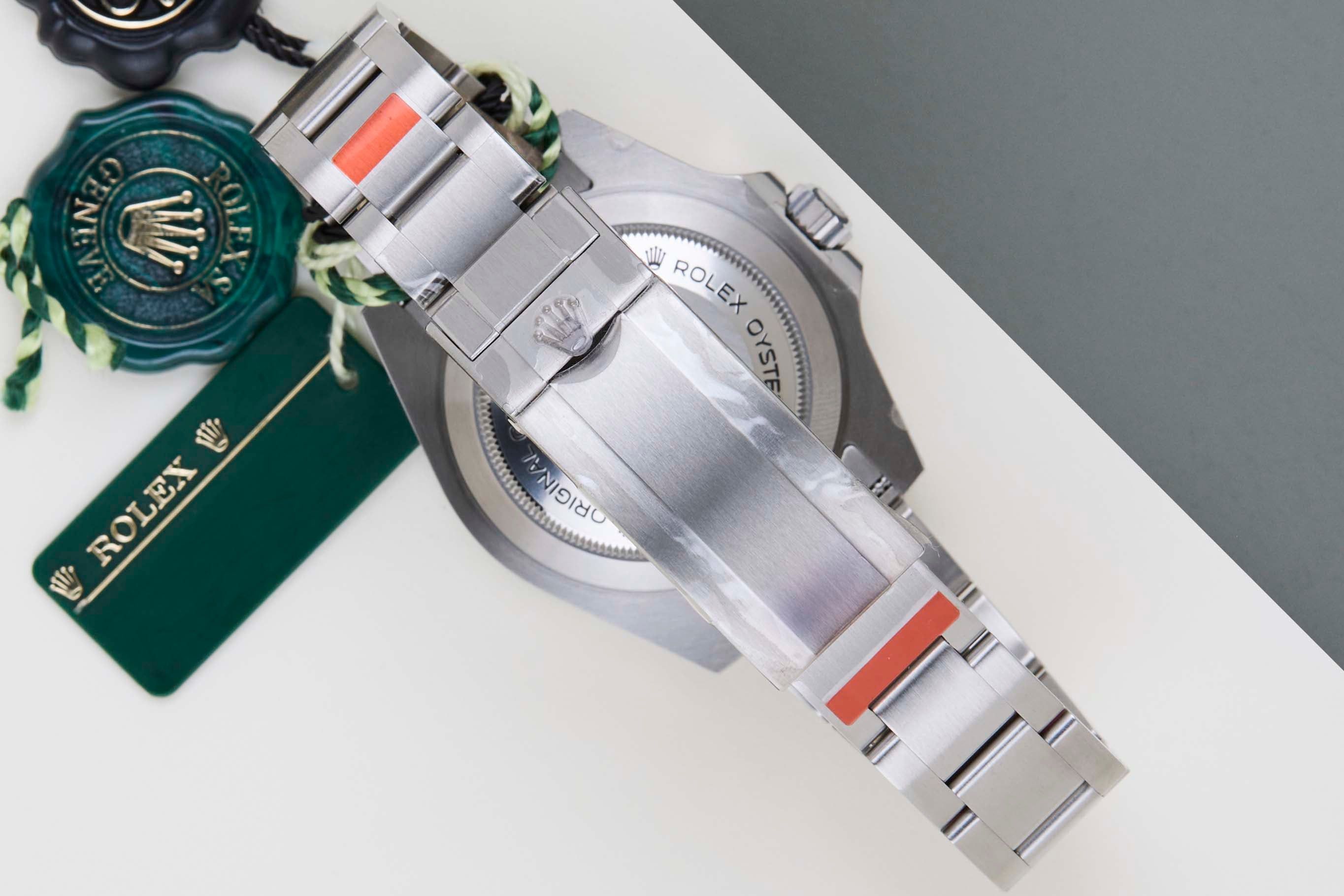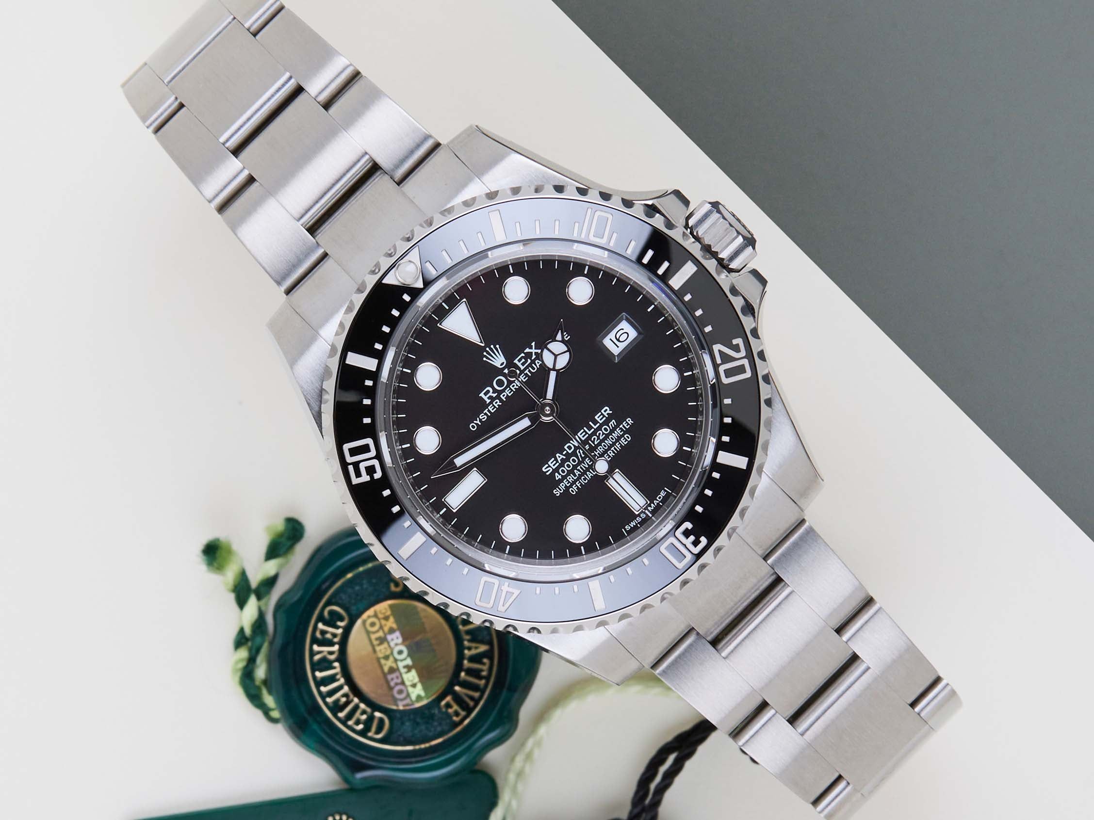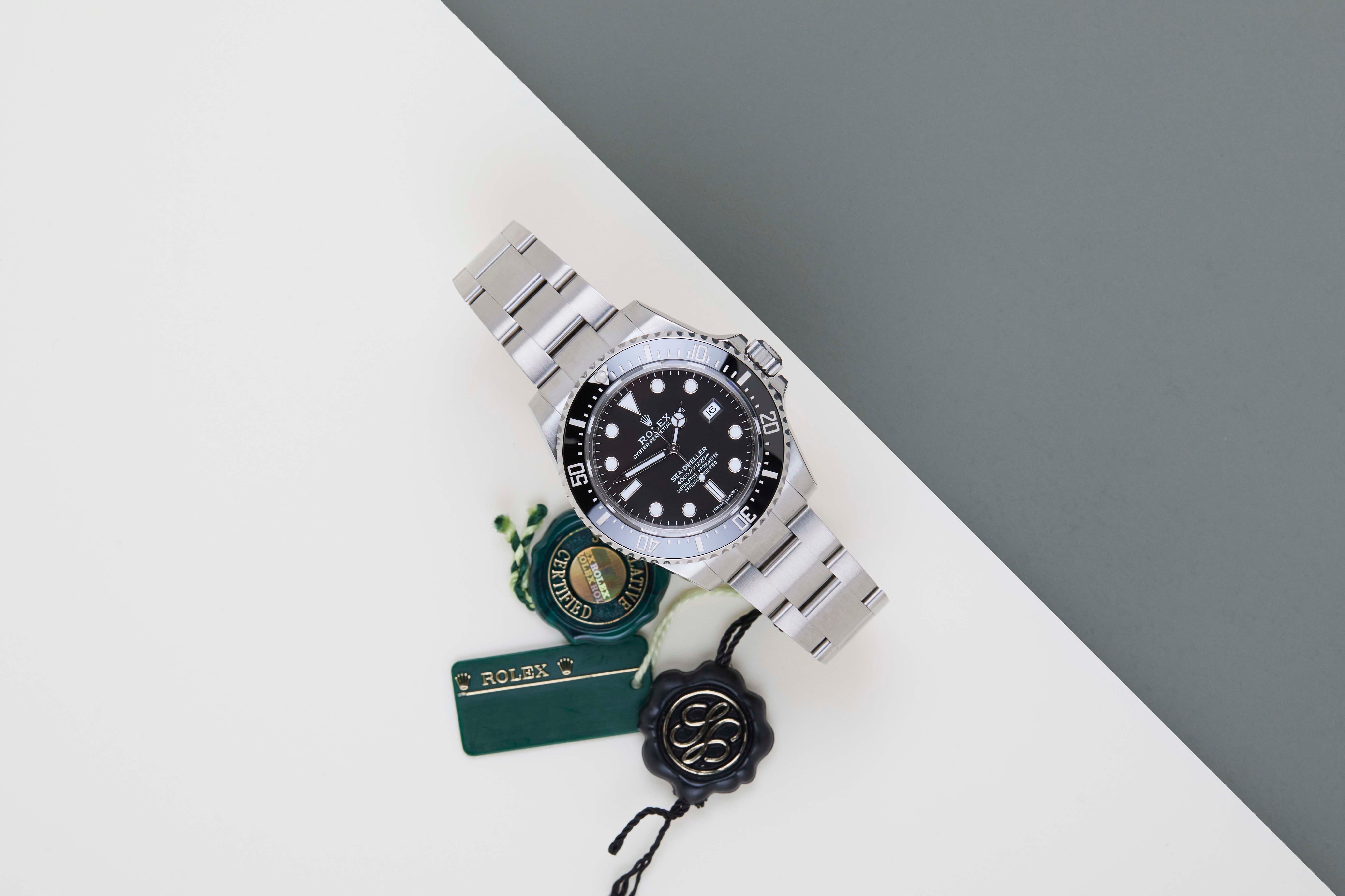 New & Unworn | New Old Stock | Full Set | Partly Stickered In 2008, Rolex shelved the Sea-Dweller model in favor of a new and much larger Deepsea Sea-Dweller (DSSD) watch. Nevertheless, after six years, the Swiss watchmaking giant decided to bring it back, and at Baselworld in 2014 the Sea-Dweller 4000 ref. 116600 made its debut. Rolex has been discontinued the 116600 in 2017.The rotatable bezel is one of the key functionalities of the Sea Dweller. The luminescent capsule on the zero marker makes sure that a diver is always able to accurately monitor diving time, no matter how dark the environment.The 40mm Sea-Dweller is equipped with a helium escape valve allowing for a water-resistance of 4,000ft or 1,220m. This Sea Dweller features a ceramic bezel, which is nearly scratch-proof.This Sea Dweller comes with a Black dial and bezel and the famous Rolex Oyster bracelet. The watch is fully made out of stainless steel. Rolex uses 904L in its steel watches, which is an extremely resistant and highly polishable superalloy.This specific Rolex Sea Dweller is originally delivered in July 2017 and is in New & Unworn condition and comes as a full-set including the original Rolex papers and box. Furthermore, the watch has been checked by our watchmakers, and therefore it comes with One Year of Steiner Warranty.