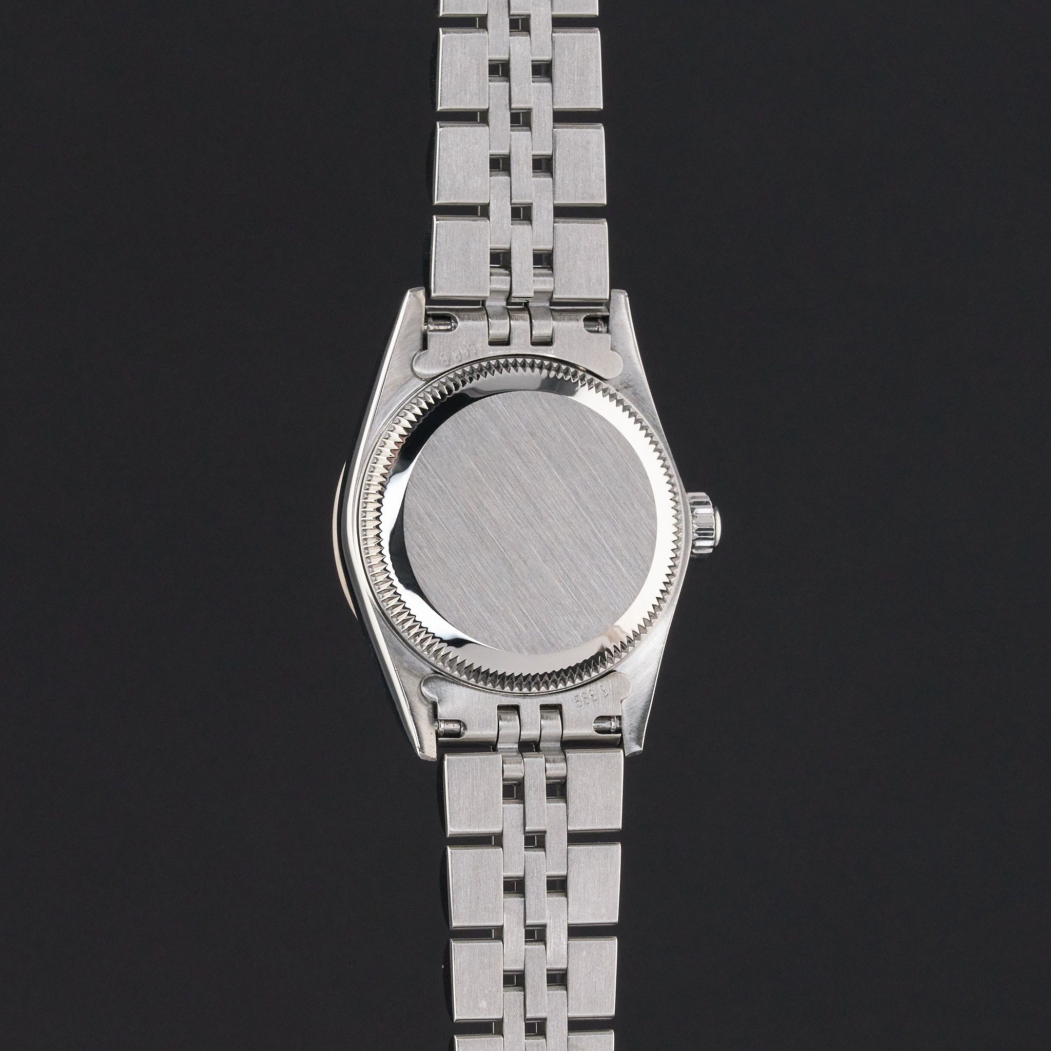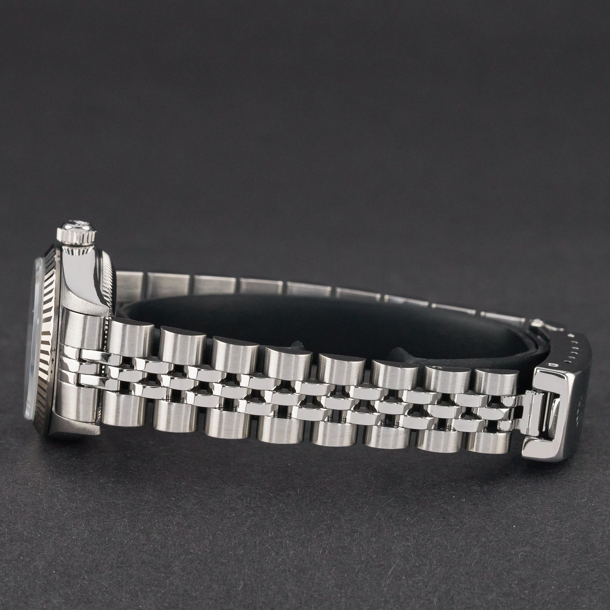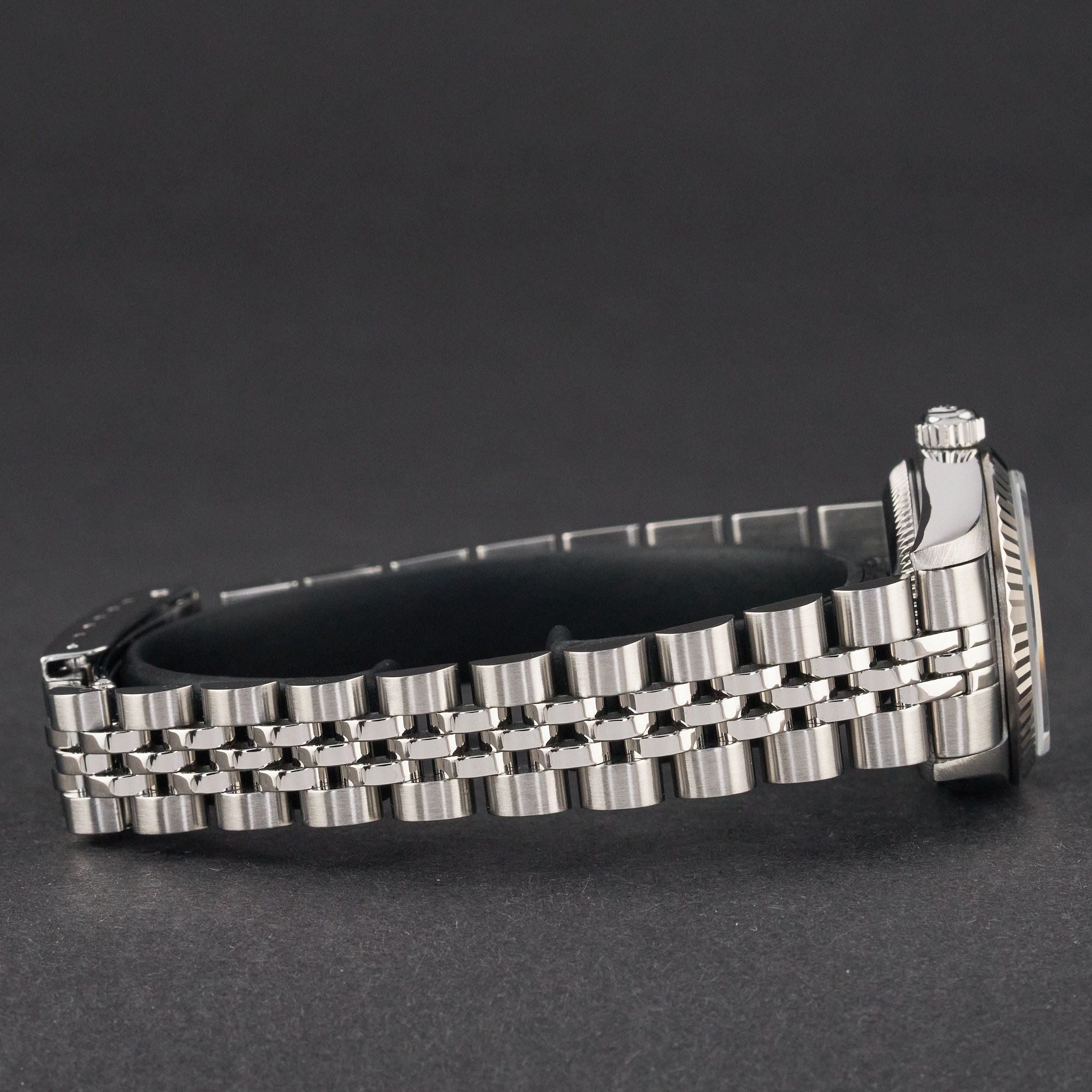 Diese Rolex Oyster Perpetual Lady 76094 verfügt über eine schwarze Zifferblatt und ist aus Edelstahl gefertigt, mit einem Produktionsjahr von 2001.
