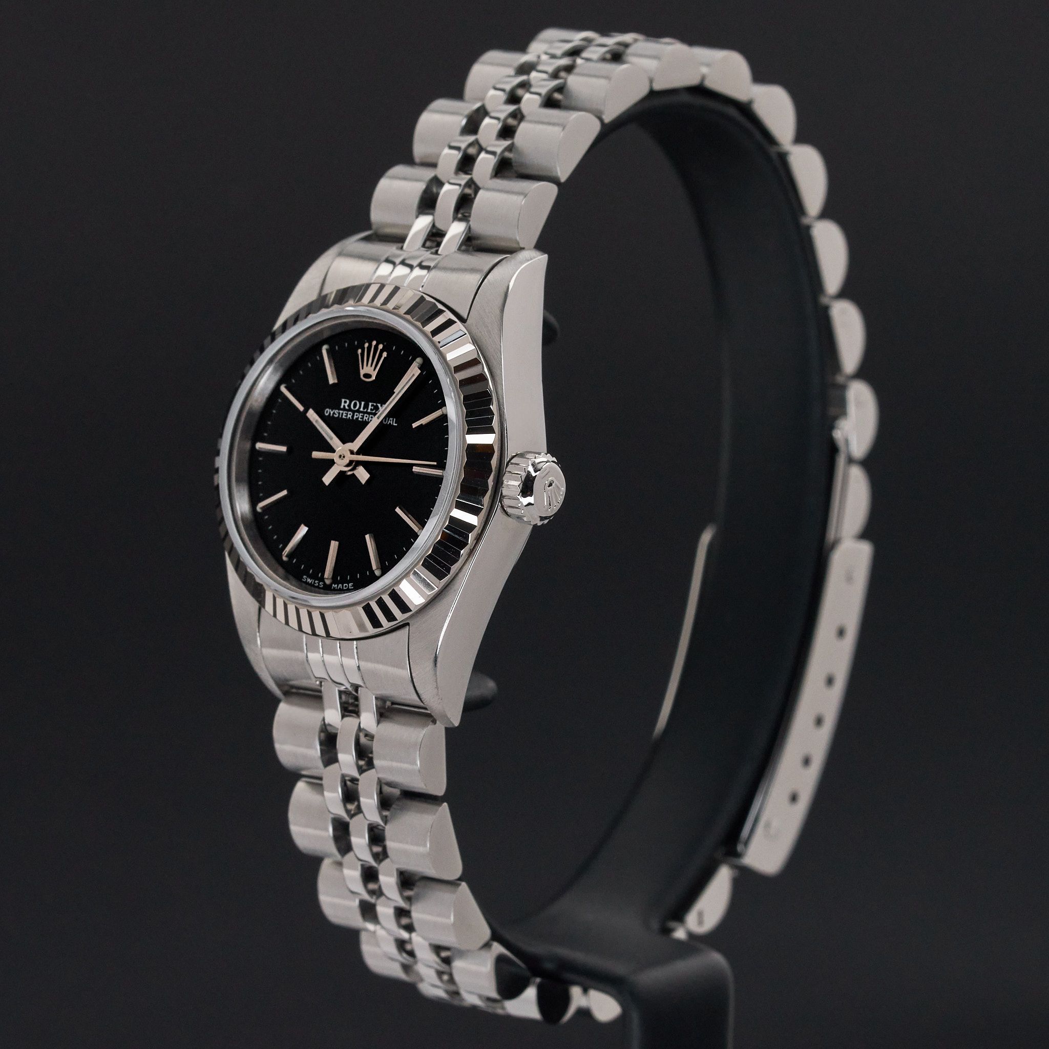 This Rolex Oyster Perpetual Lady 76094 features a Black dial and is crafted from stainless steel, with a production year of 2001.Case No: K25XXXX