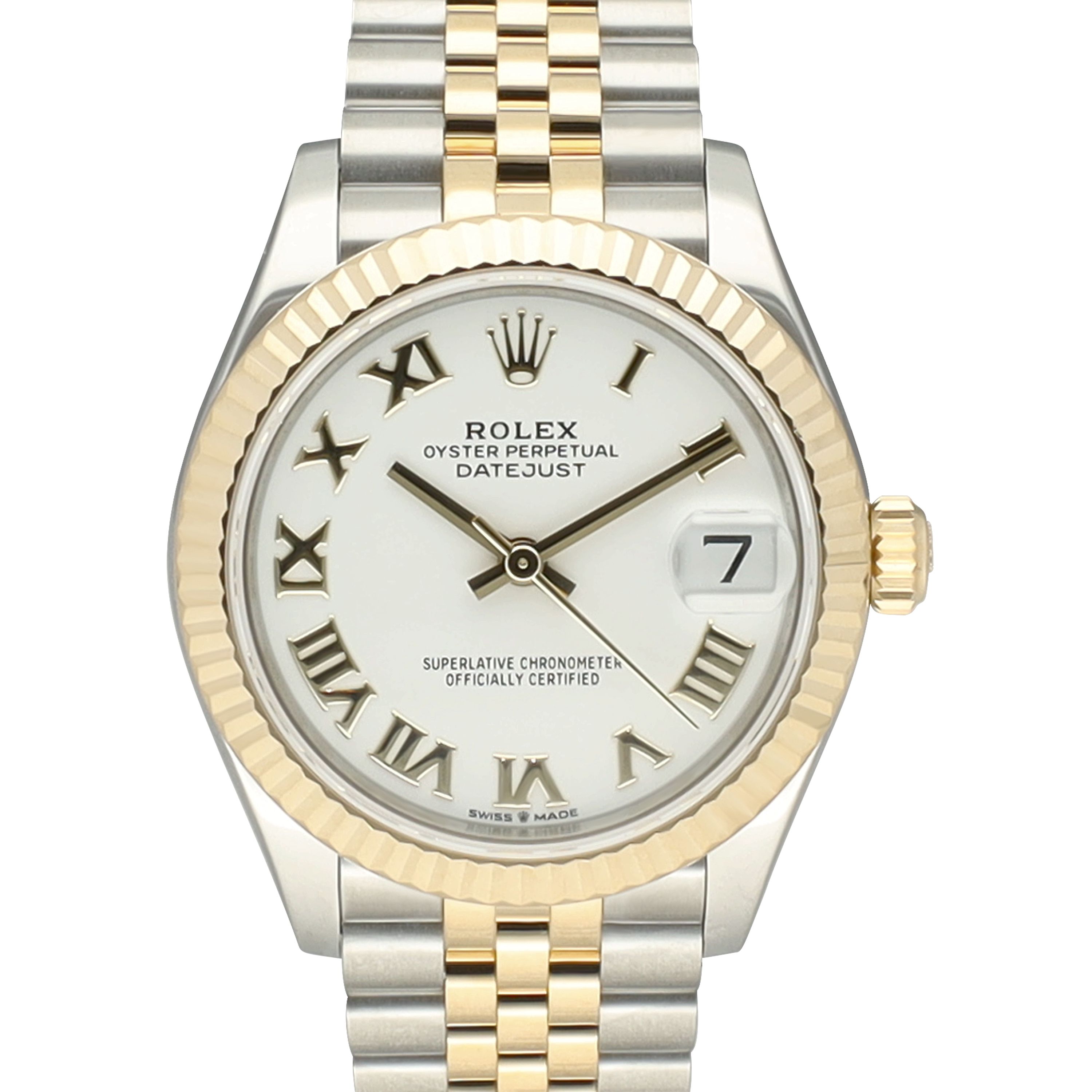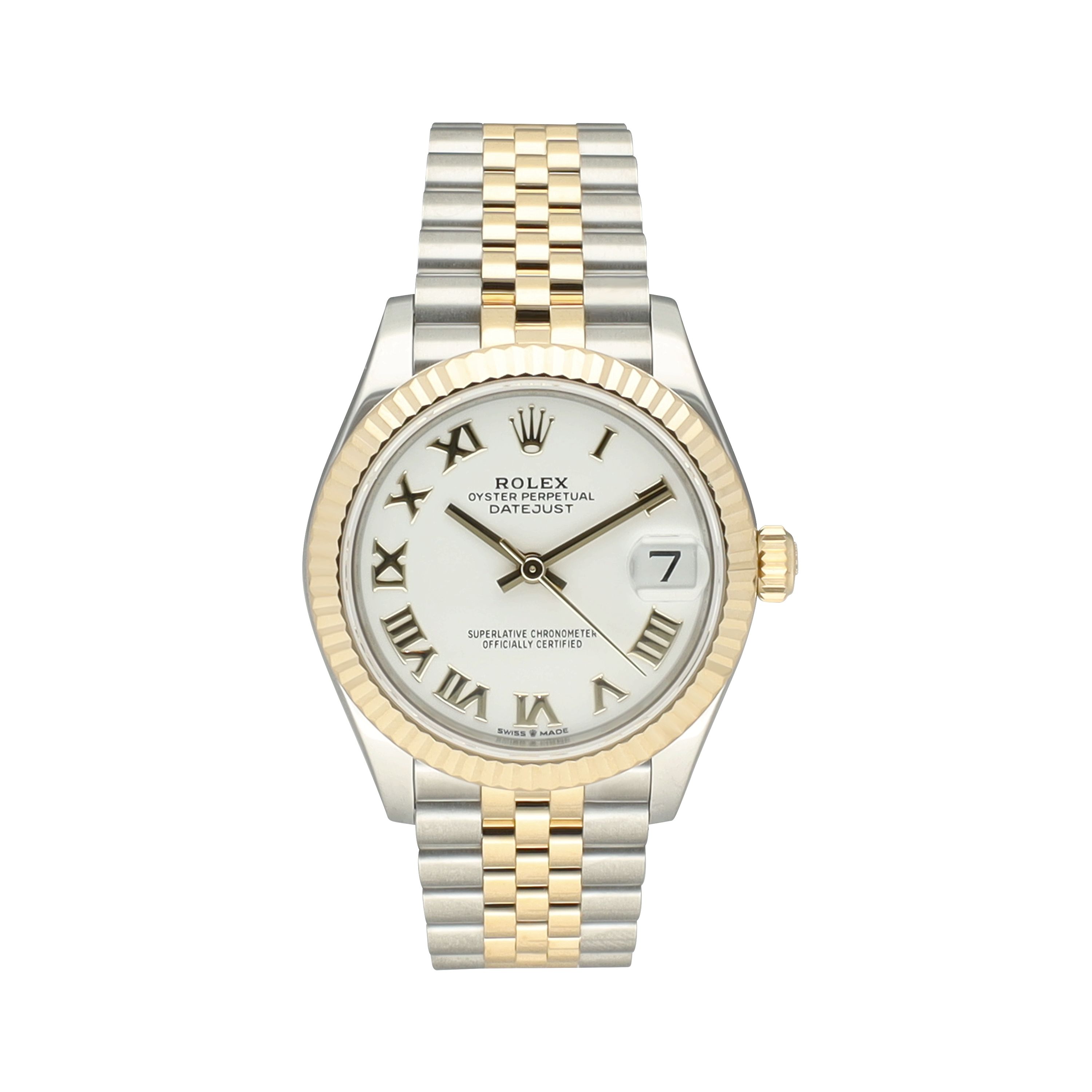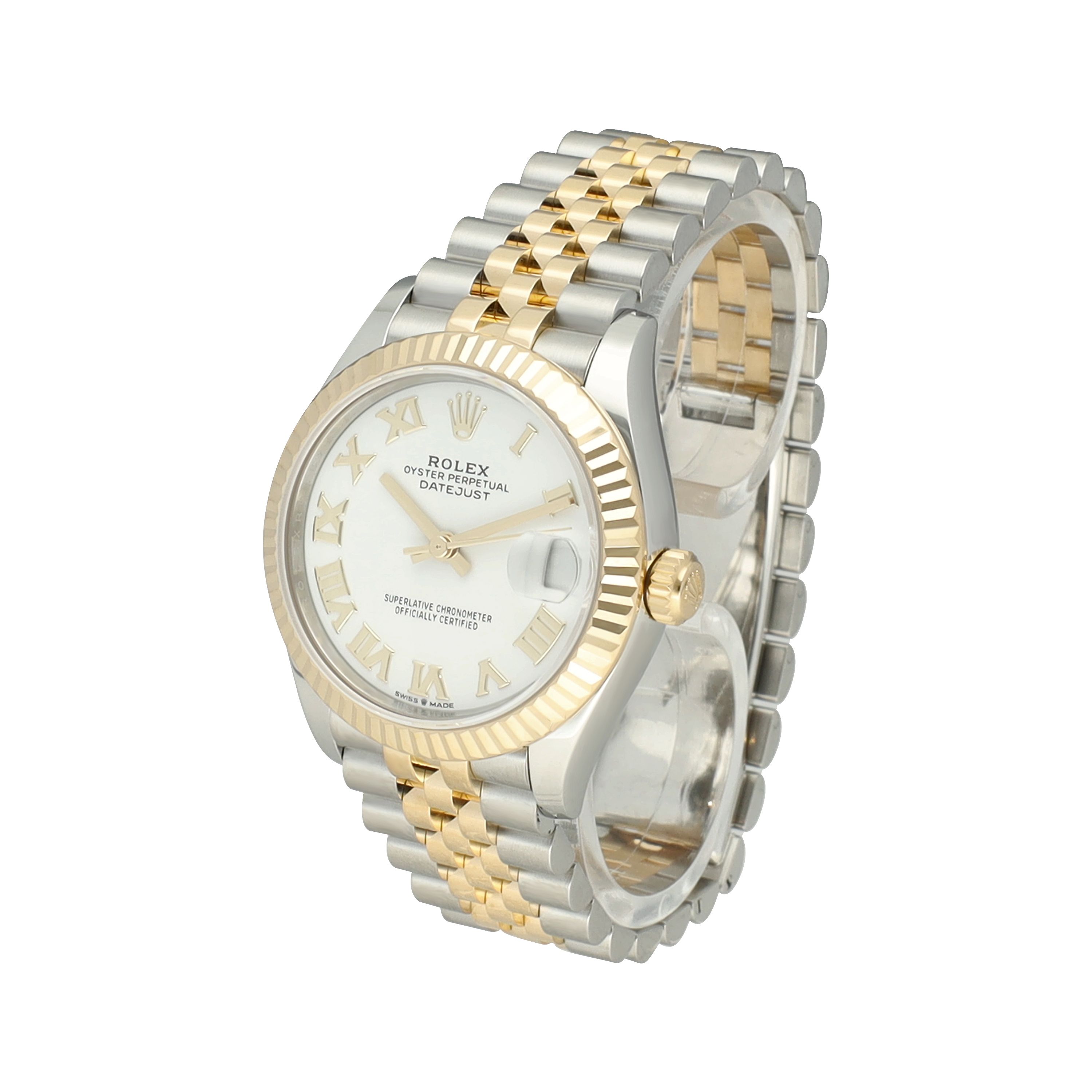 The 31 mm case is crafted from Oystersteel and 18-carat yellow gold and is fitted with a fluted yellow gold bezel. Combined with the iconic Jubilee bracelet, this Datejust offers exceptional comfort on the wrist and an elegant, refined presence—perfectly suited for both daily wear and formal occasions.