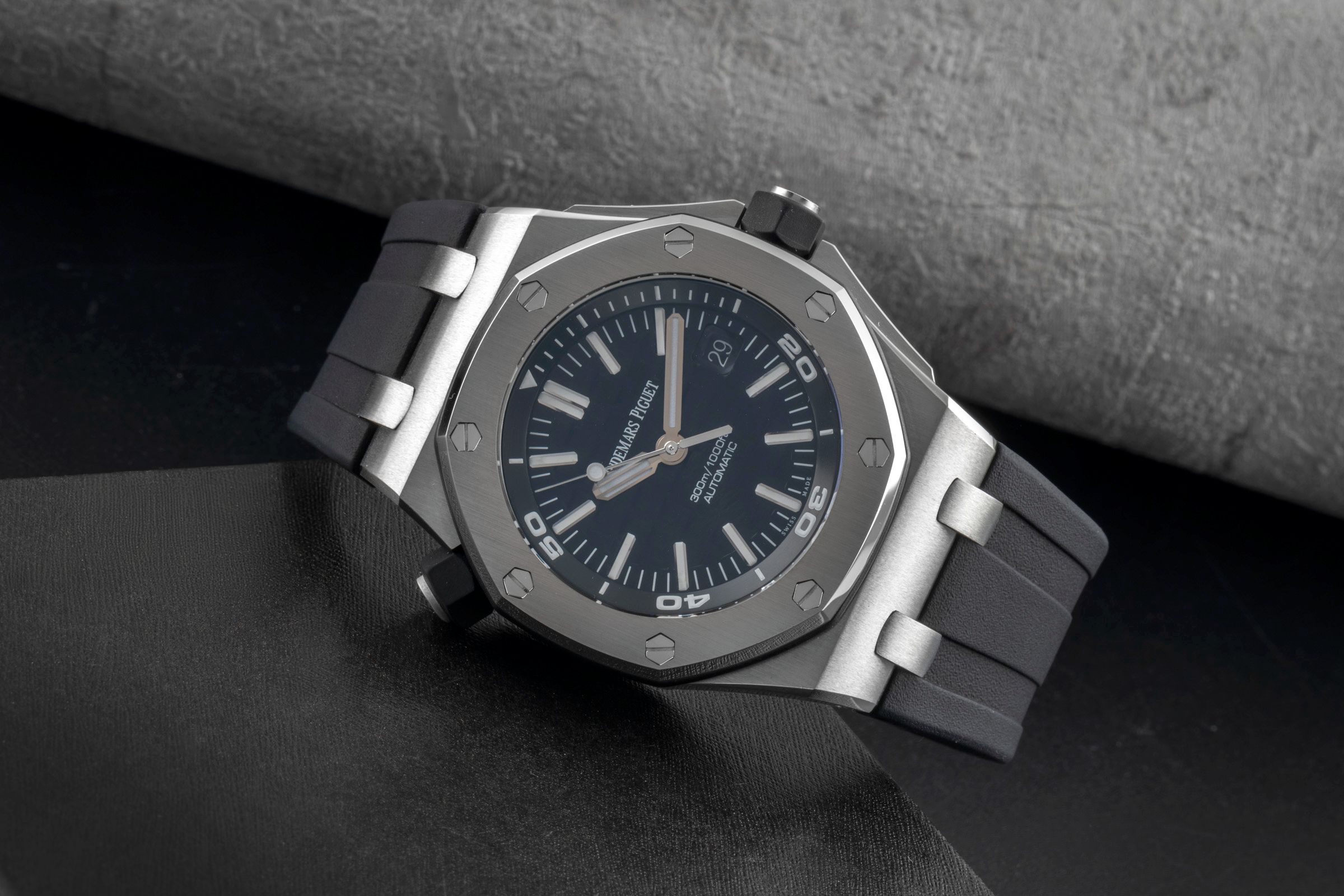 Alternative title: Audemars Piguet 15710ST.OO.A002CA.01 Royal Oak Offshore Diver Stainless Steel / Black; Audemars Piguet Royal Oak Stahl Automatik Ref 15710ST.00.A002CA.01 Box & Papiere [2600015]