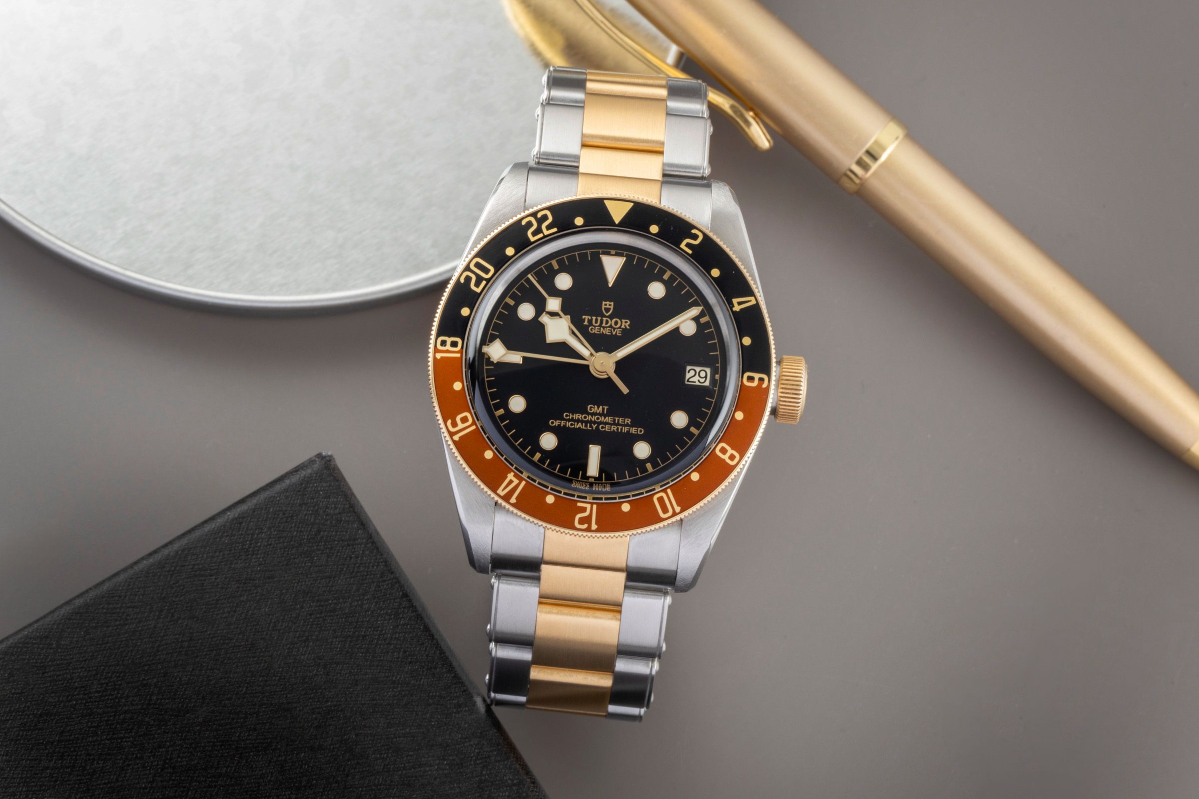 Alternative title: Tudor 79833MN Black Bay Rootbeer; Tudor Black Bay GMT Stahl / Gold Automatik Herrenuhr M79833MN B&P 2022 [2600390]