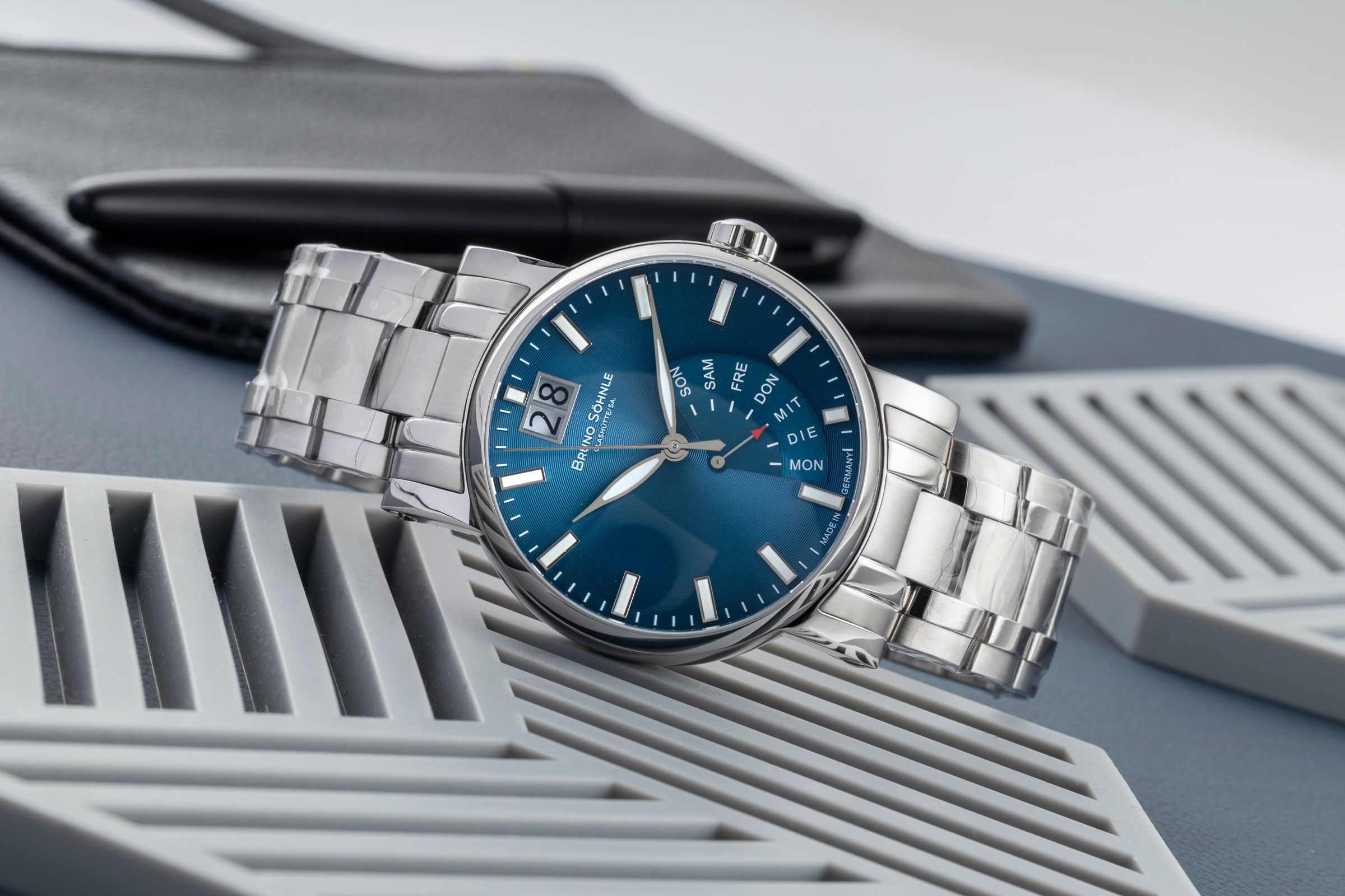 Accessories: Original Bruno Söhnle Glashütte box as pictured, Original papers as pictured, Booklets as pictured
