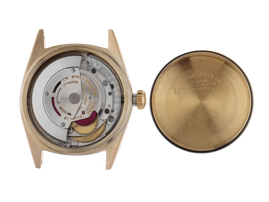 Gehäuse 18kt Gelbgold poliert und satiniert, Gehäusedurchmesser ohne Krone 36mm, Gehäusehöhe 12,6mm. Lünette 18kt Gelbgold geriffelt und poliert. Rolex Armband Krokoleder schwarz mit Ziernaht, Anstoßbreite 20mm, Rolex Stiftschließe Gelbgold vergoldet mit Hersteller-Logo. Zifferblatt Buckley Dial champagnerfarben mit schwarzen römischen Ziffern und weißgoldenen Zeigern sowie gekröpfter Minuterie. Uhrwerk Automatik, Chronometer, Rolex Manufakturkaliber 1570 mit 26 Edelsteinen. Anzeige von Stunde, Minute und Sekunde über Zeiger aus der Mitte, Datumsanzeige unter Glaslupe bei 3 Uhr mit open 6/9 (offene 6 und 9 in der Datumsanzeige), Wochentagsanzeige in Englisch bei 12 Uhr. Plexiglas gewölbt. Krone verschraubbar mit Hersteller-Logo. Boden 18kt Gelbgold verschraubt. Gewicht der Uhr inklusive Armband 57g. Referenznummer: 1803, Gehäusenummer: 3456XXX, Baujahr: 1972, ID: P2361140000126H-15900, Artikelnummer: 10000084428. Mit Gangkontrolle und kompletter äußerlicher Aufarbeitung von Januar 2026. Original Rolex Box mit Umkarton und Beschreibung, Ledermäppchen, Rolex Block, Übersetzungsheft und Watchregister Auszug von Januar 2026, The Watch Register Zertifikat / ohne Eintrag (Internationale Datenbank für verlorene oder gestohlene Uhren). Superschnäppchen, Kapitalanlage mit Wertsteigerungspotential, sehr seltenes Sammlerstück. Sehr guter Zustand. Lieferzeit sofort.