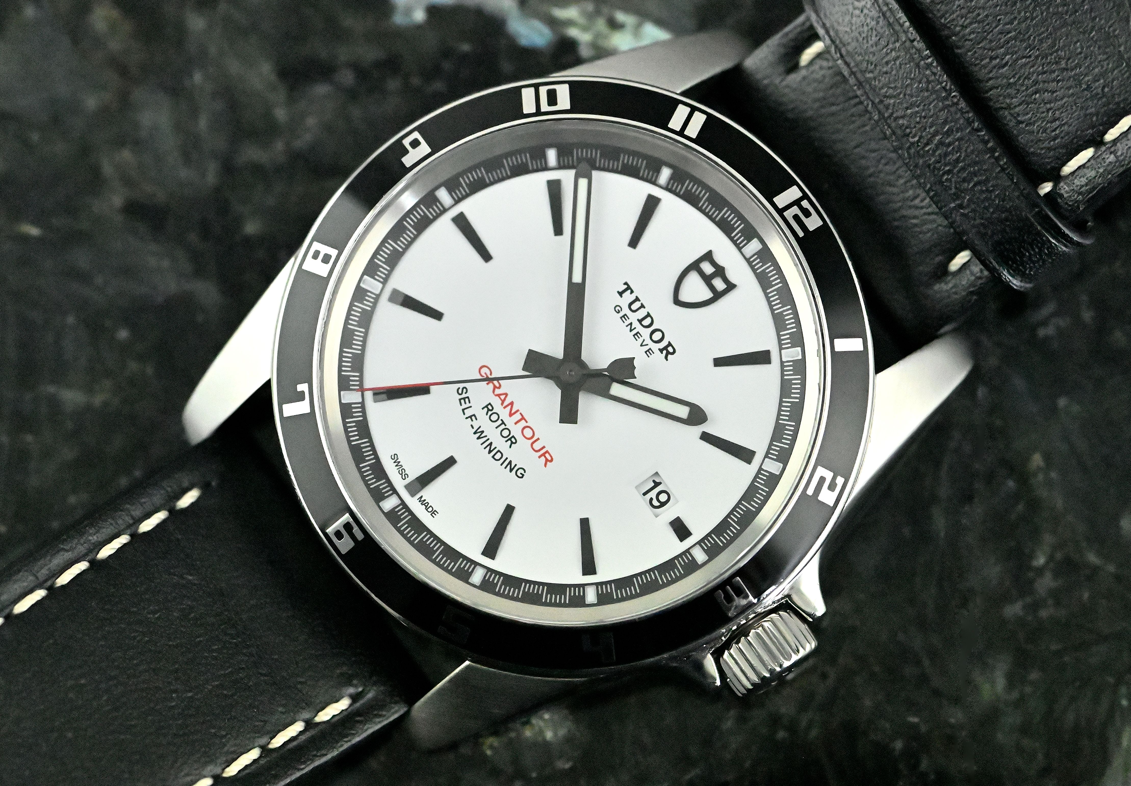 Tudor Grantour Date „weiße Zifferblatt“ | Referenz 20500N | in Stahl | Tudor Automatikwerk Kaliber 2824 mit Datum und zentralem Sekundenzeiger | guter Zustand | neutrales Lederarmband mit einer Dornschließe | das originale Tudor Stahlarmband und ein Gummiarmband mit einer originalen Tudor Stahl-Faltschließe sind ebenfalls enthalten | vollständiges Set mit der originalen Box und dem äußeren Karton - Garantiezertifikat (verkauft am 1. Juni 2012) - Broschüren / Bedienungsanleitungen - Tudor Stahlarmband - Gummiarmband mit Tudor Stahl-Faltschließe.