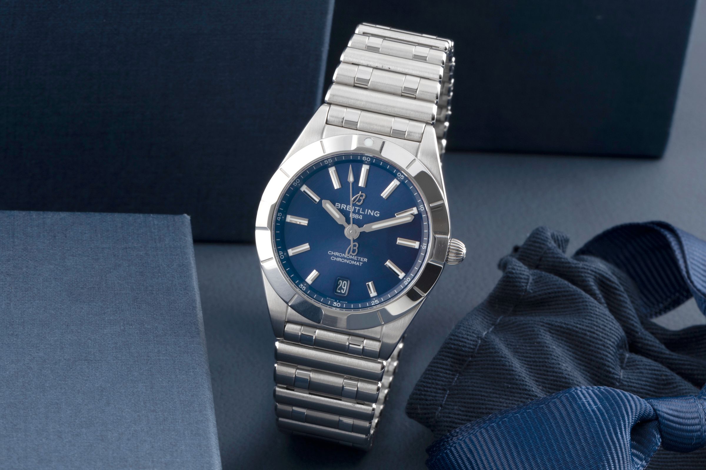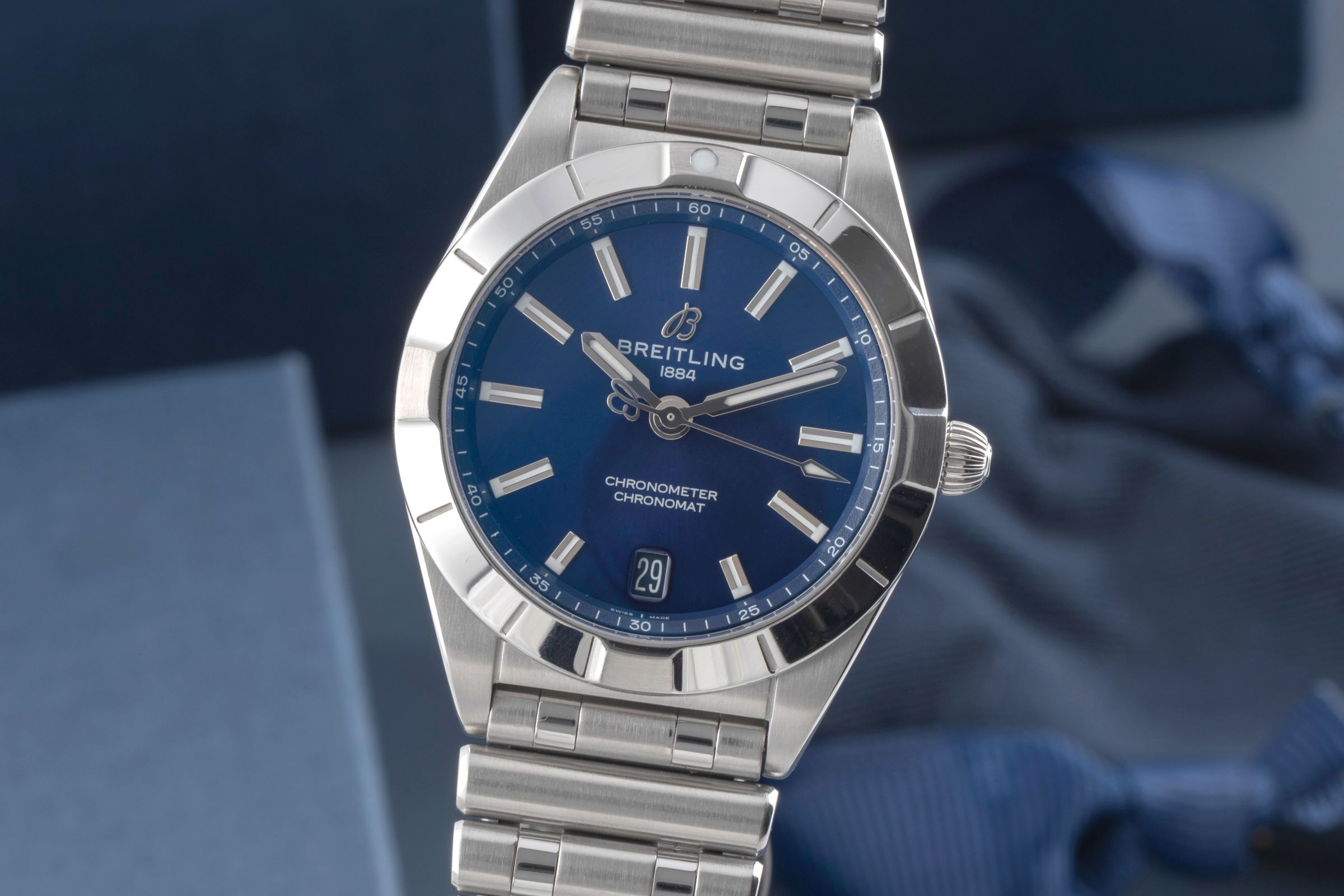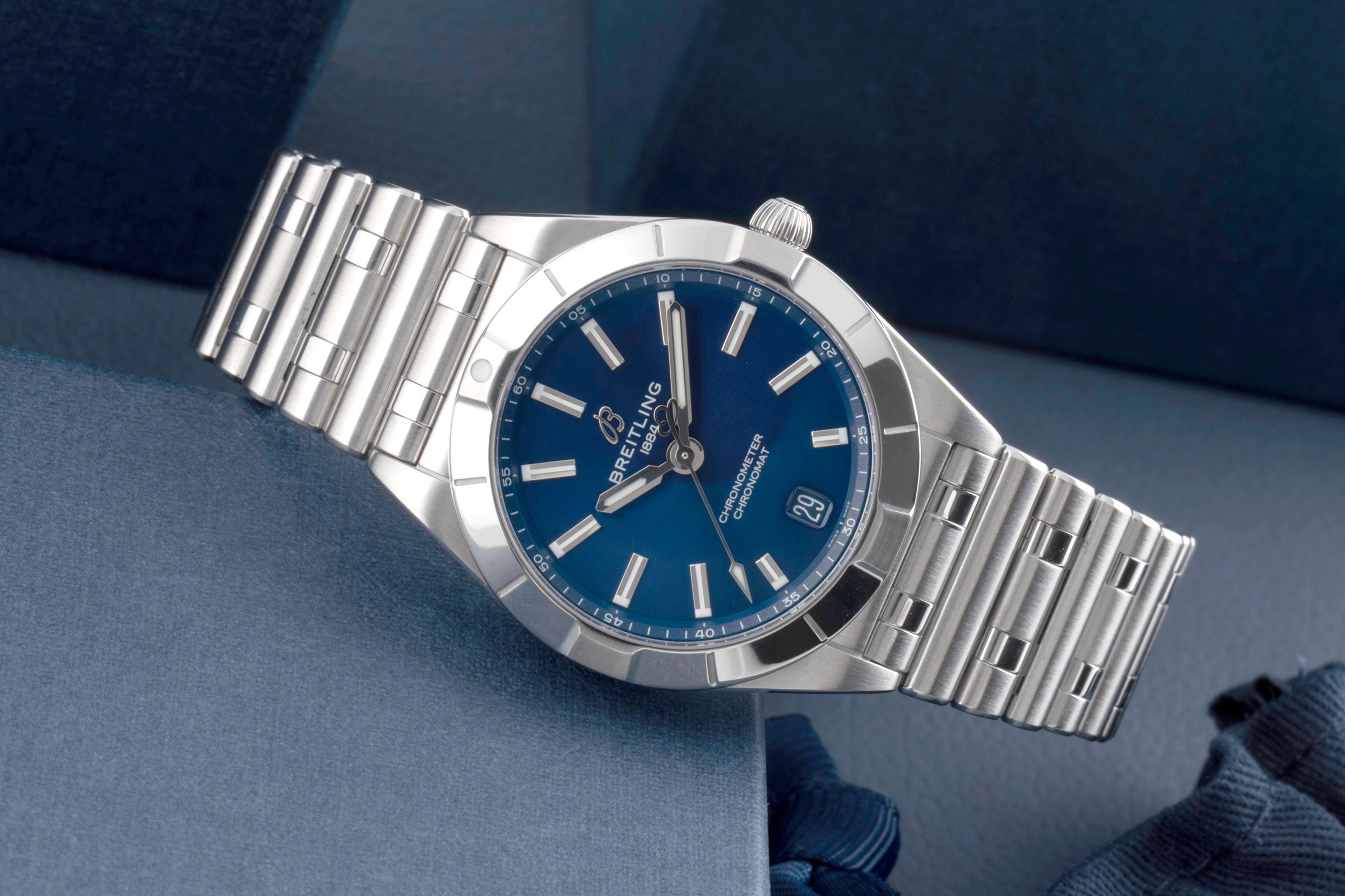 Zubehör: Original Breitling Box wie abgebildet, Original Papiere wie abgebildet, Booklets wie abgebildet