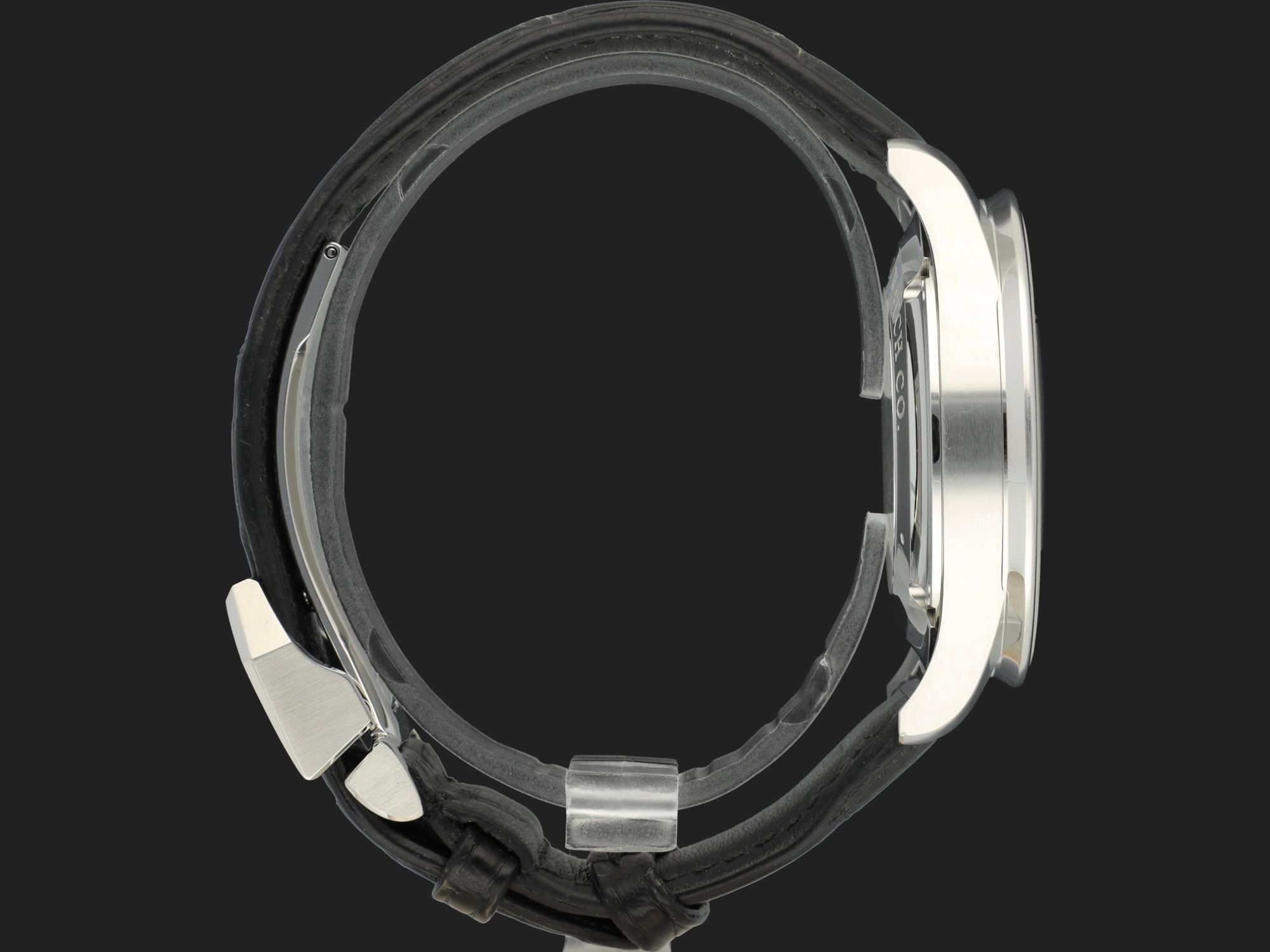 Die Zifferblattfarbe ist silber mit goldenen Zahlen.