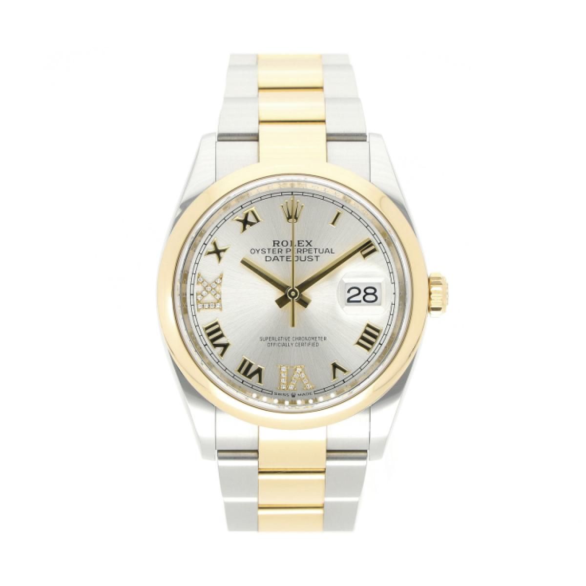 Rolex Datejust 36 Oyster Perpetual 36 Ref. 126203 Silver Roman Dial Factory Diamonds Stahl/Gold 2023 Full Set LC100