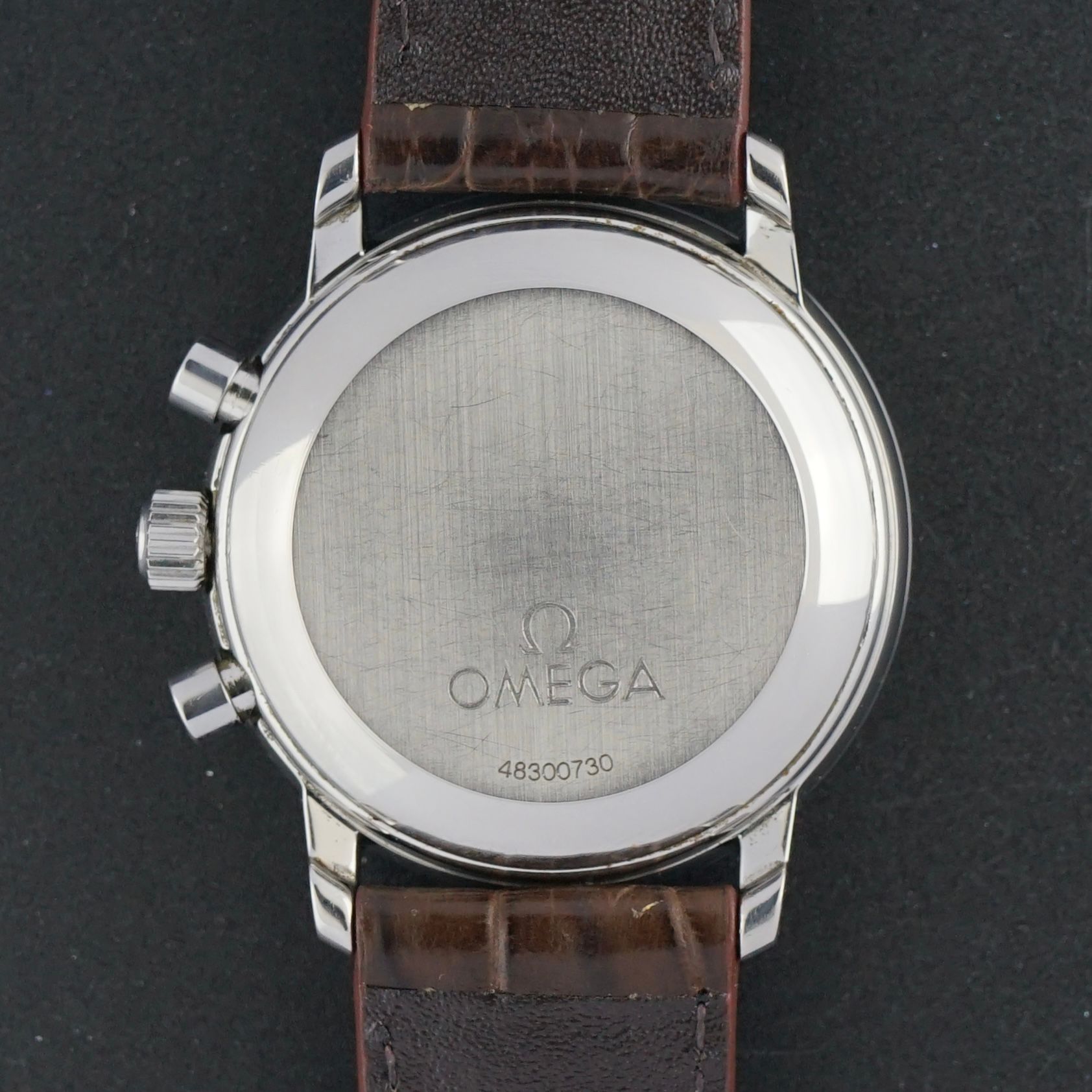 This vintage Omega De Ville Prestige chronograph was produced in 1984. It features a textured white dial with steel accents and small sub-dials for seconds, minutes, and hours. The stainless steel case measures 36mm in width, excluding the crown. Inside is a caliber 861 manual wind movement, serviced in January 2026, running and functioning excellently. The watch is paired with a top-grain leather strap with a crocodile motif. Despite being over 40 years old, it is in excellent condition and entirely original, except for the new strap. An excellent dress watch.Year of production: 1984
