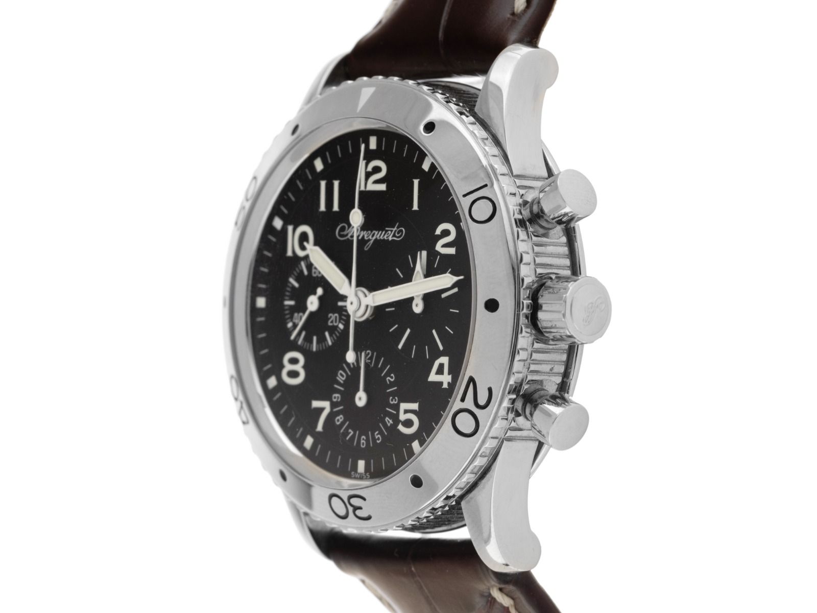 Breguet Type XX Aeronavale Flyback Stahl Automatik Chronograph Armband Krokoeder Faltschließe