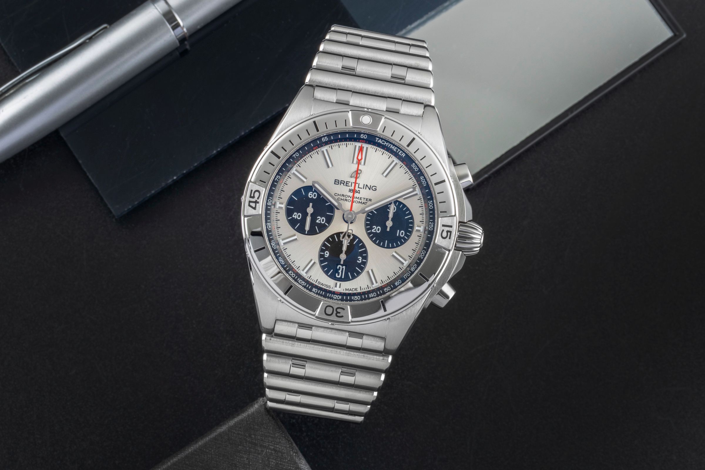 Alternative title: Breitling AB0134101G1A1 Chronomat B01 42 Stainless Steel / Silver / Rouleaux; Breitling Chronomat 42 B01 Chronograph Stahl Automatik AB0134101G1A1 NP: 9400,-€ [2506992]