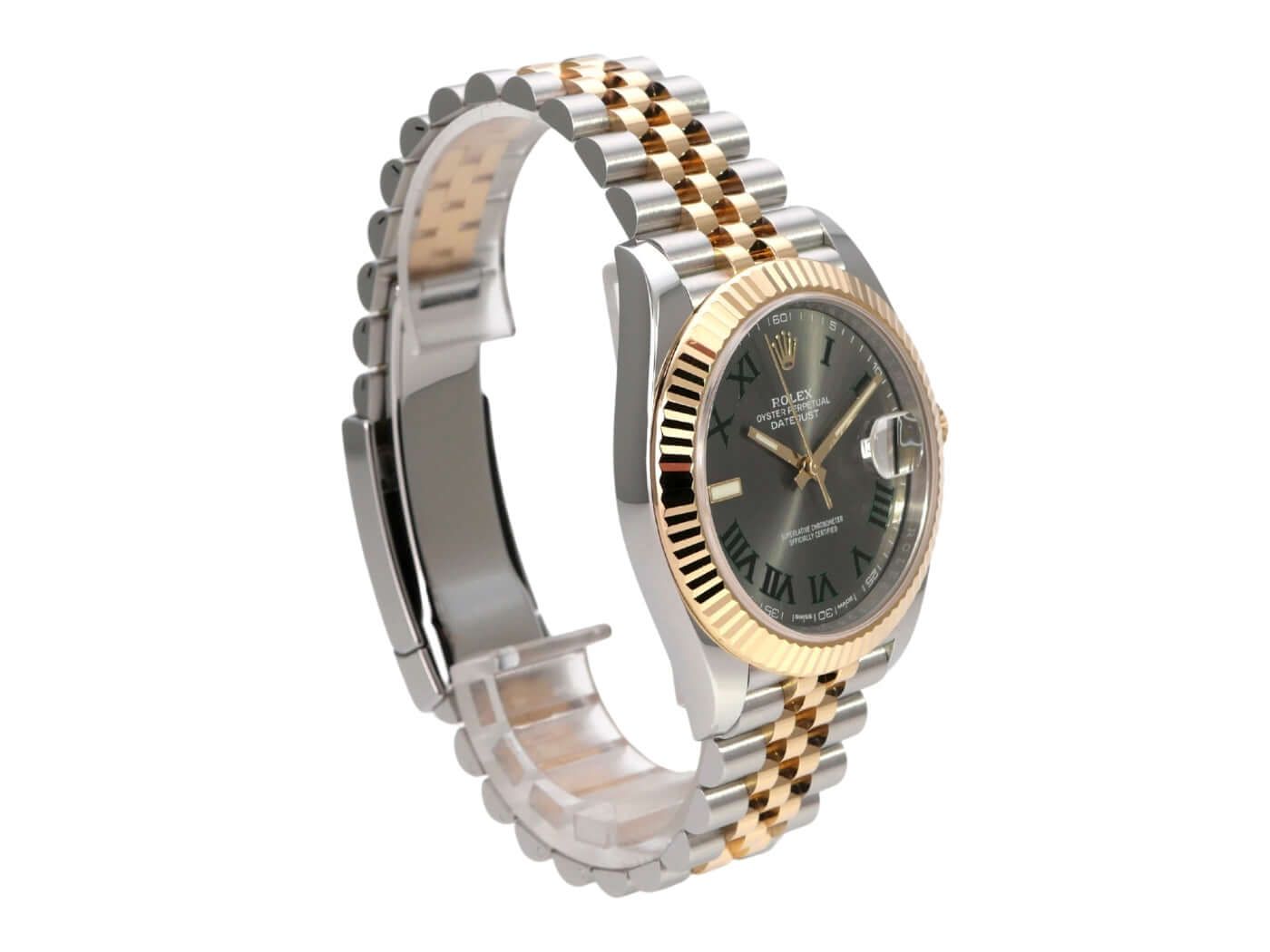 Rolex Datejust 41 Stainless Steel Yellow Gold Ref. 126333 Slate Jubilee Bracelet from 2017Case made of polished and satin-finished stainless steel / yellow gold, case diameter 41 mm, fluted 18 kt yellow gold bezel, Jubilee bracelet made of polished and satin-finished stainless steel / 18 kt yellow gold with folding clasp, slate-gray dial with Roman numerals, self-winding movement, Rolex manufacture caliber 3235, chronometer, 70 hours power reserve, date display, scratch-resistant sapphire crystal, screw-down 18 kt yellow gold crown, screwed stainless steel back, water-resistant up to 10 bar.
