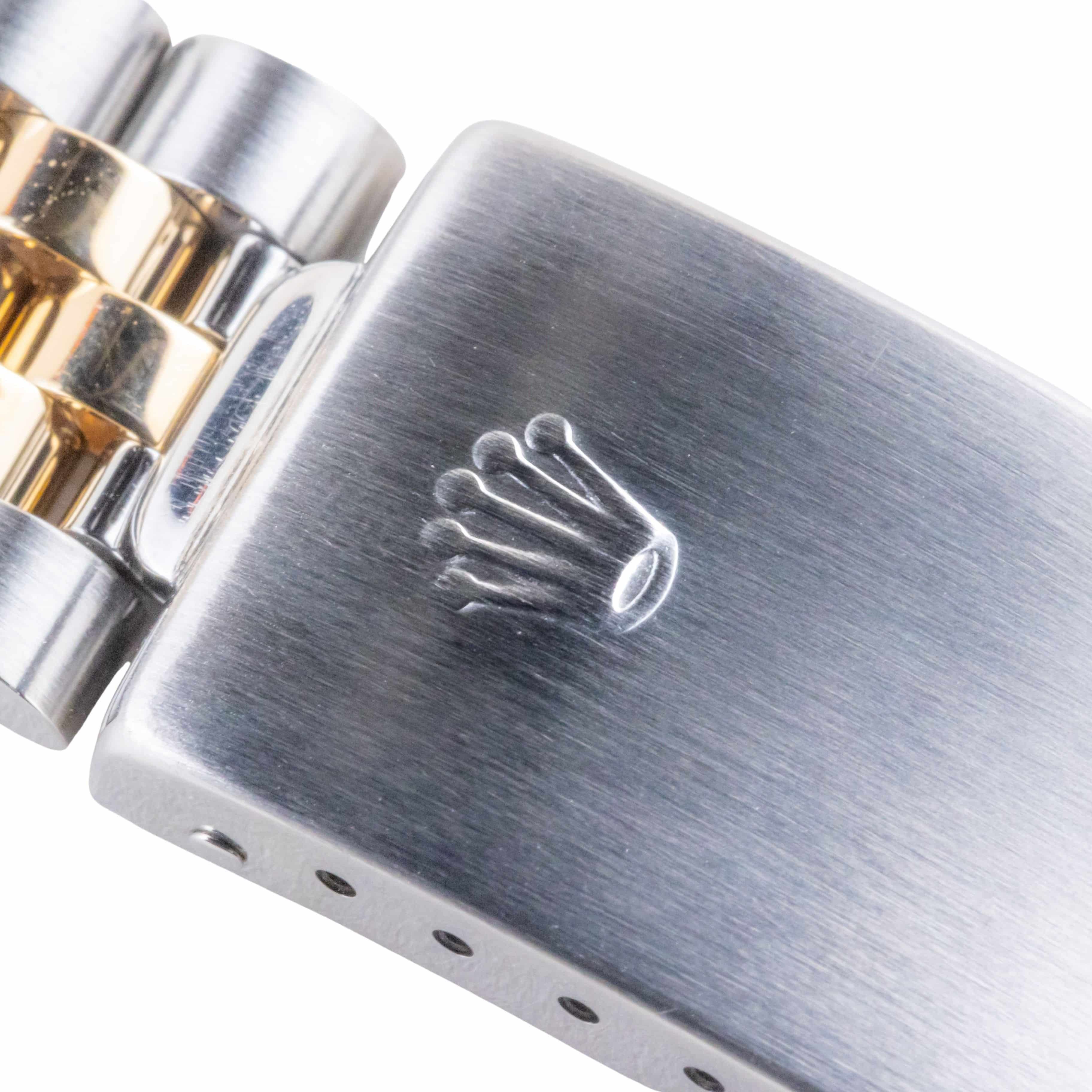 Rolex Oyster Perpetual Datejust Referenz 16233 aus 1991, inklusive vollständigem Set. Die Datejust 16233 hat ein 36mm Gehäuse aus Gold und Edelstahl, ein zweifarbiges Jubilee-Armband und eine geriffelte Lünette aus 18 Karat Gold. Diese Datejust 16233 verfügt über ein automatisches Uhrwerk Kaliber 3135 mit einer Schnellverstellung für das Datum, ein kratzfestes Saphirglas und eine champagnerfarbene Zifferblatt.