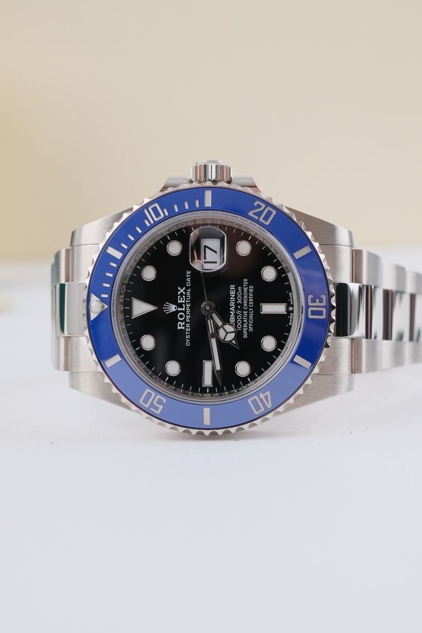 Bereit für deine neue Traumuhr? Vielleicht wird diese wunderschöne Rolex Submariner Date aus Weißgold bald an deinem Handgelenk sein. Ob vintage oder modern - mit über 200 Uhren auf Lager haben wir immer deine neue Luxusuhr sofort für dich verfügbar - egal, ob du ein Erstkäufer bist oder deine Uhrenkollektion eine neue Ergänzung braucht.