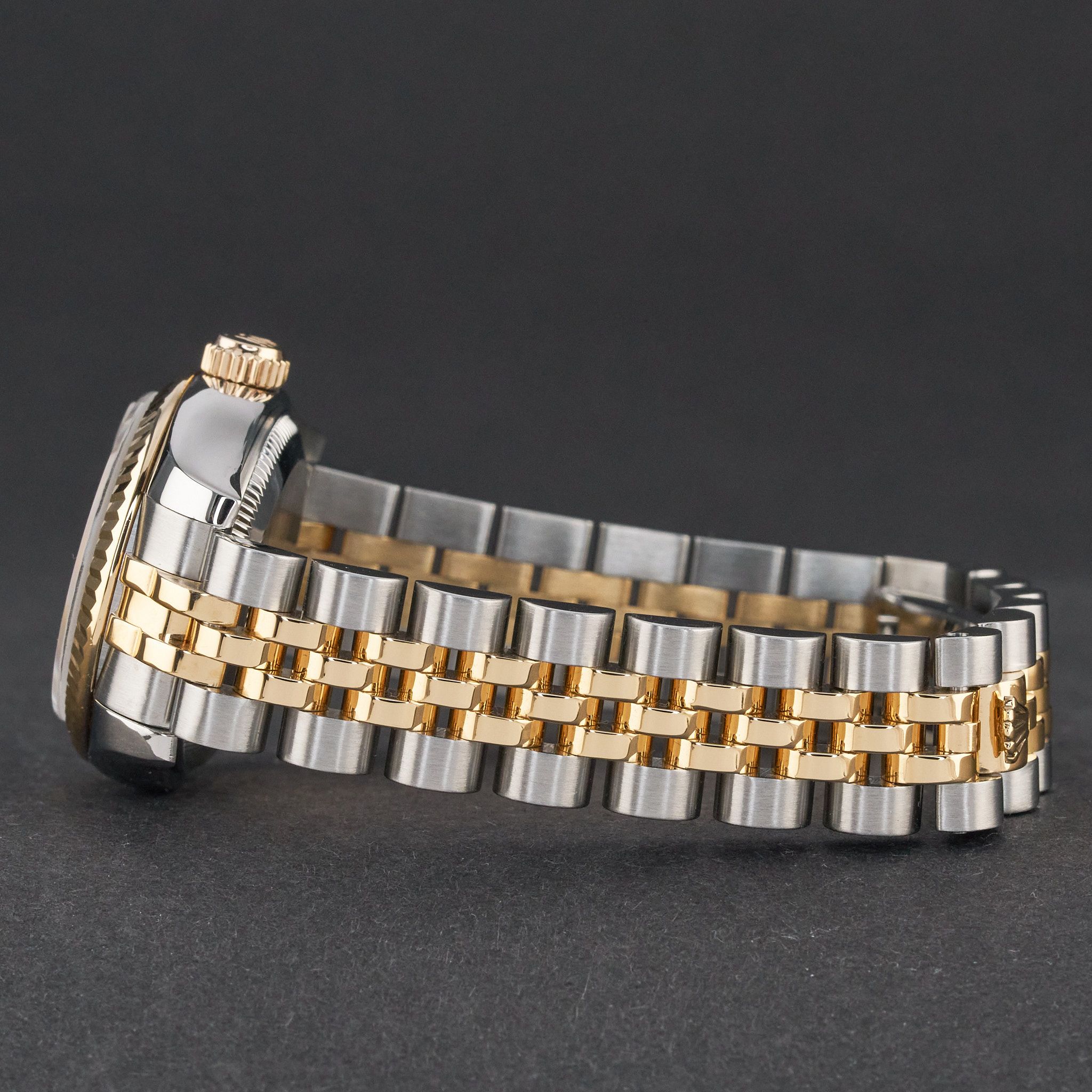 Diese Rolex Lady-Datejust 179173 verfügt über eine Champagnerfarbe bei der Uhr und ist aus 18K Gelbgold und Edelstahl gefertigt, mit einem Produktionsjahr von 2005.